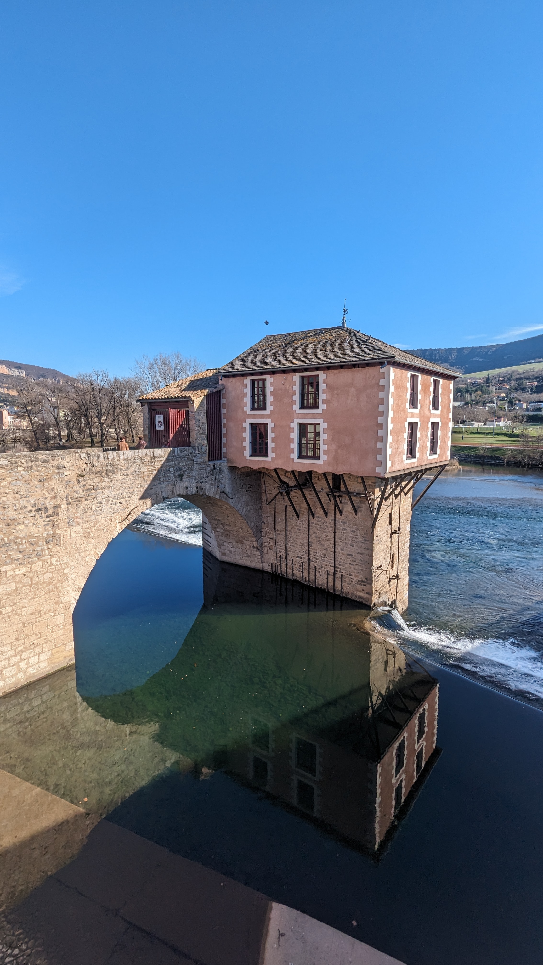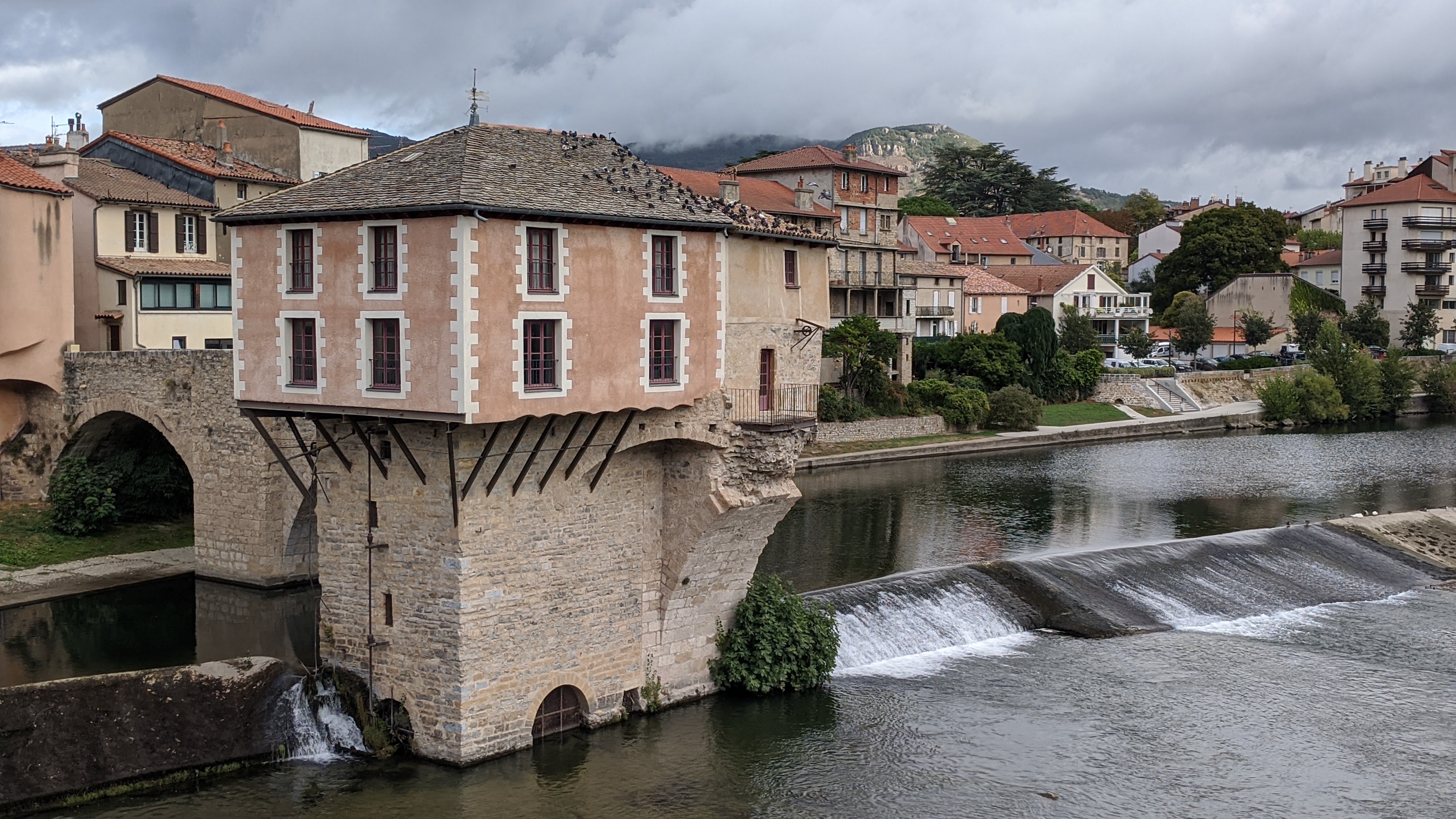 Millau, l'ancien moulin à eau. La ville est également très belle. Nous passons régulièrement par ici. Du bas de la ville, vous avez une bonne vue sur le pont. Jolie à voir.