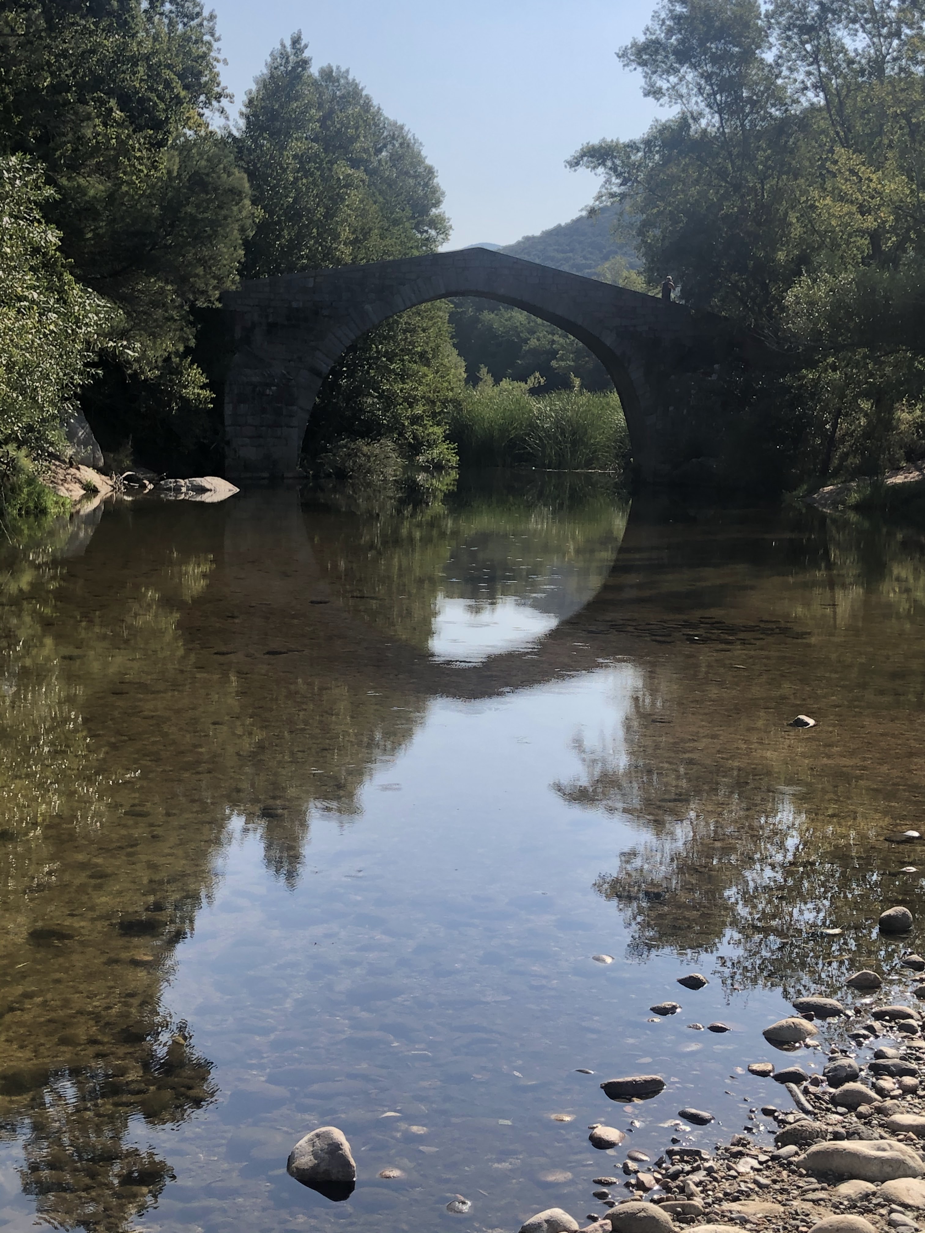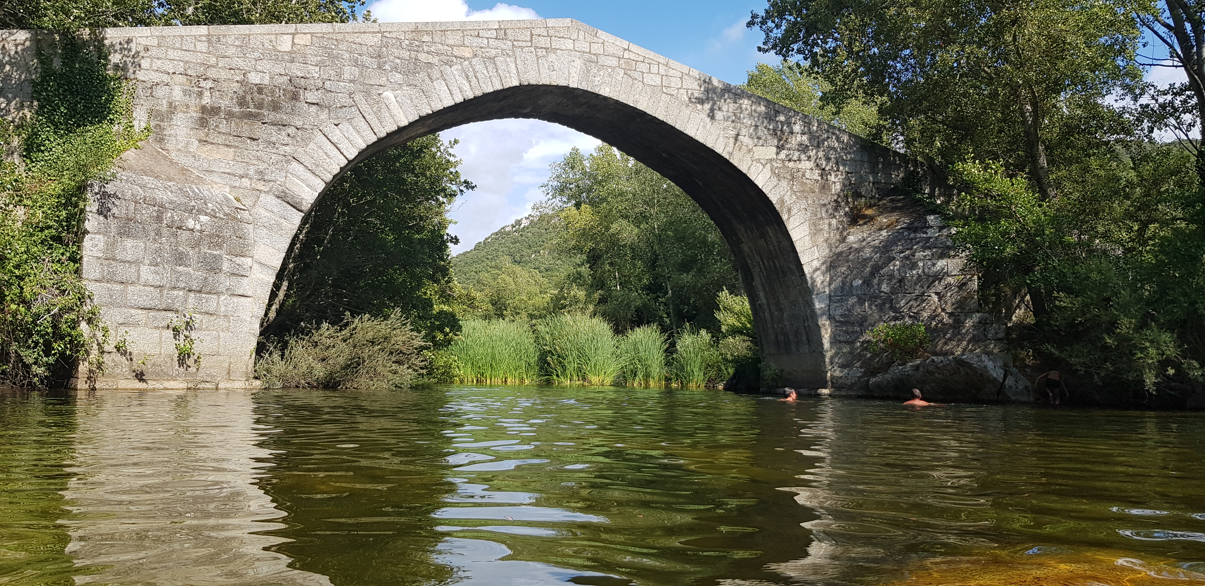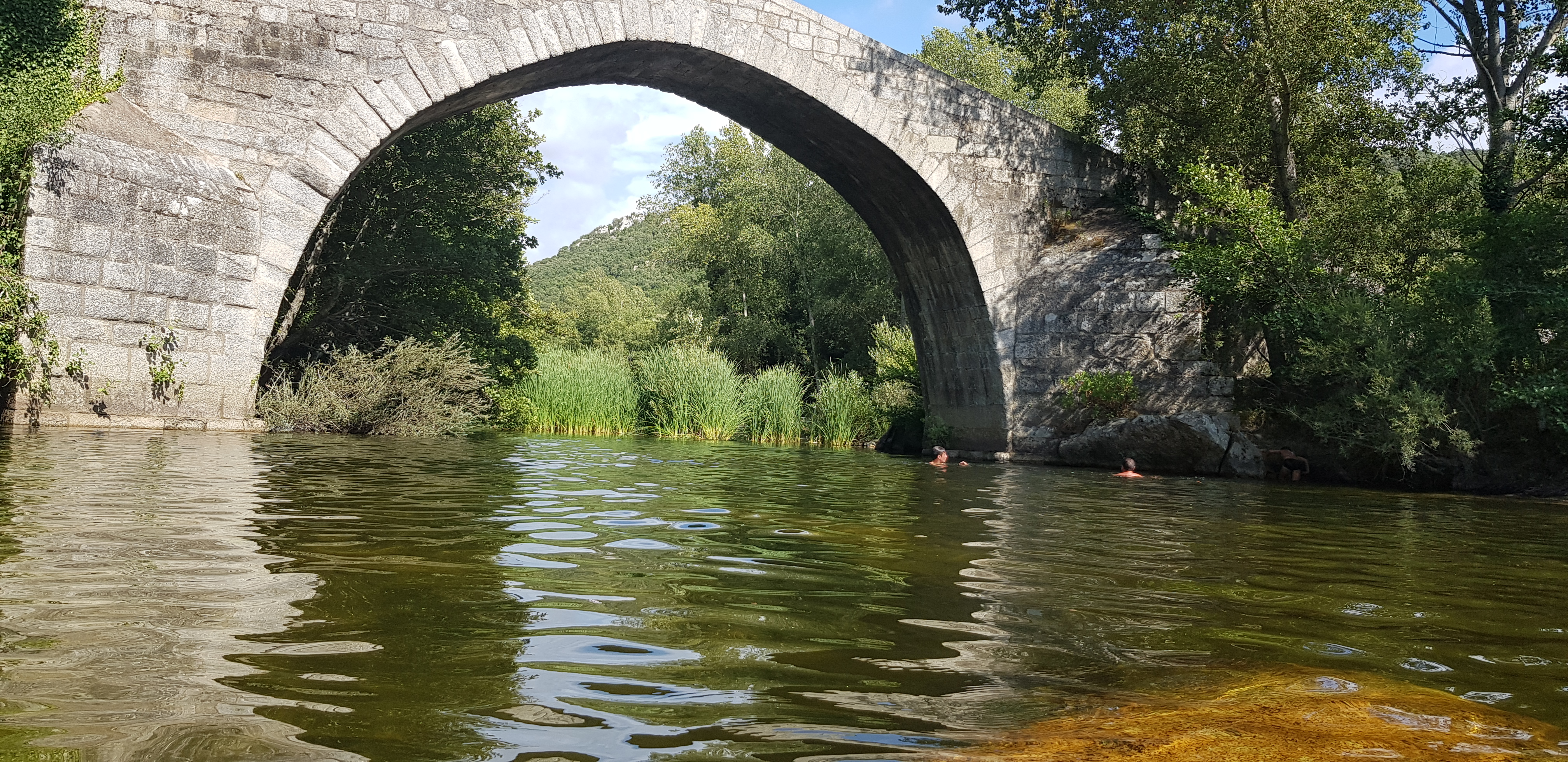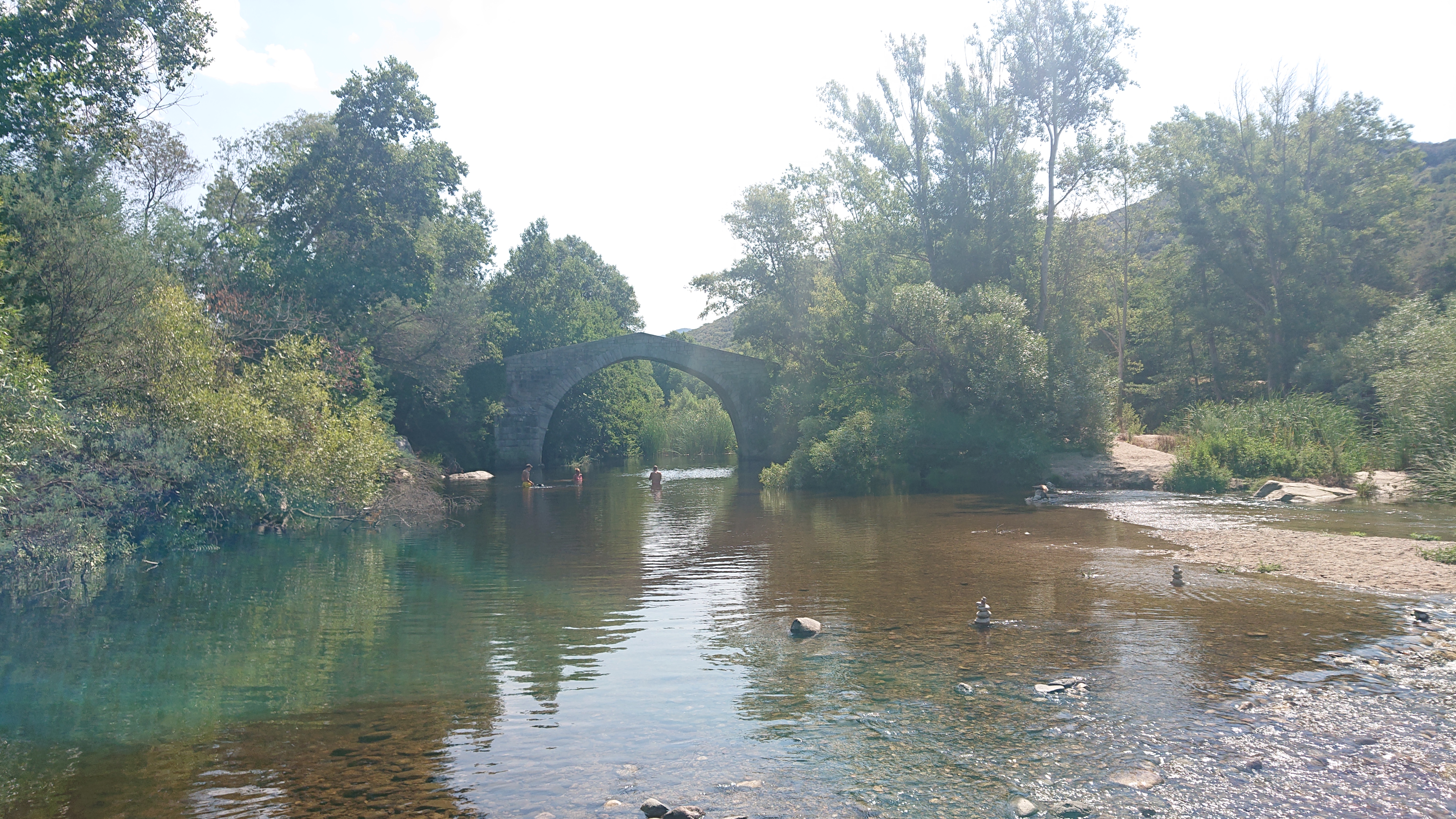 Magnifique pont...génois? En août le cours d'eau est très bas, et l'eau glauque, donc la baignade est pour ceux qui aiment nager en eau trouble ;-)