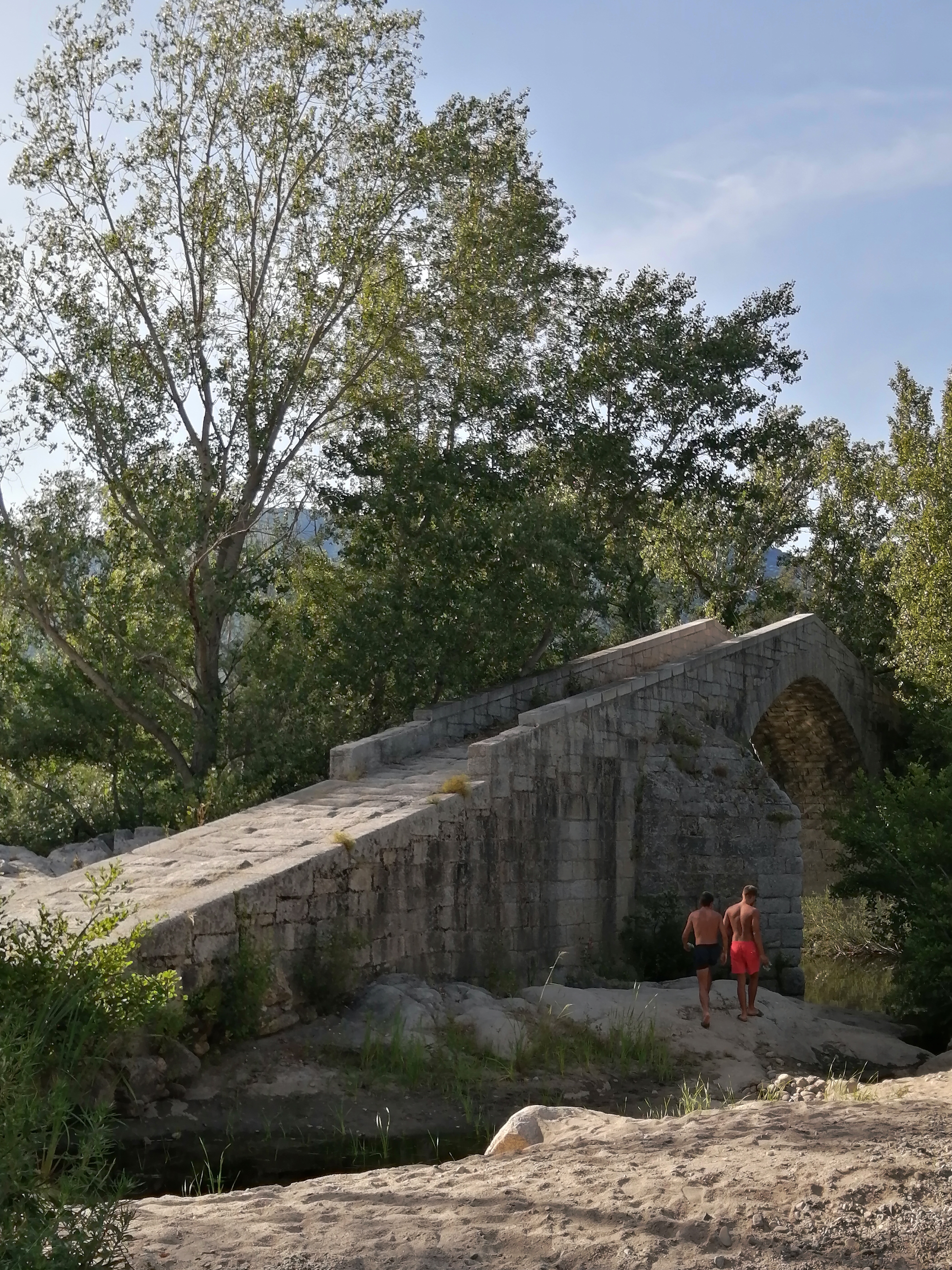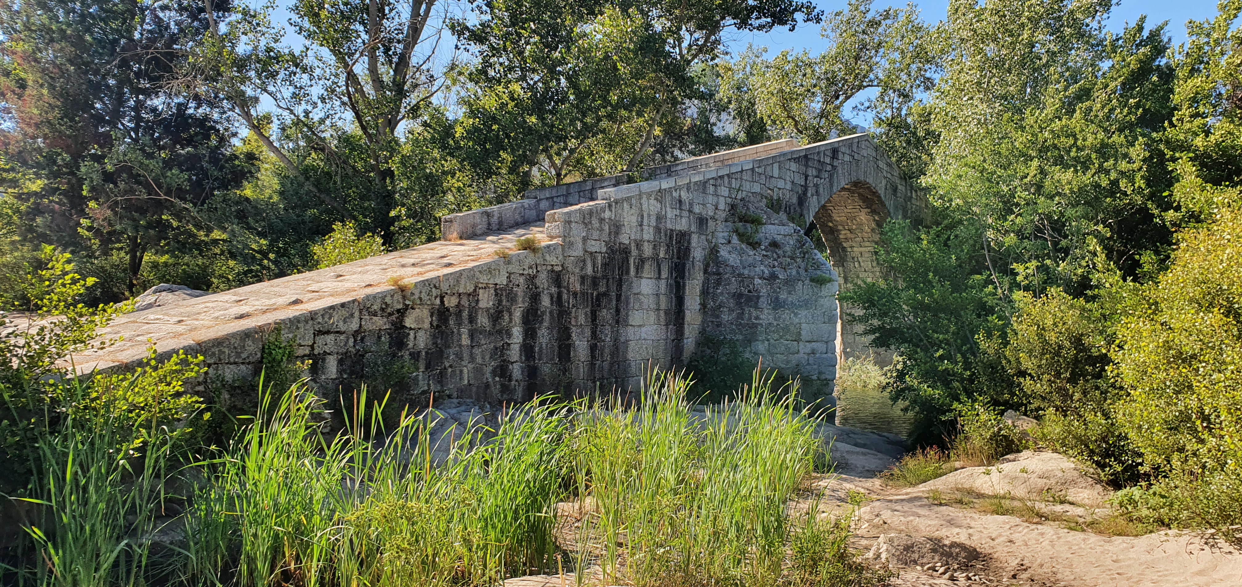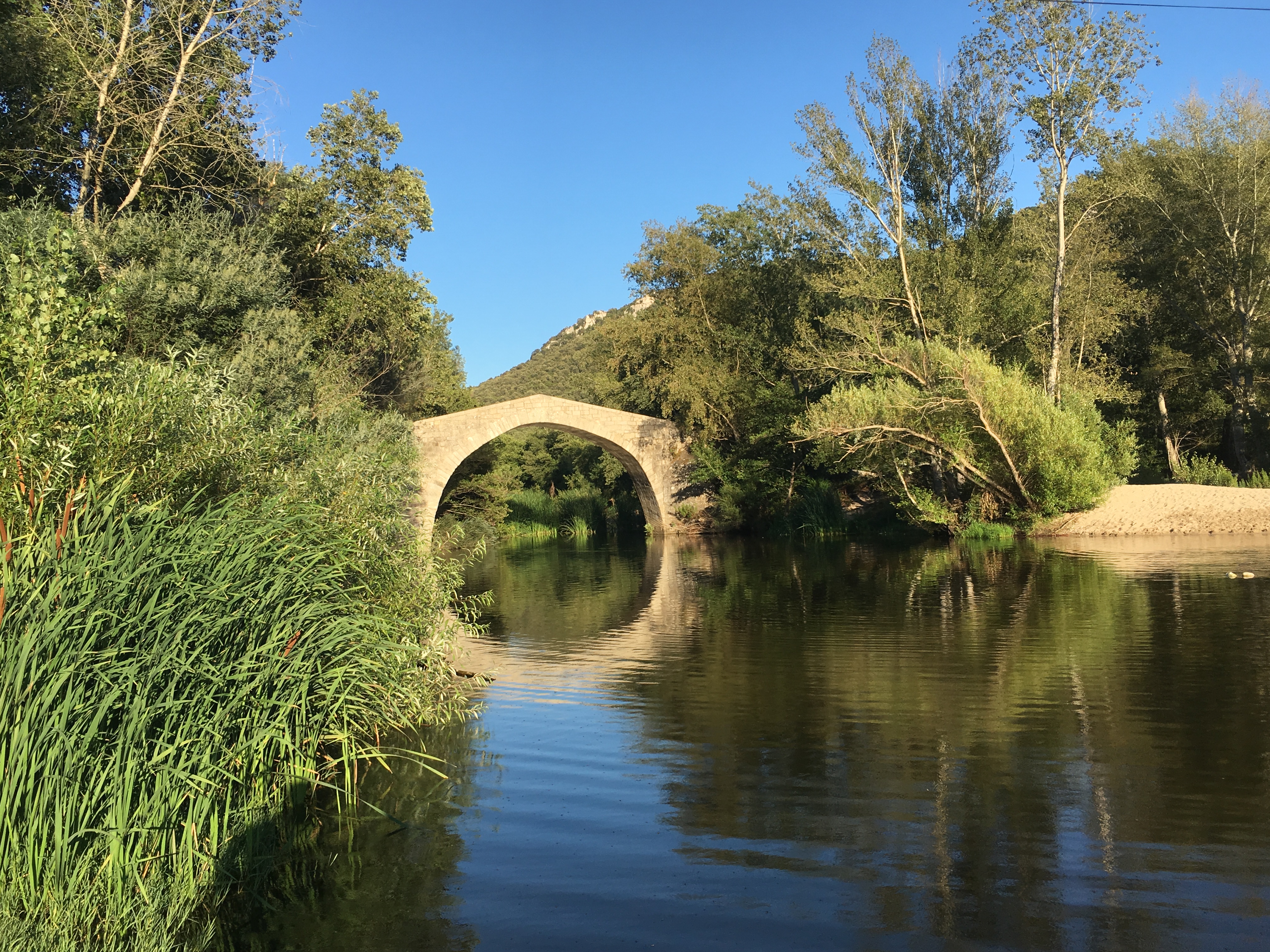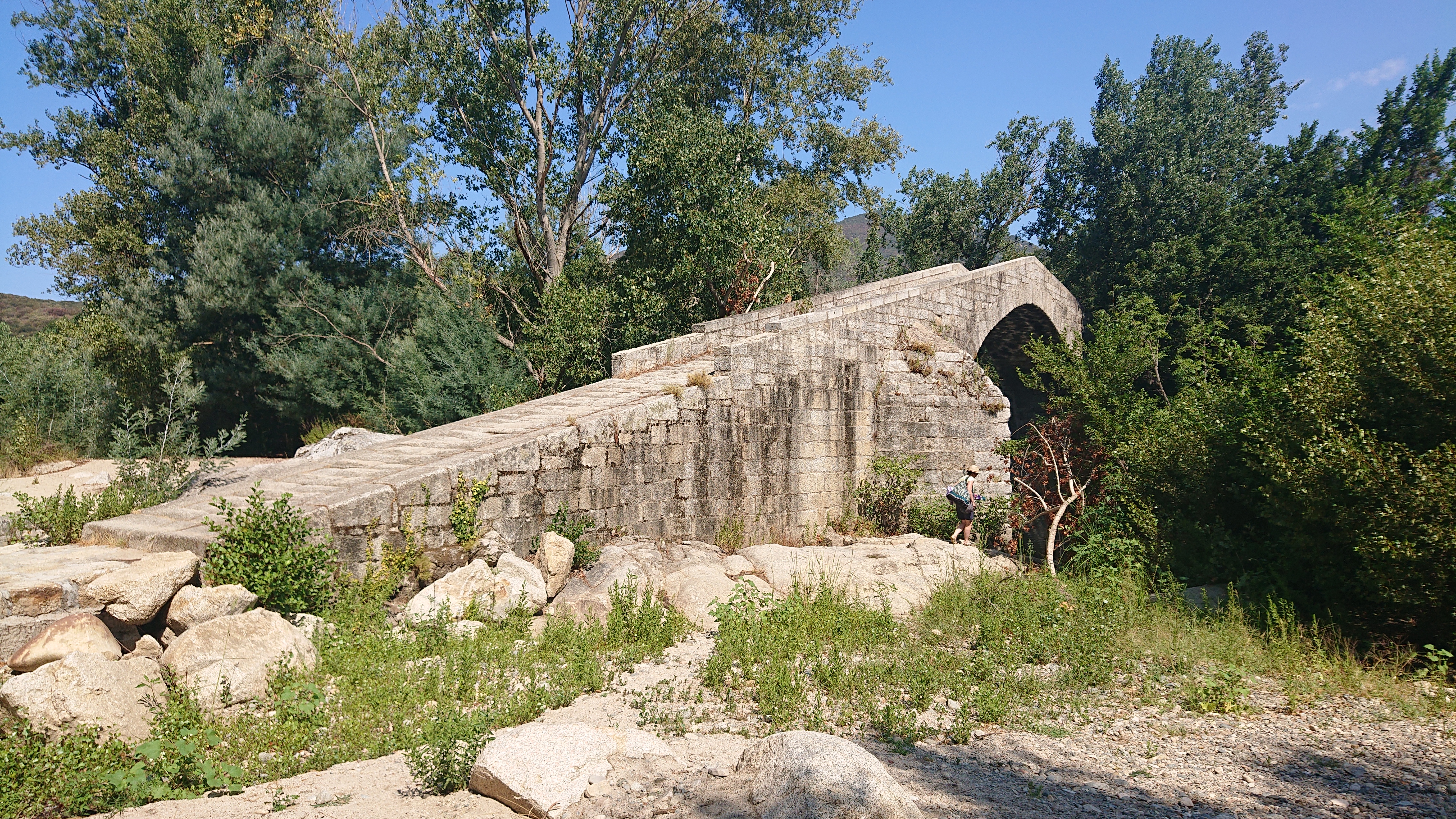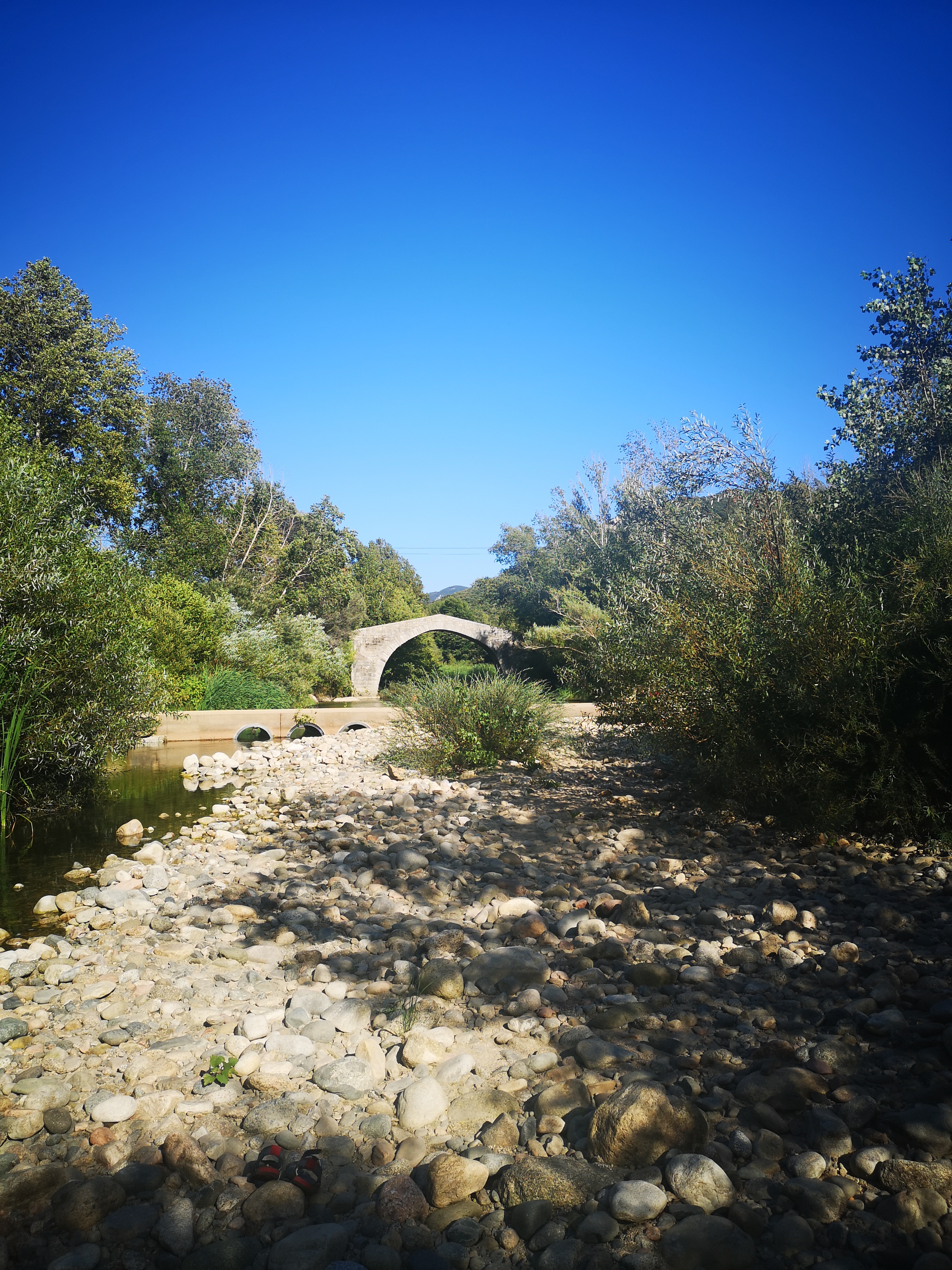 Magnifique pont...génois? En août le cours d'eau est très bas, et l'eau glauque, donc la baignade est pour ceux qui aiment nager en eau trouble ;-)