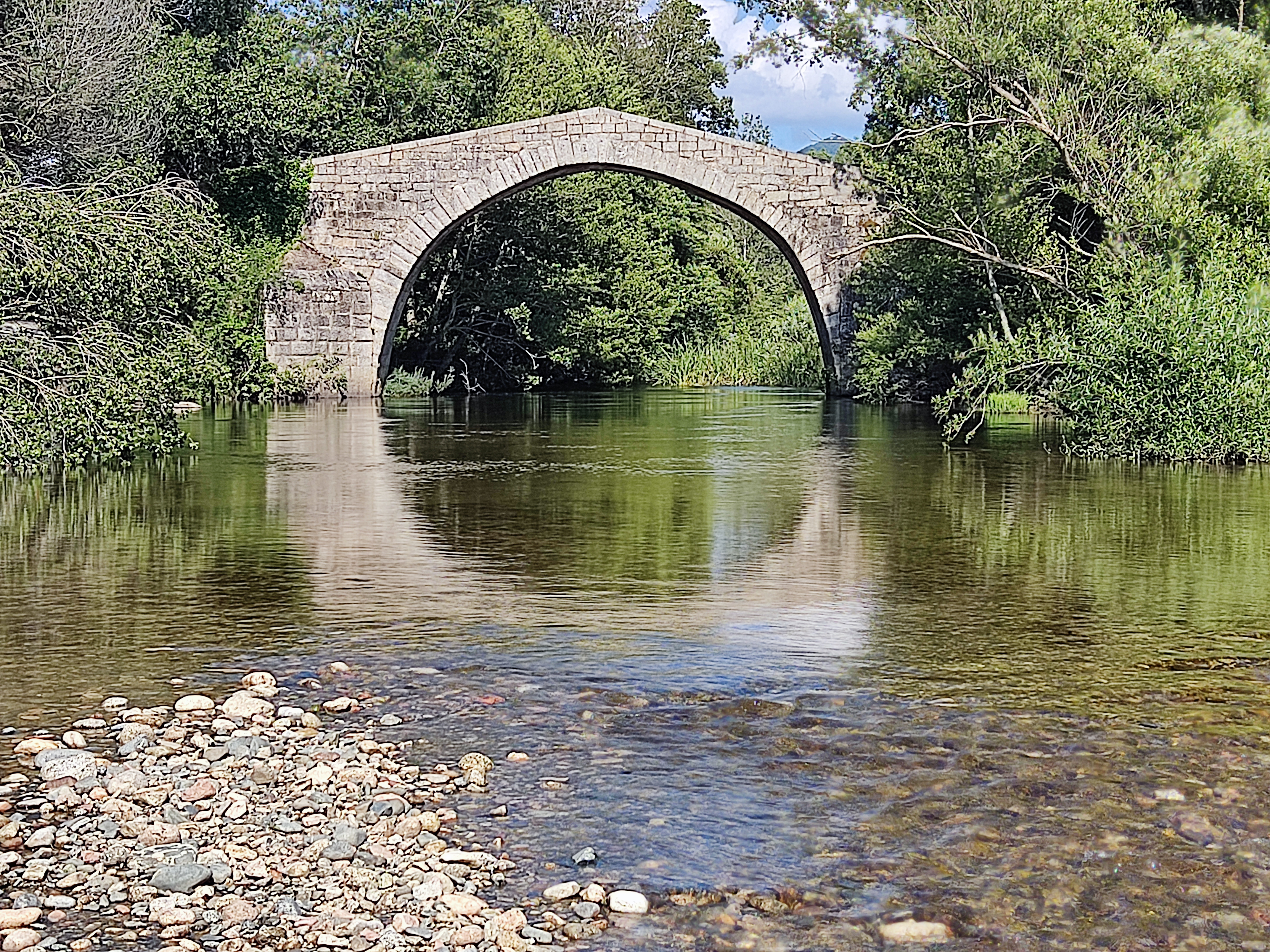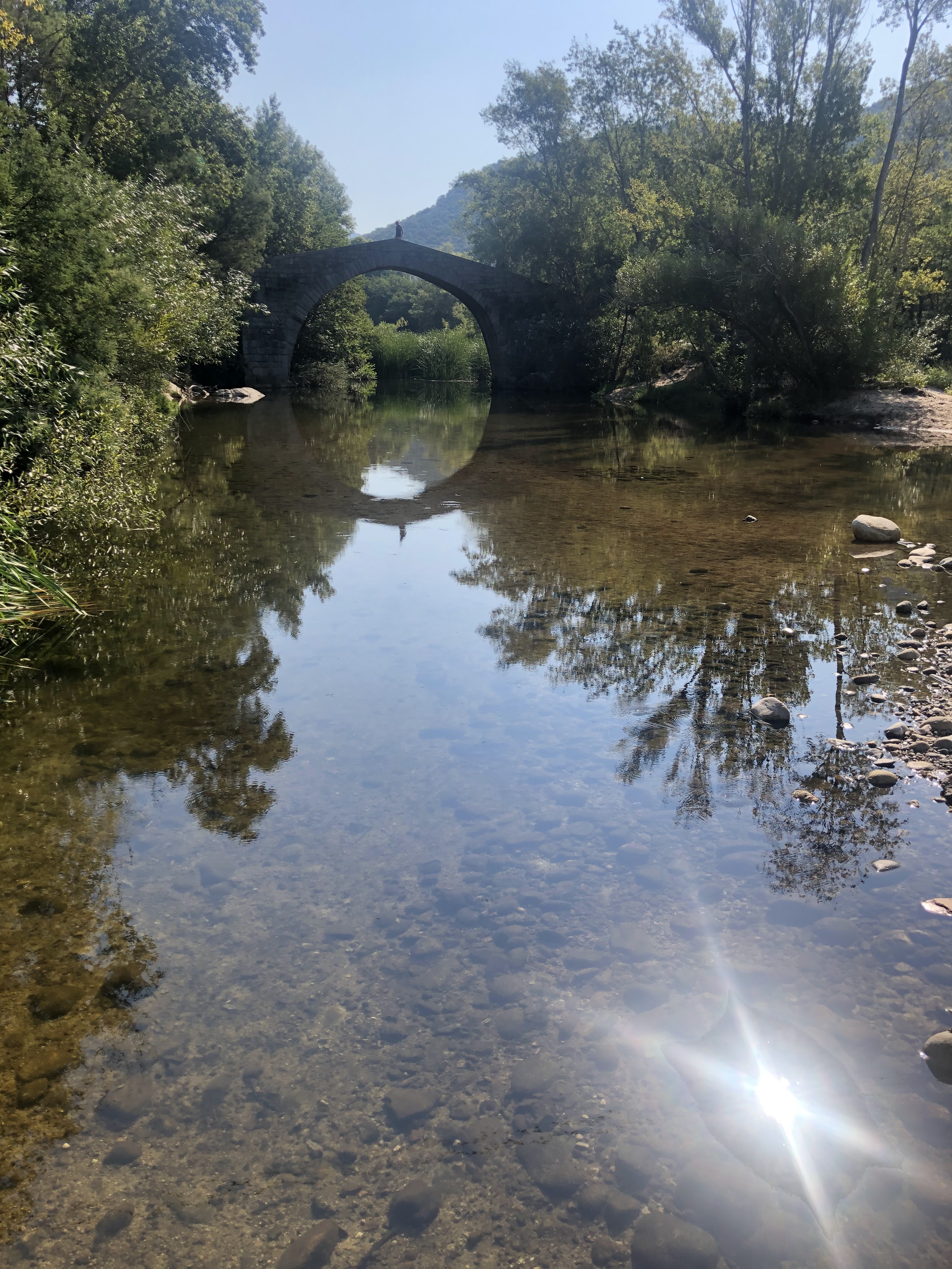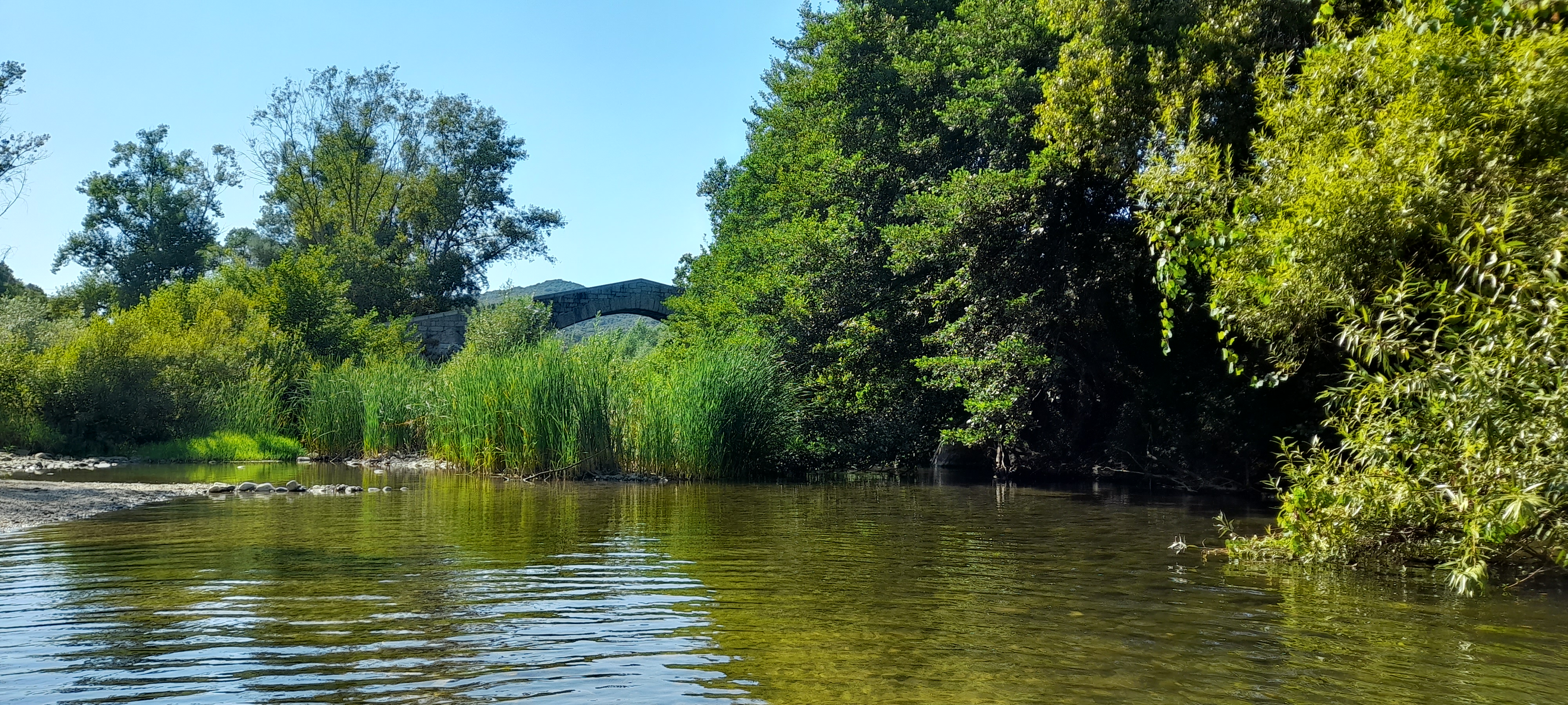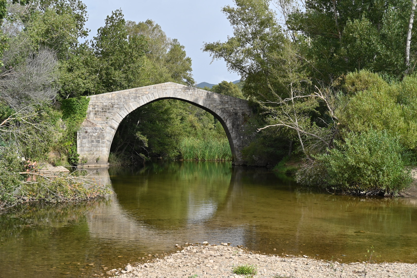 Magnifique pont...génois? En août le cours d'eau est très bas, et l'eau glauque, donc la baignade est pour ceux qui aiment nager en eau trouble ;-)