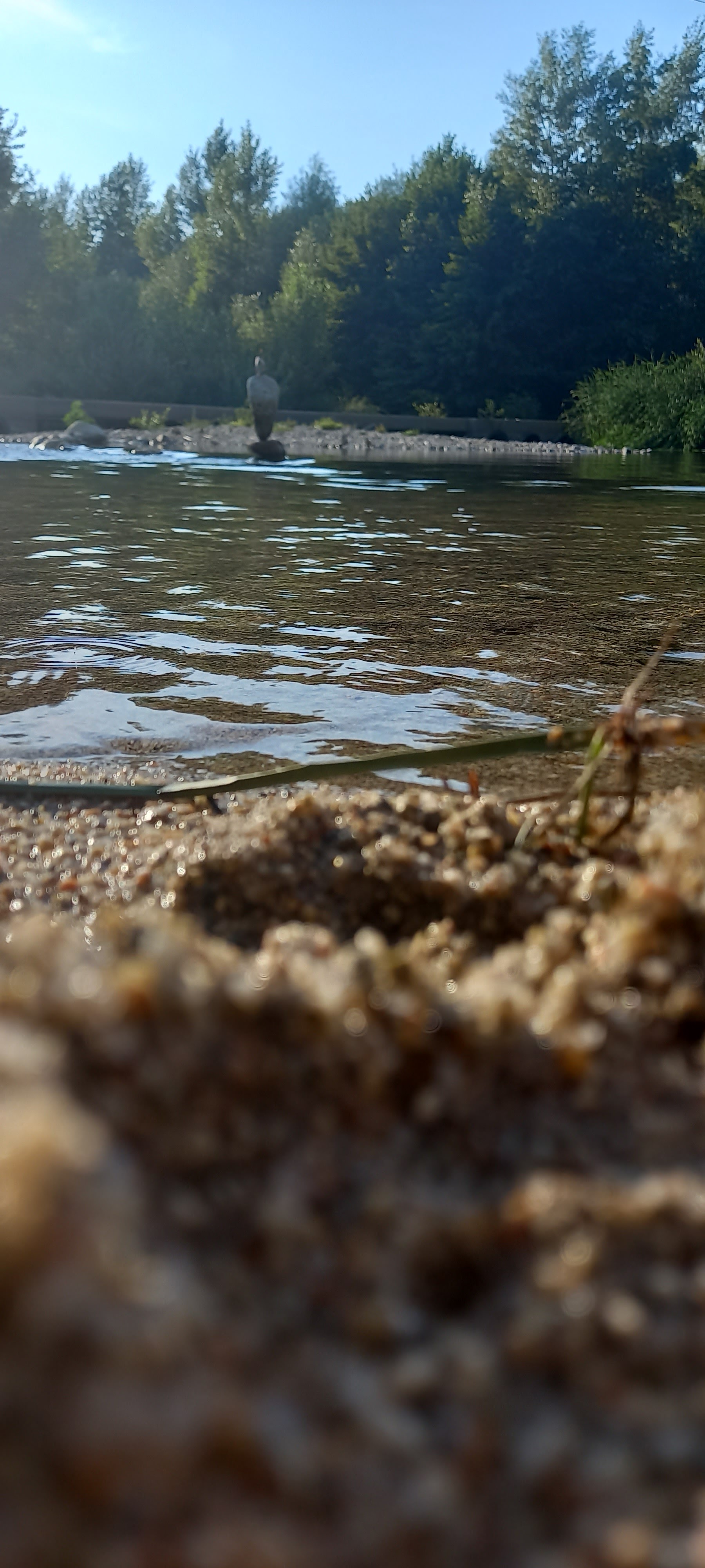 Petite plage ombragée au bord de la rivière près d'un superbe petit pont :))