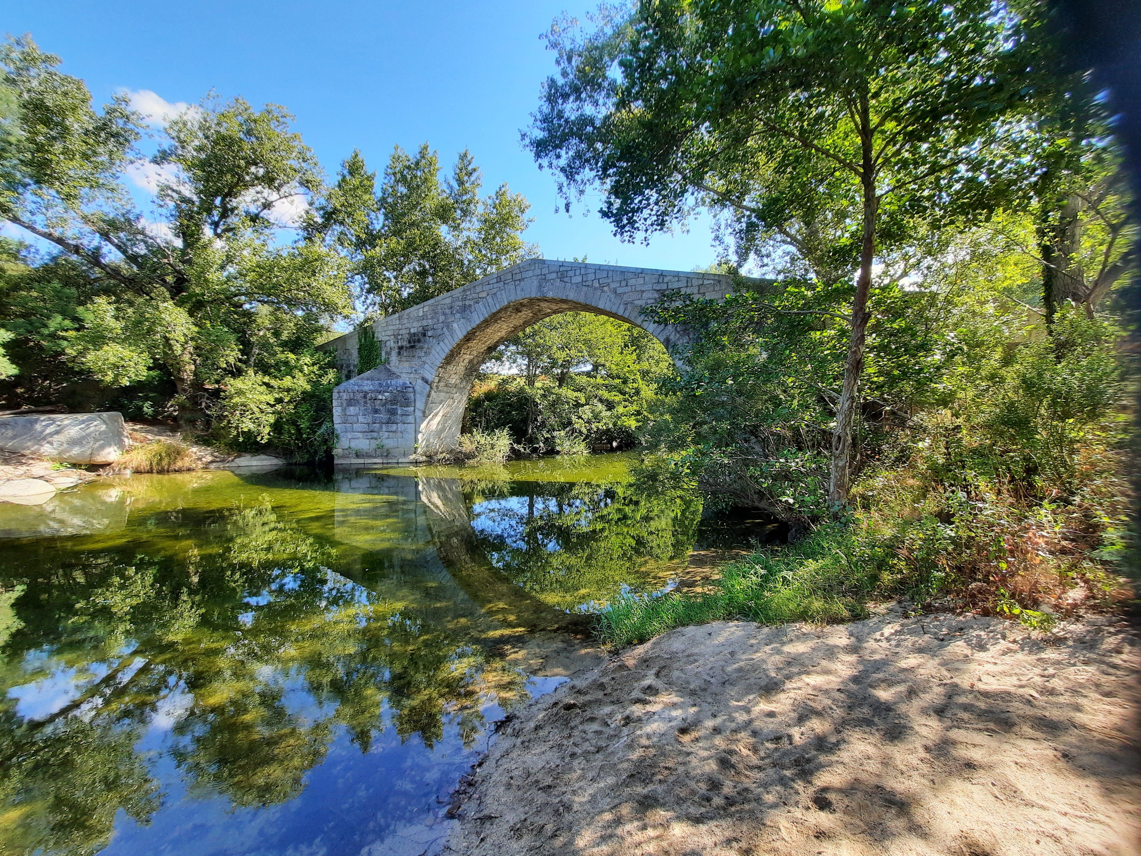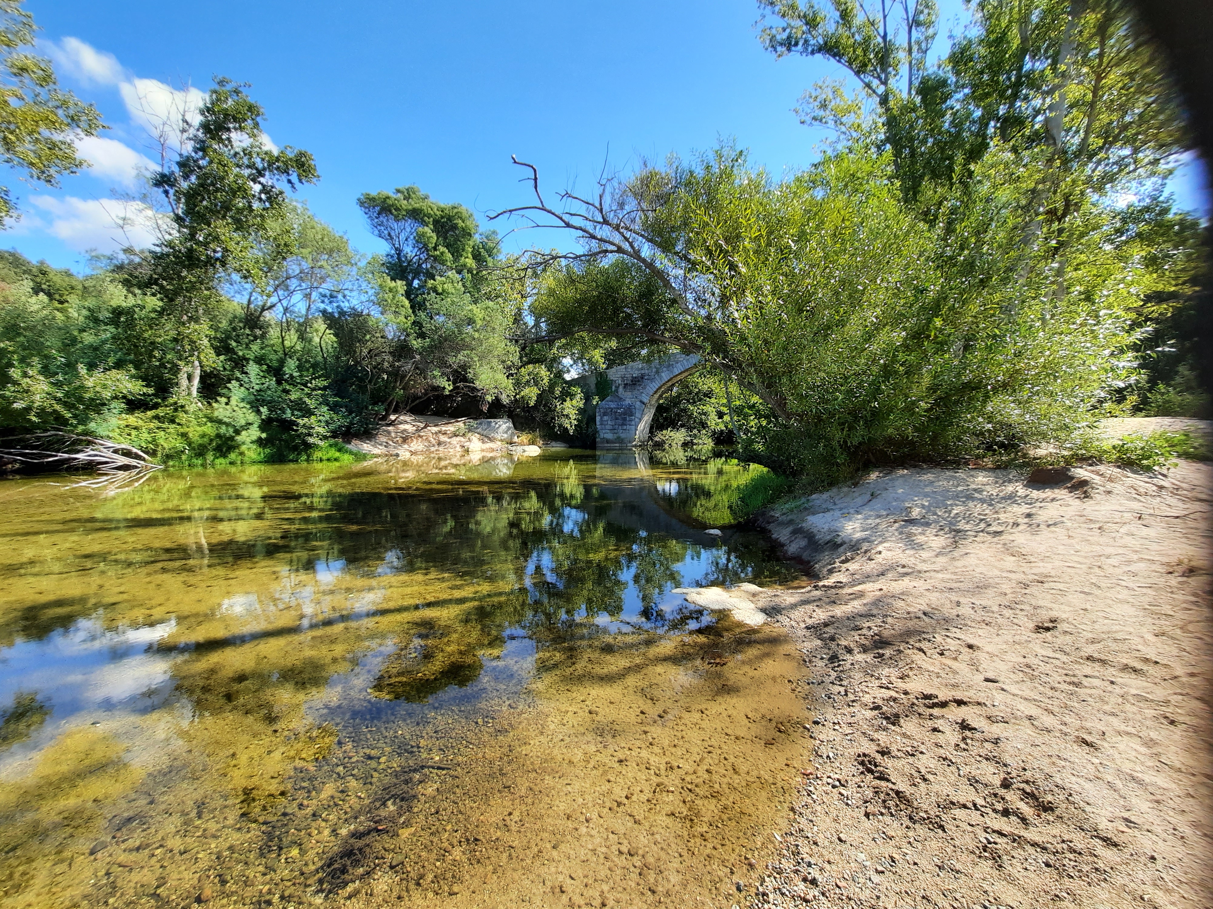 Une belle étendue d'eau pour se rafraîchir au pied de ce pont qui a traversé les siècles... Beaucoup de sable et donc idéal pour les enfants.
