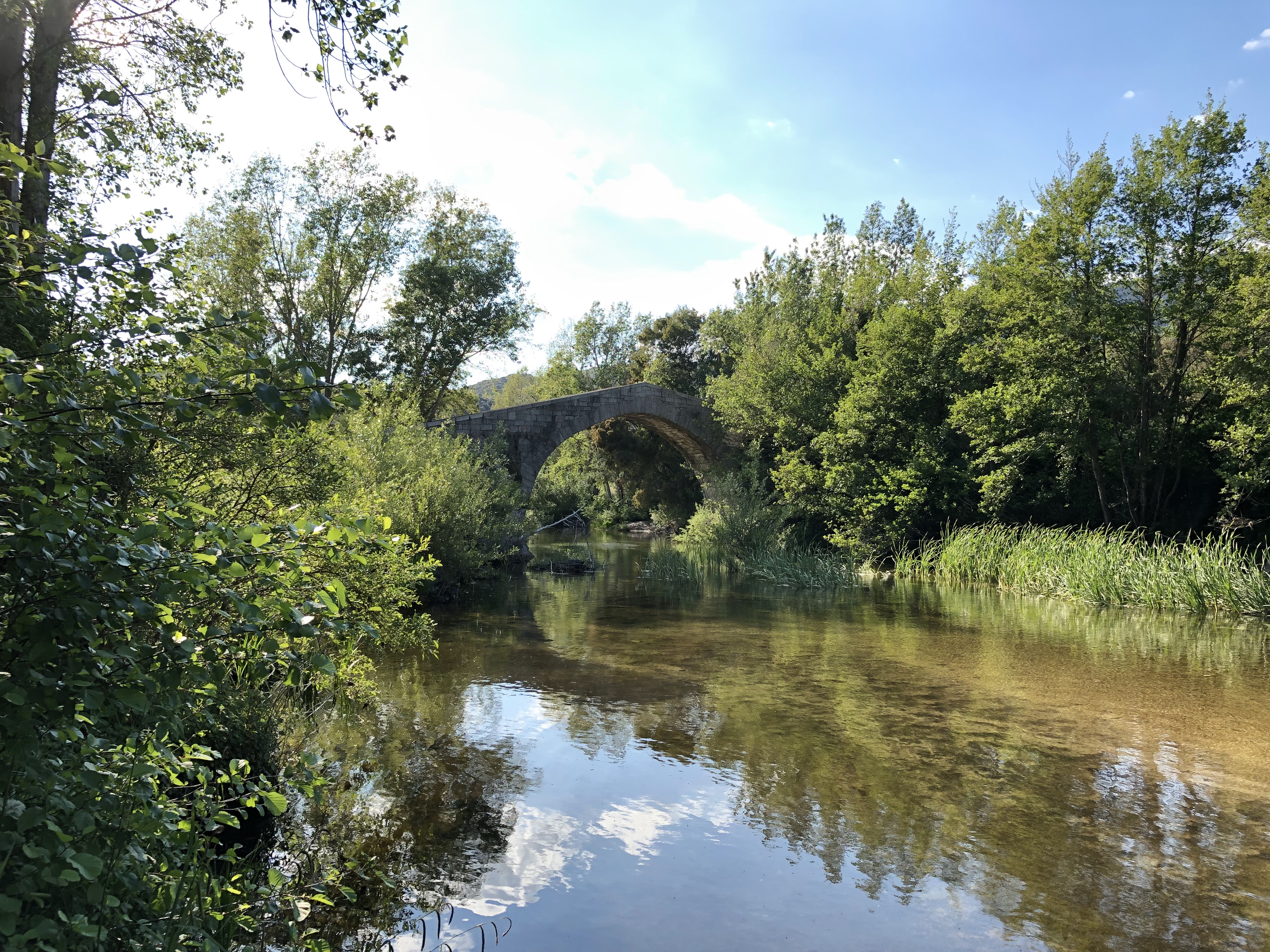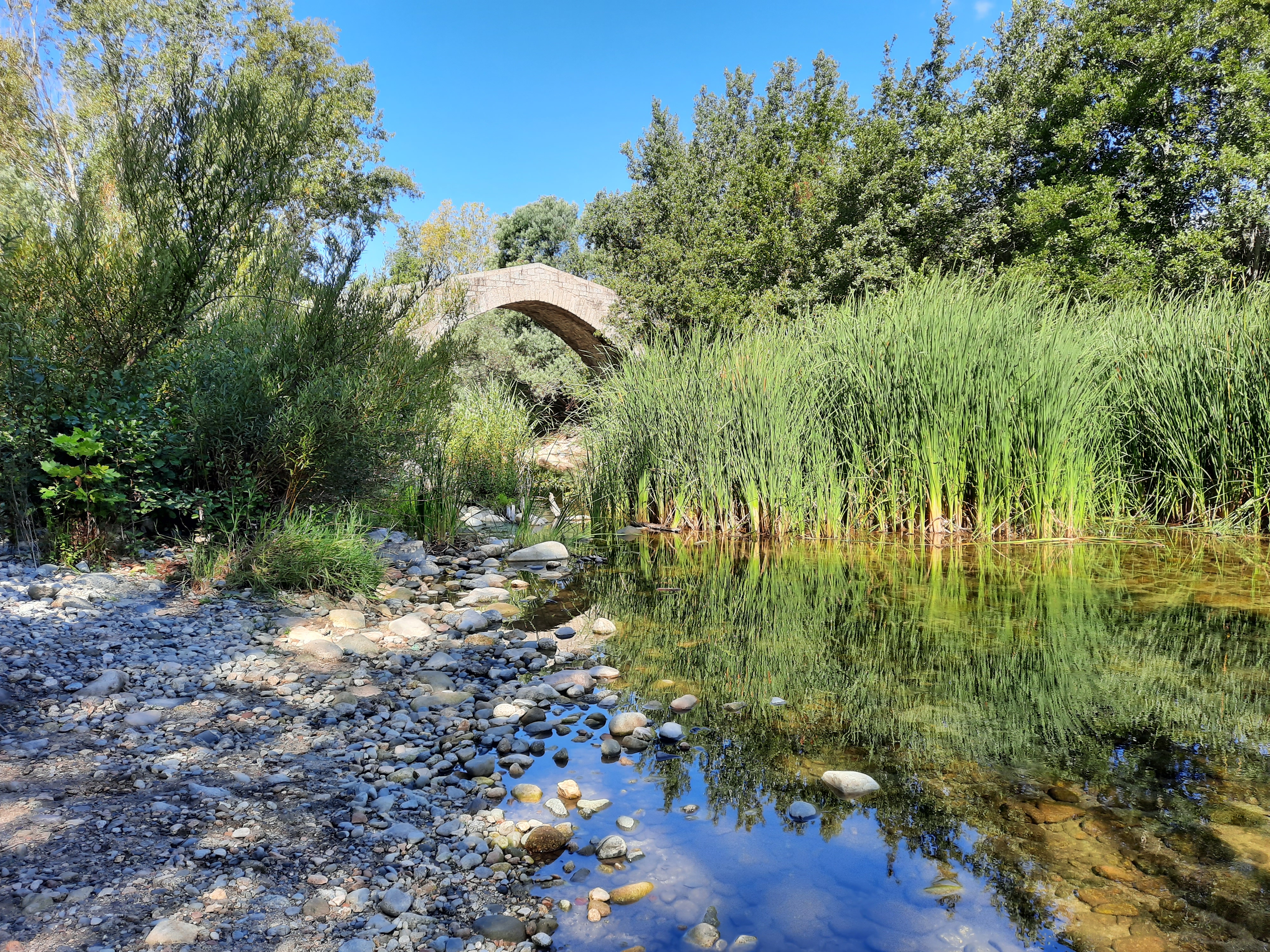 Très joli pont génois. Pour ne rien gâter, faune d'insectes surprenante dont libellules rouges. Cela mérite un arrêt