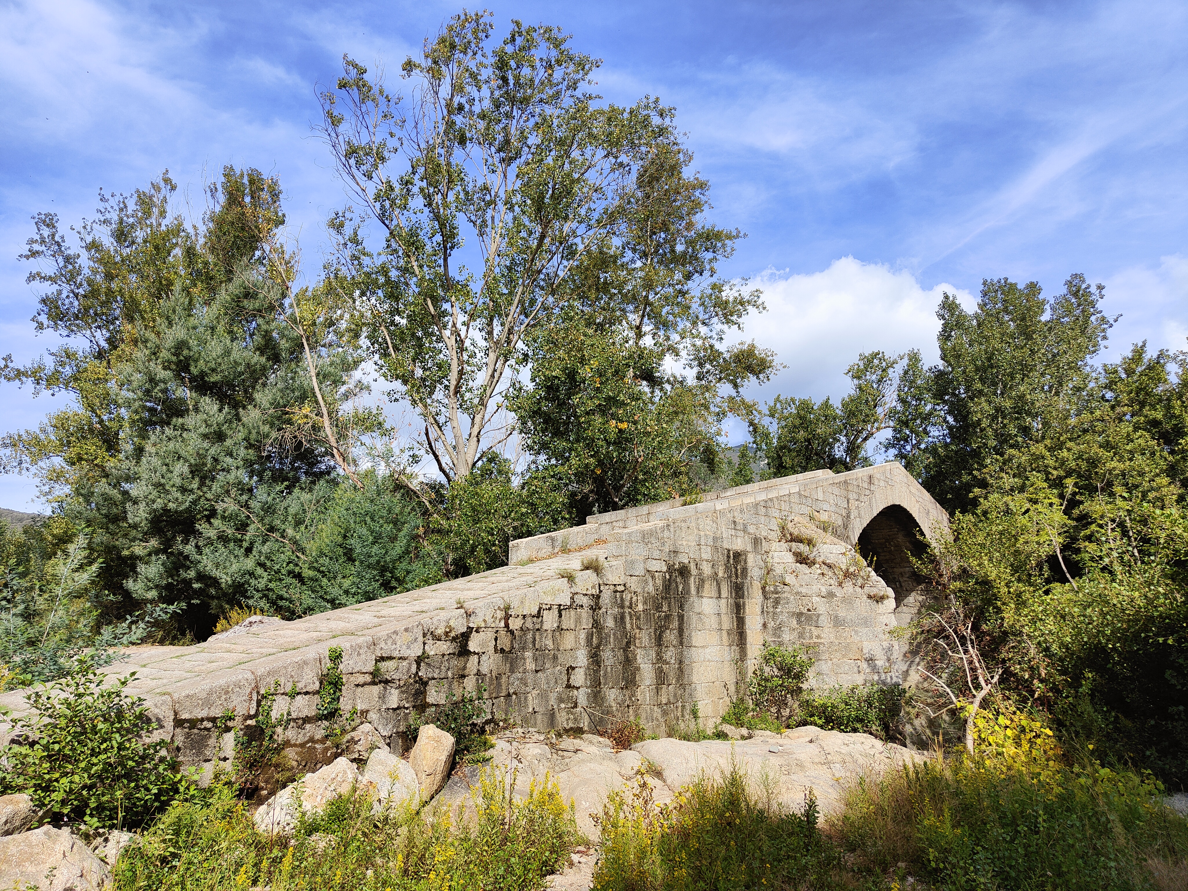 Pont génois au milieu de la nature. Difficile à voir en retrait de la route et non signalé.