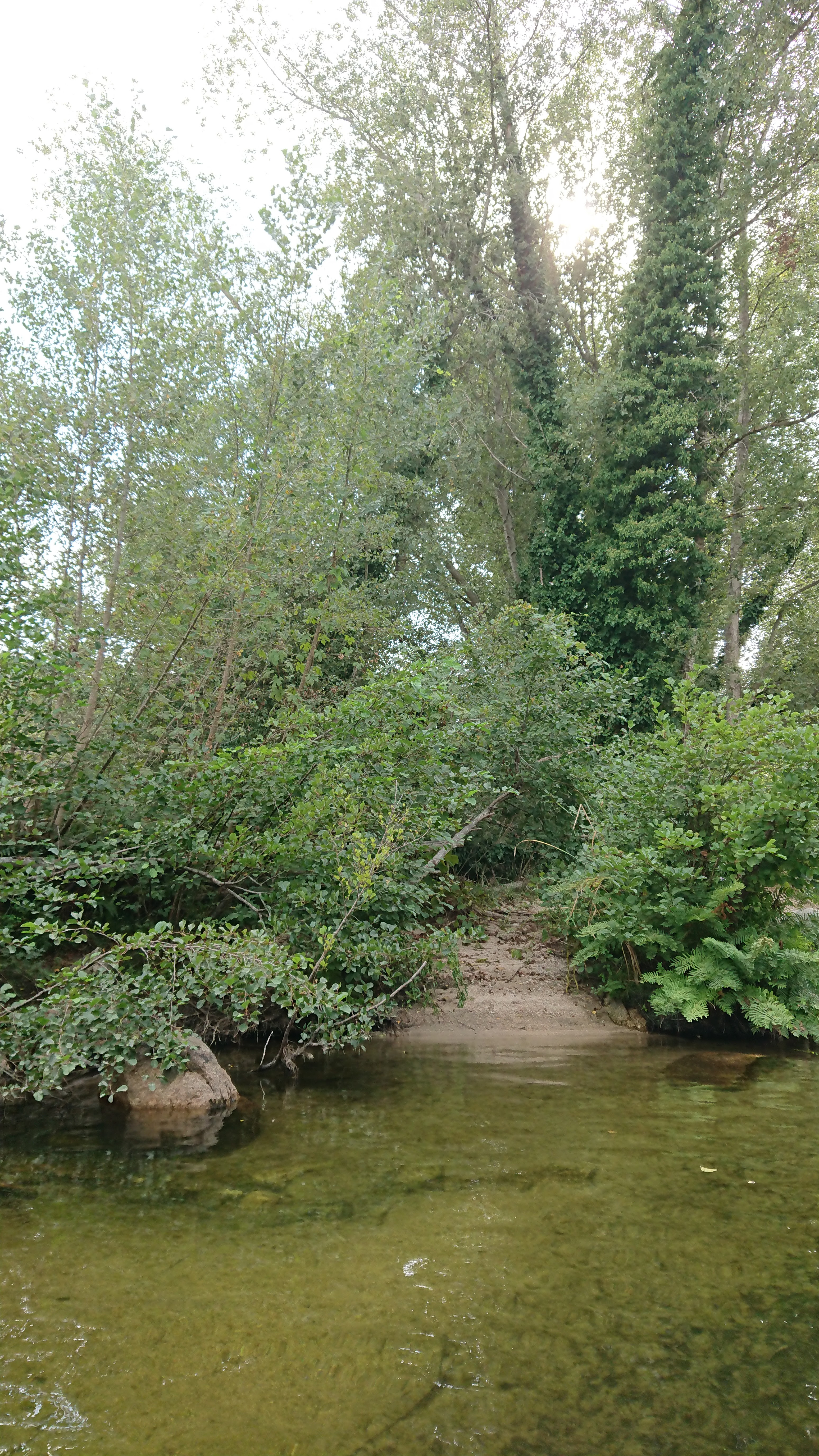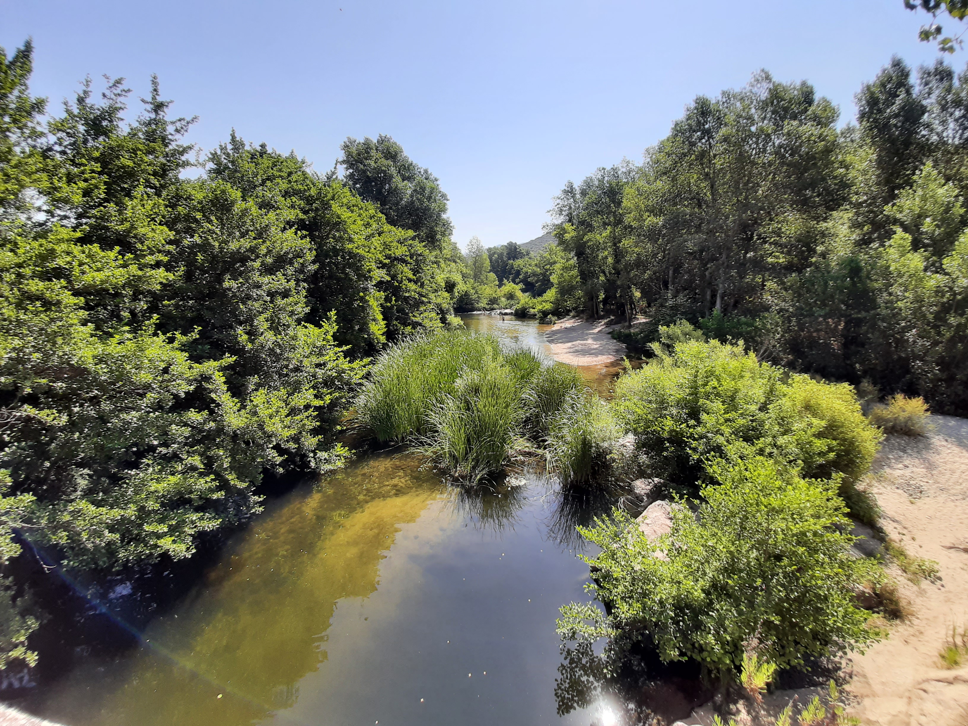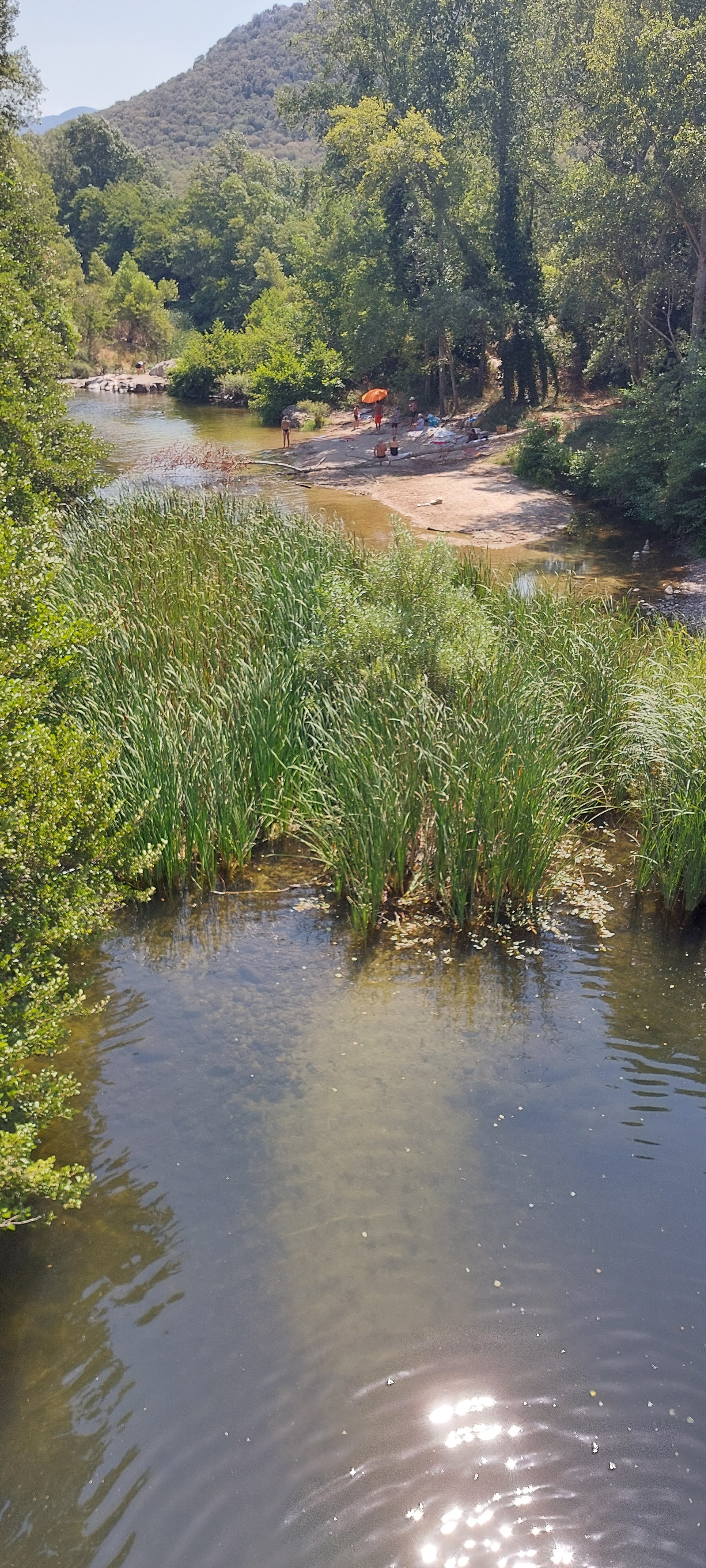 Petite plage de sable au pied du Pont,au frais en début d'après midi.