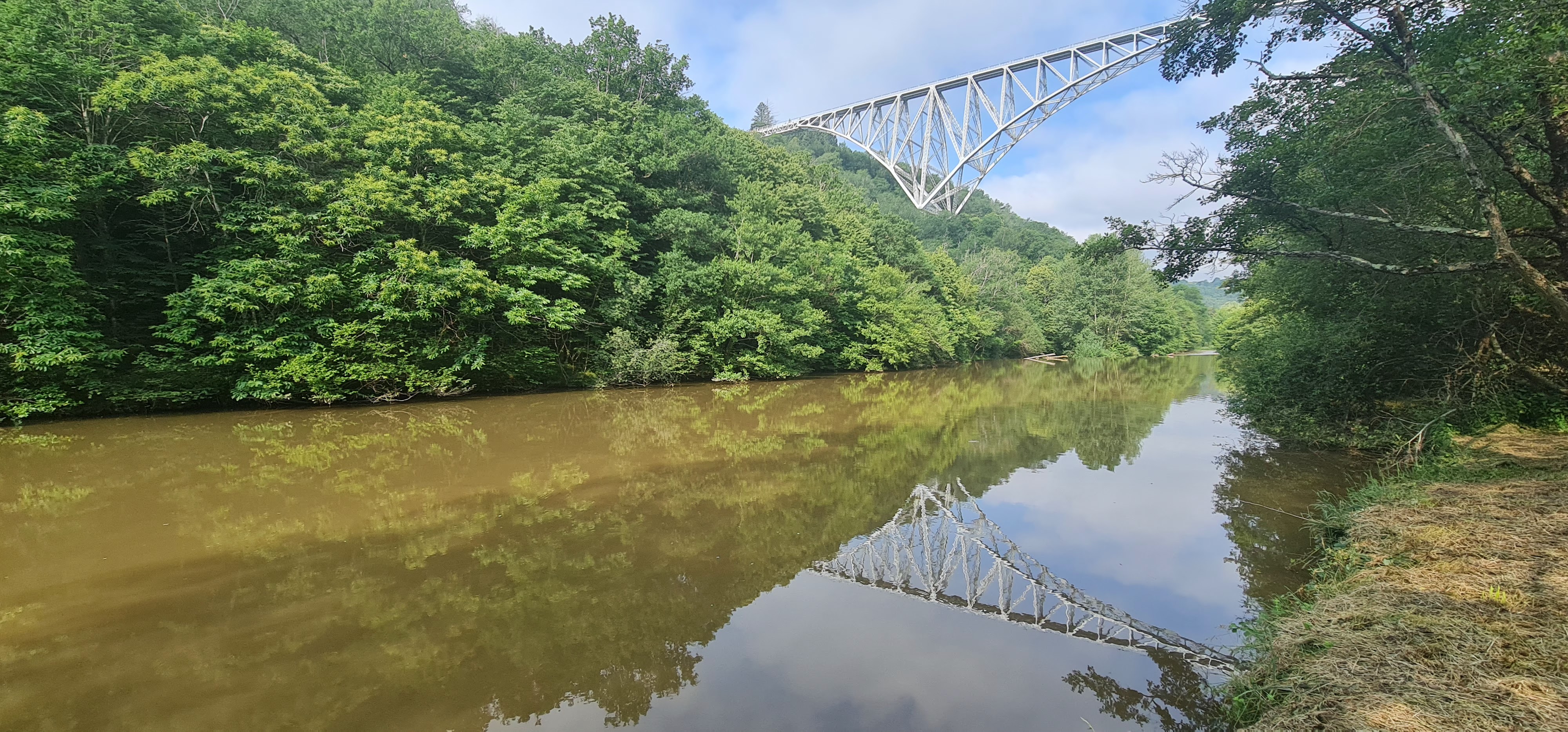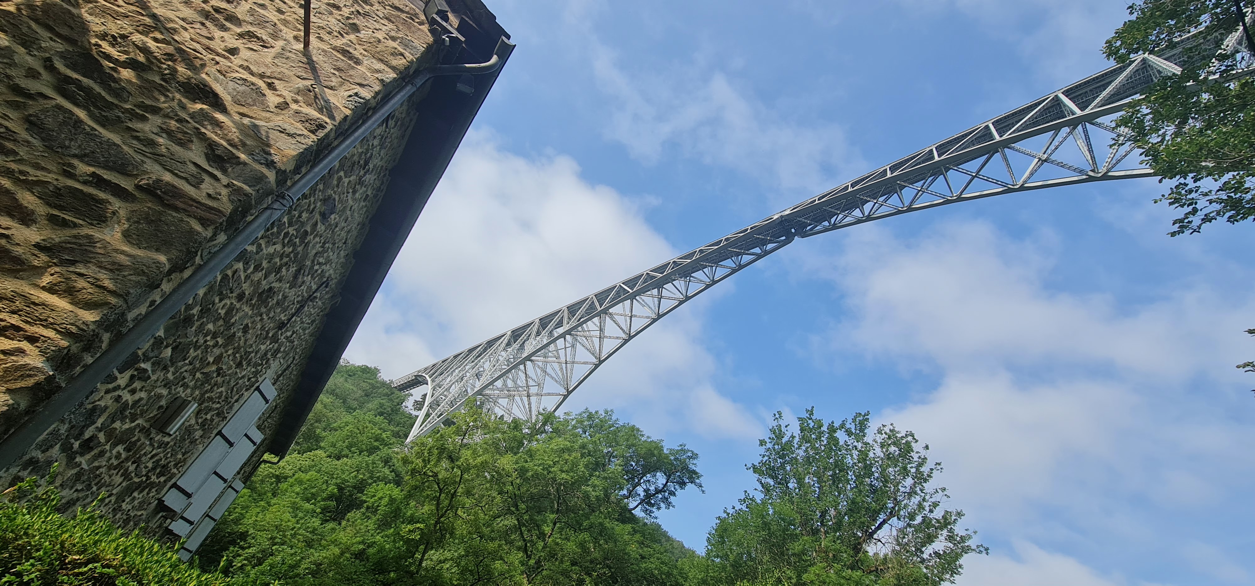 Un pont selon les principes des arcs équilibrés de l'ingénieur Paul Bodin ; émule d'Eiffel. Réalisé en 1902; il traverse la vallée du Viaur à 120m d'altitude.