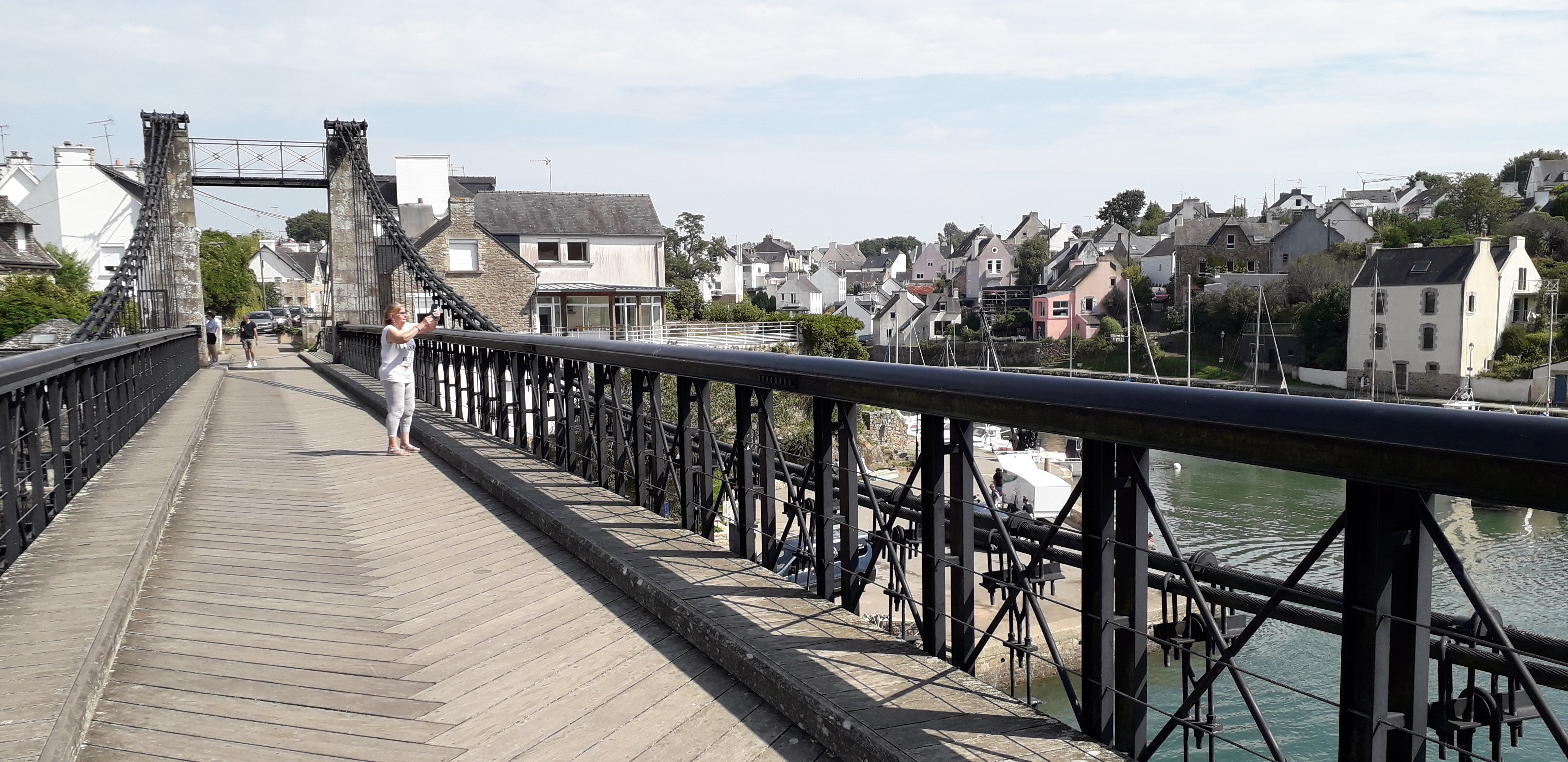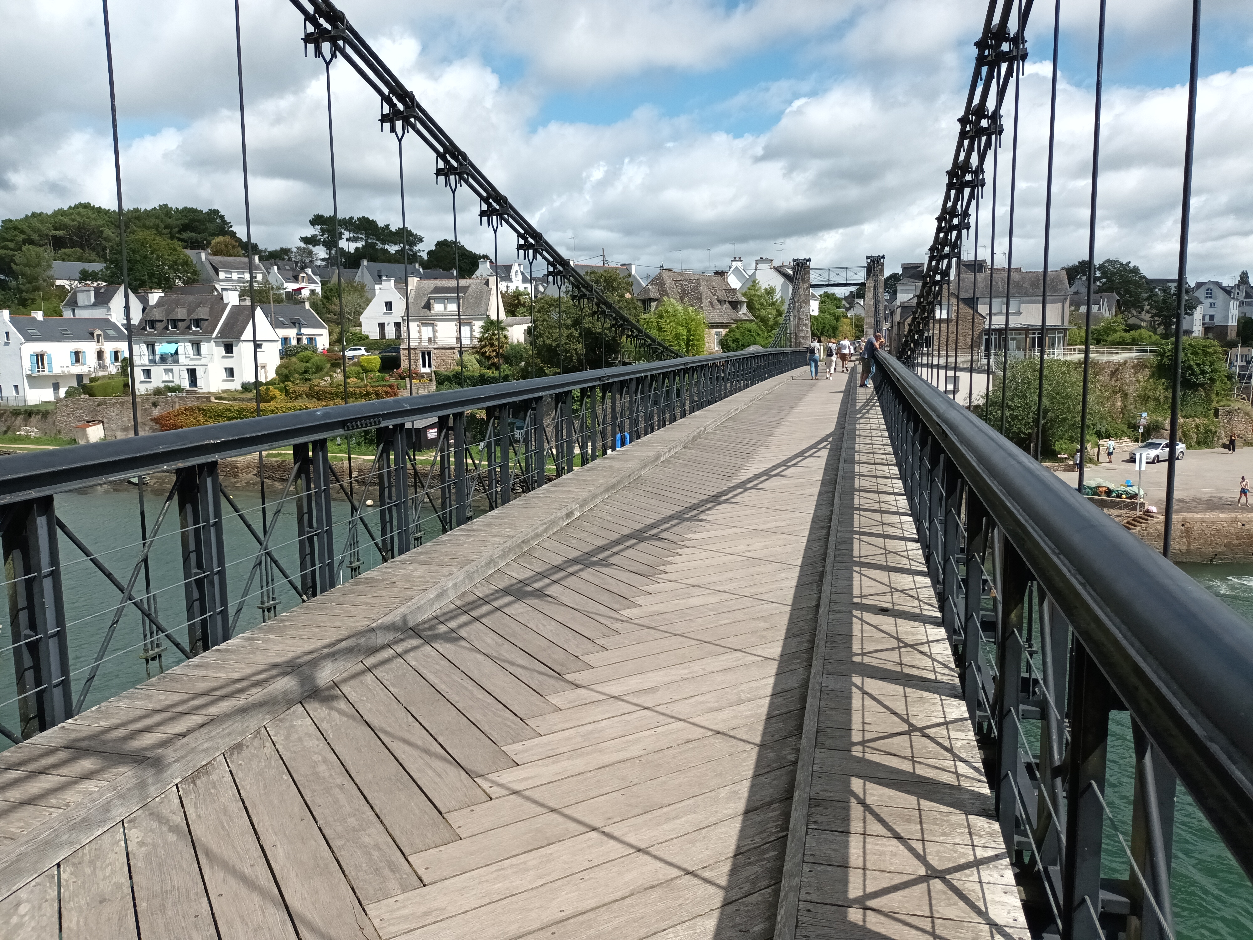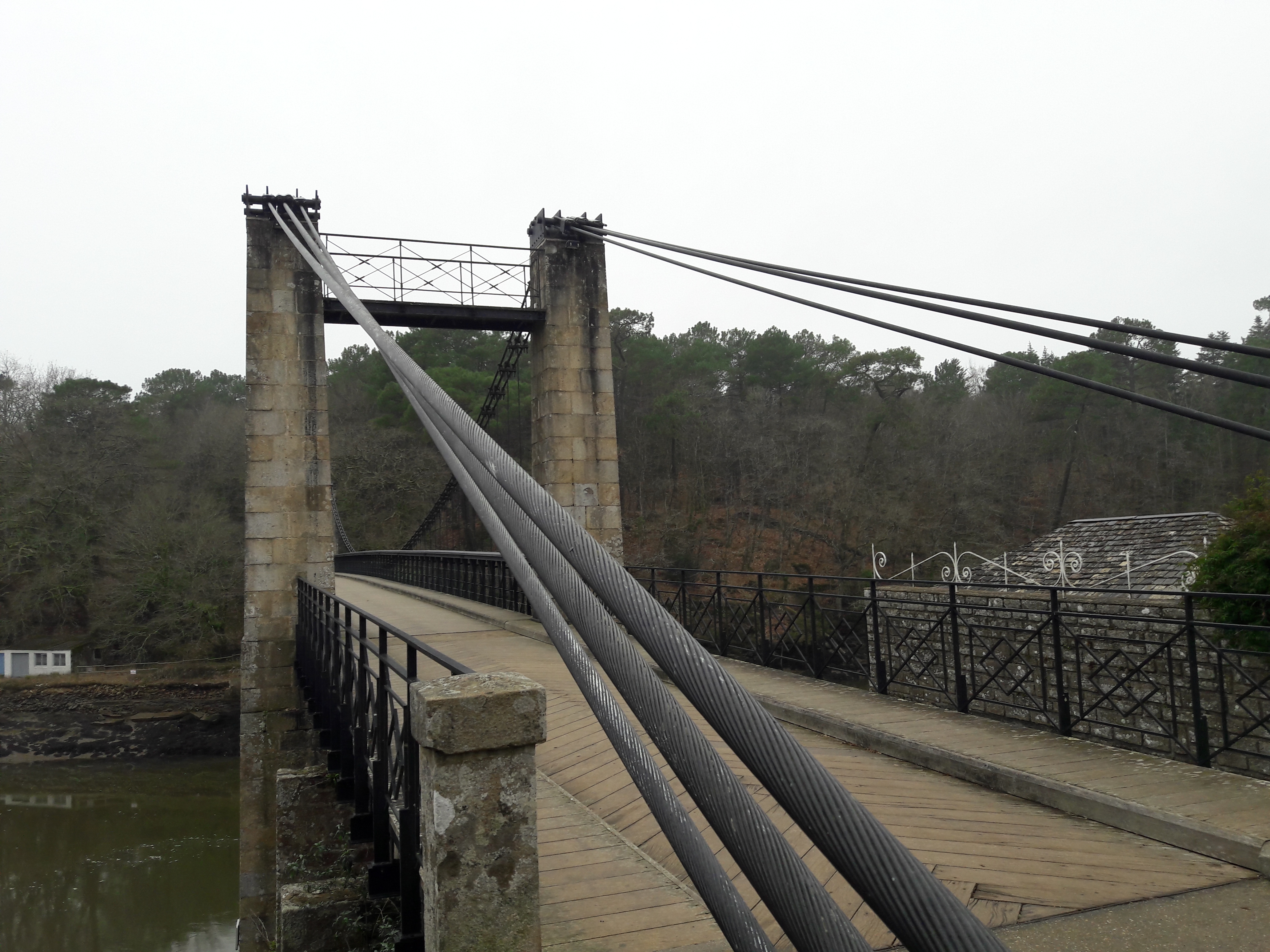 de passage au port du Bono nous avons traversé ce pont d un autre âge ; reconstruit à l identique . et je recommande la balade côtière jusqu'à la pointe de kerister . vous y découvrirez le jardin du souvenir un lieu de recueillement et de souvenir . que personne , avec une once d'honneur , ne devrait avoir l idée de rayer de la carte . quelle honte si jamais cela arrivait , soutenez les
