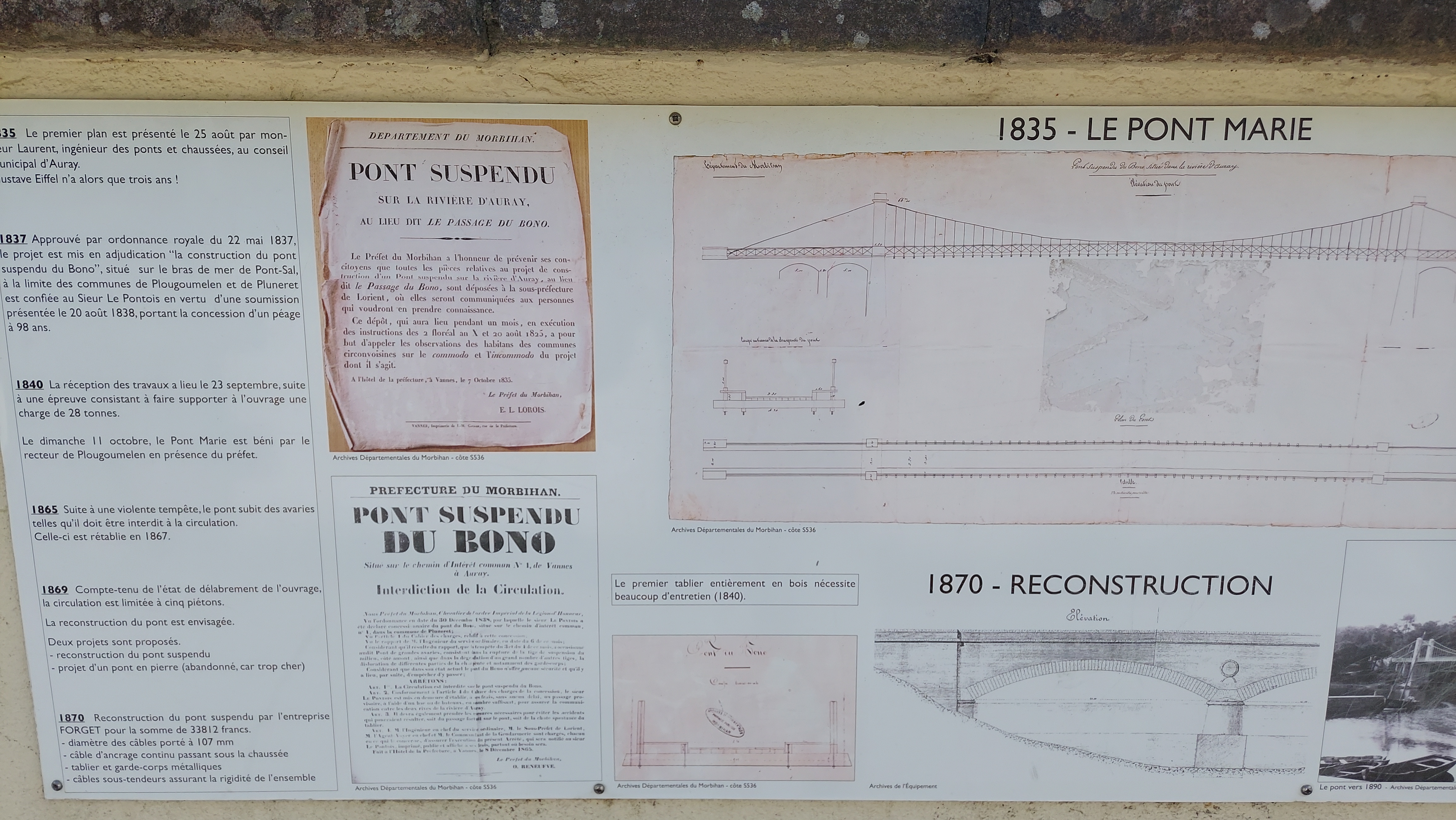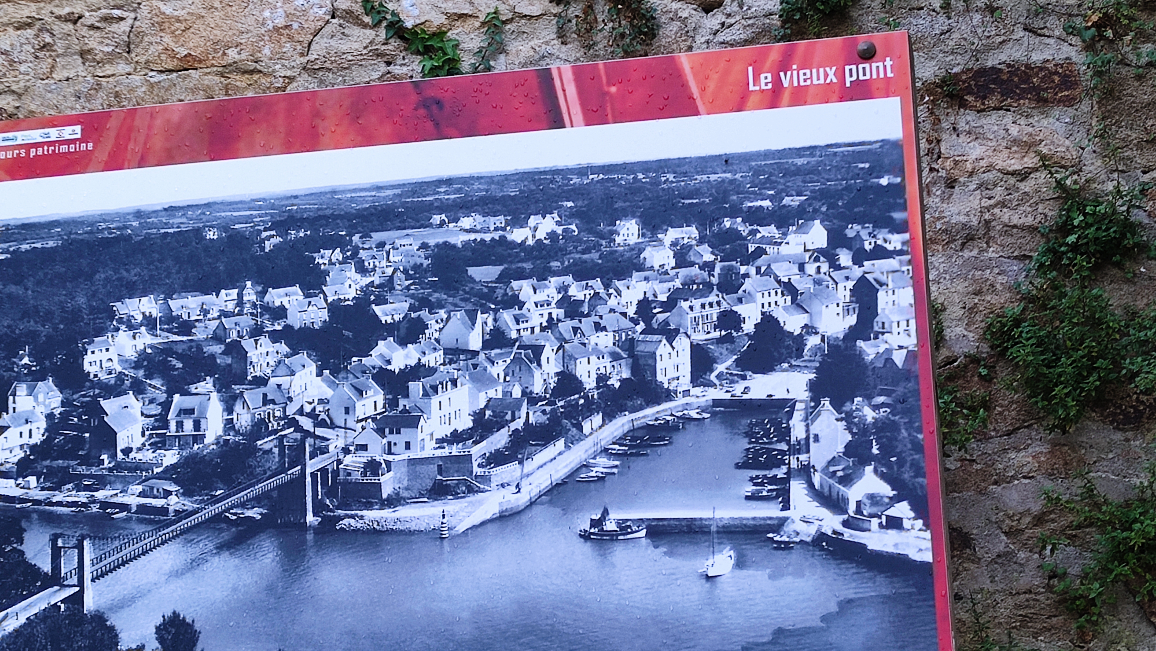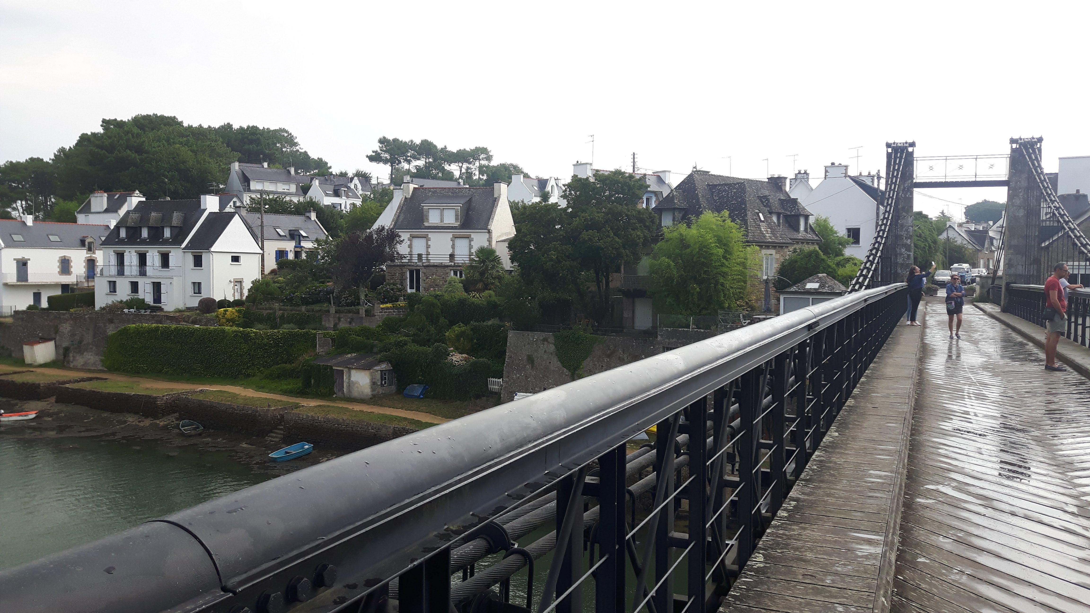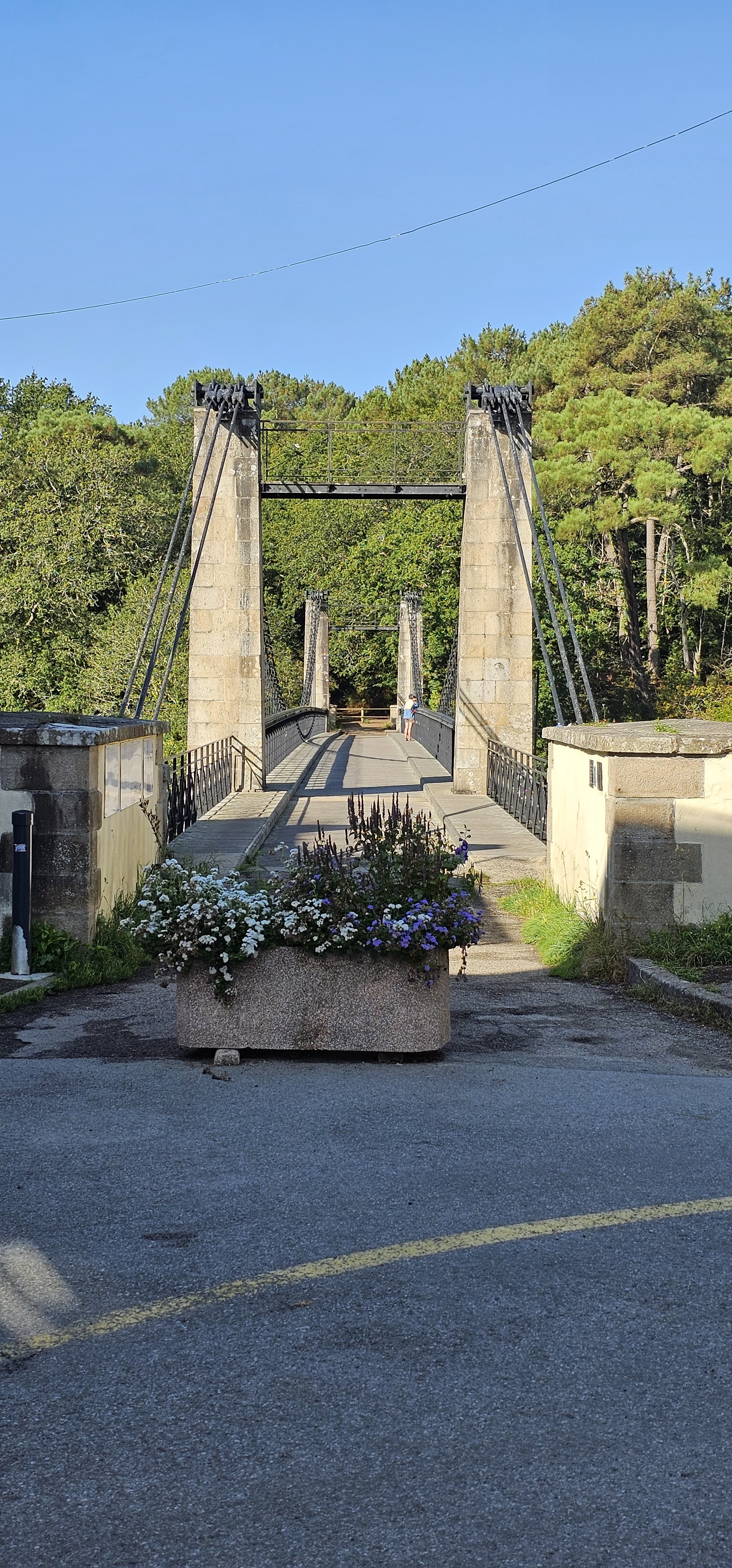 de passage au port du Bono nous avons traversé ce pont d un autre âge ; reconstruit à l identique . et je recommande la balade côtière jusqu'à la pointe de kerister . vous y découvrirez le jardin du souvenir un lieu de recueillement et de souvenir . que personne , avec une once d'honneur , ne devrait avoir l idée de rayer de la carte . quelle honte si jamais cela arrivait , soutenez les