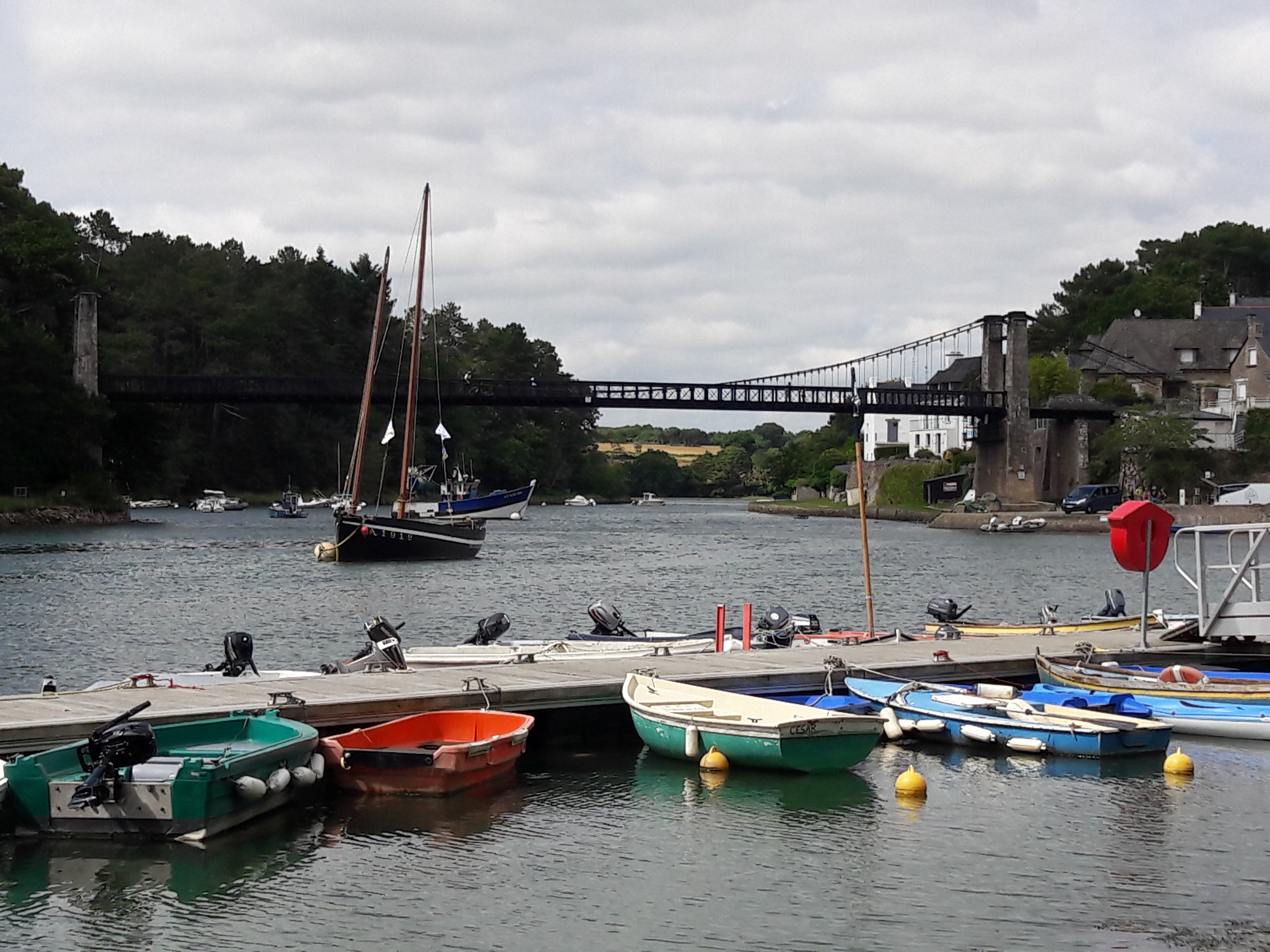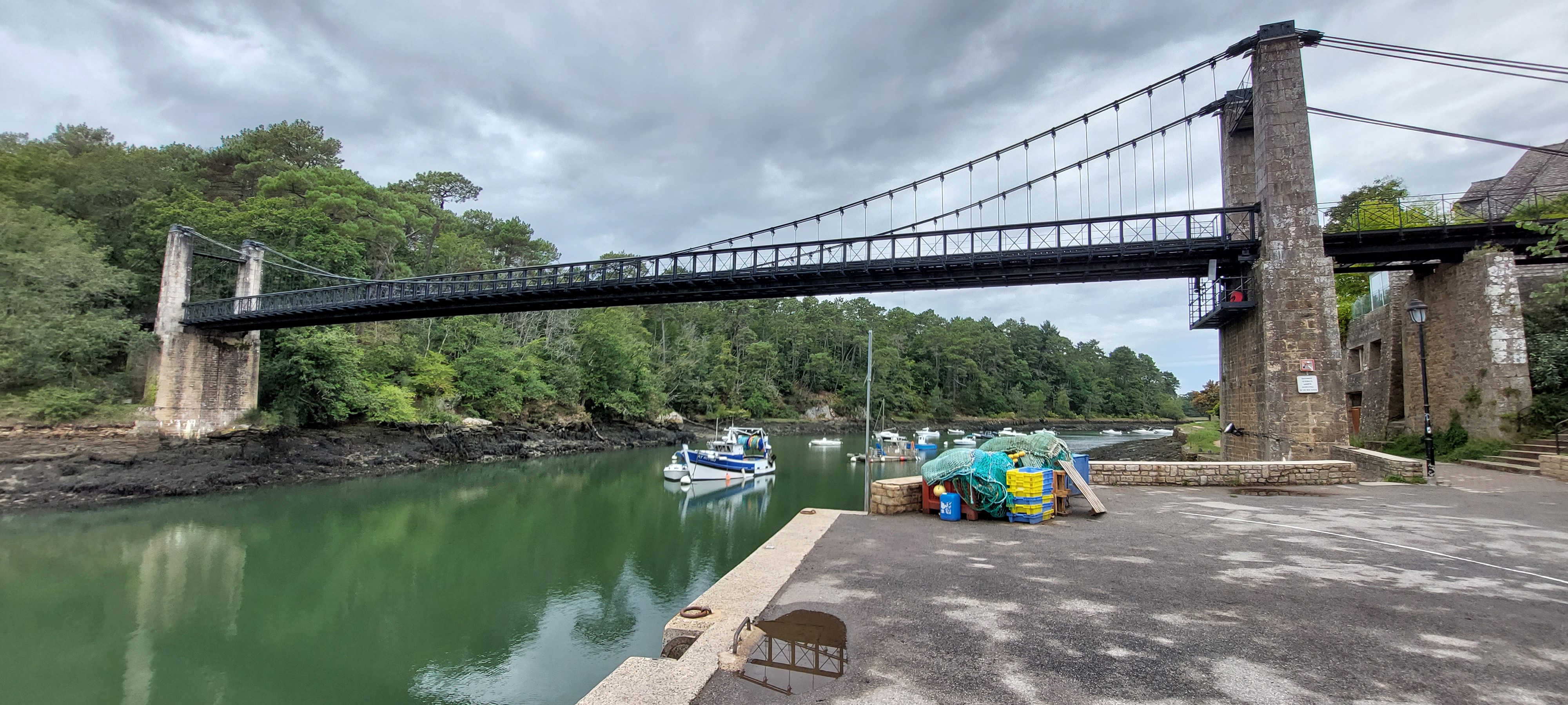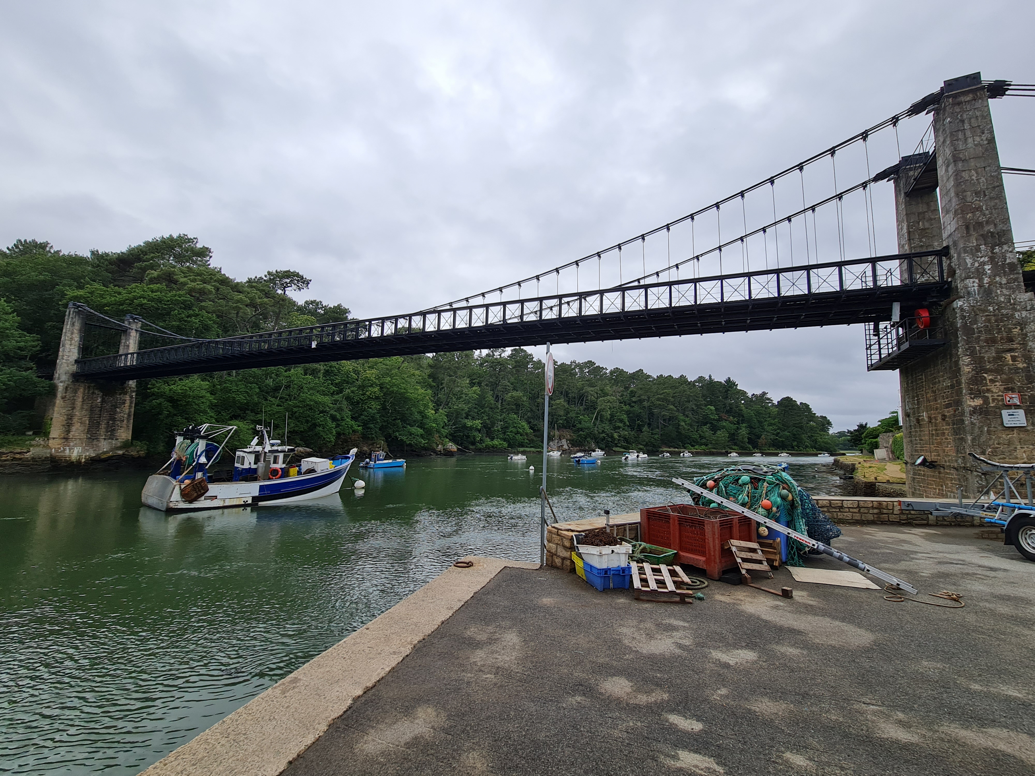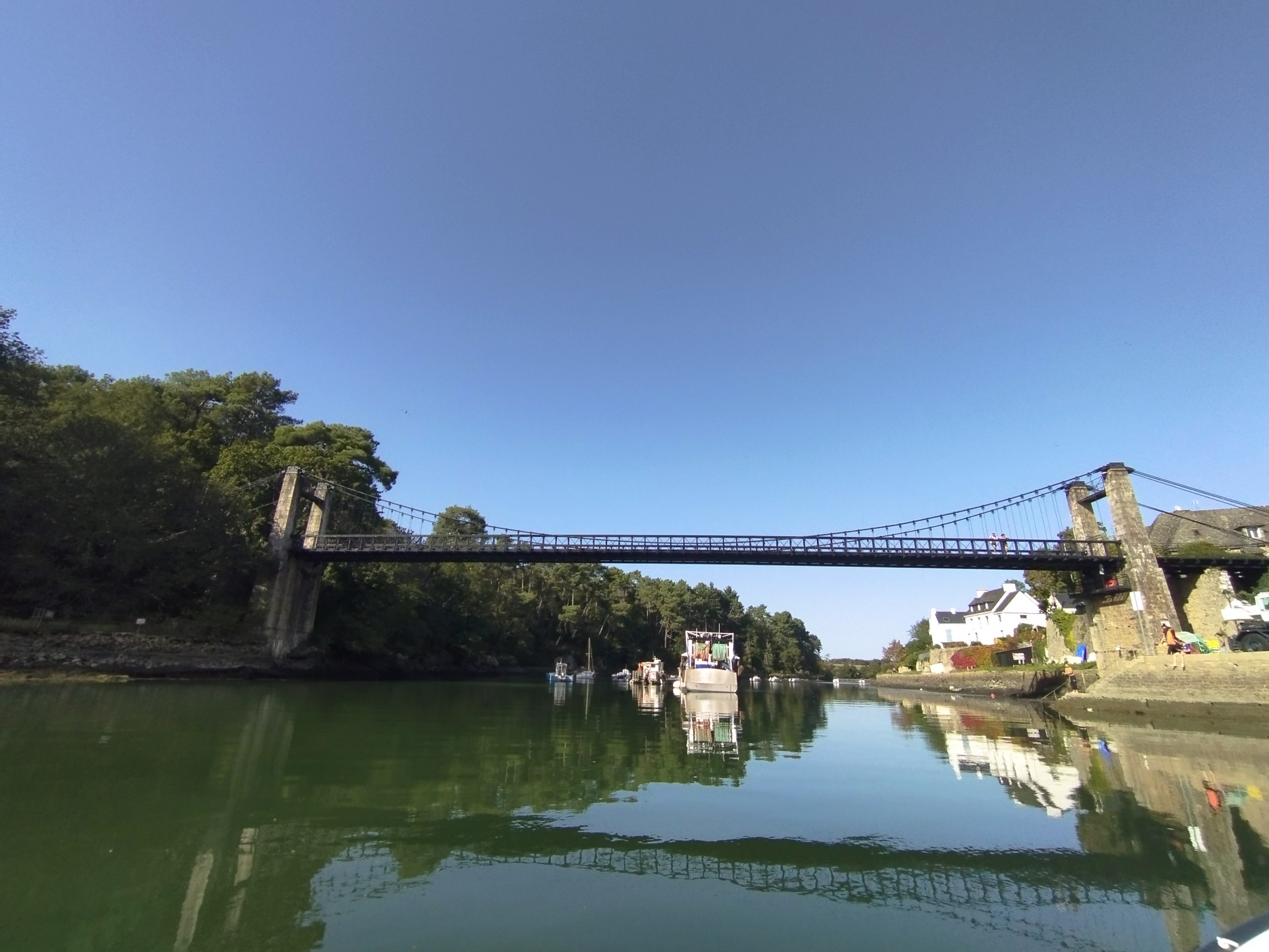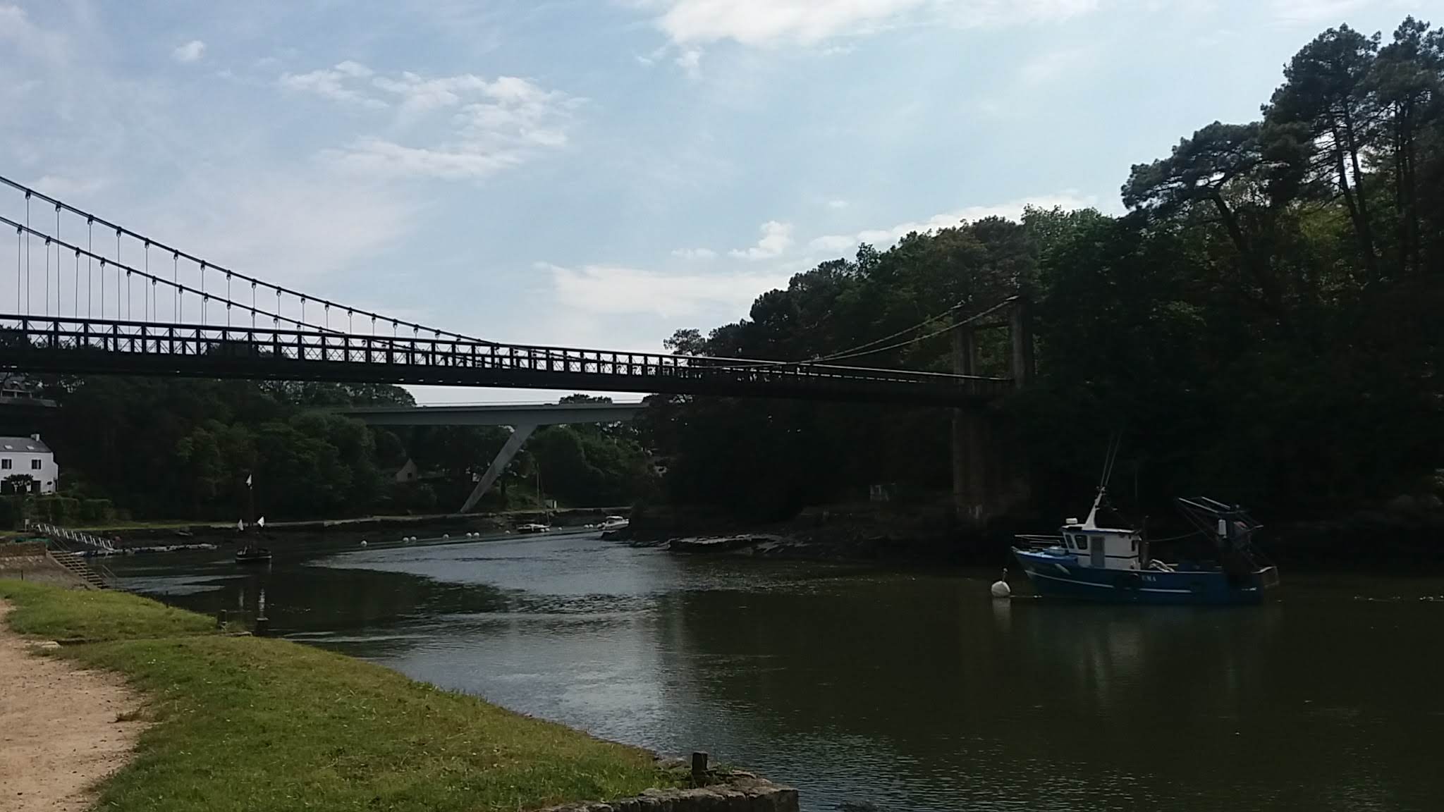 Le pont suspendu offre une très belle vue sur le port du Bono et sur la rivière L’ouvrage est intéressant dans sa conception