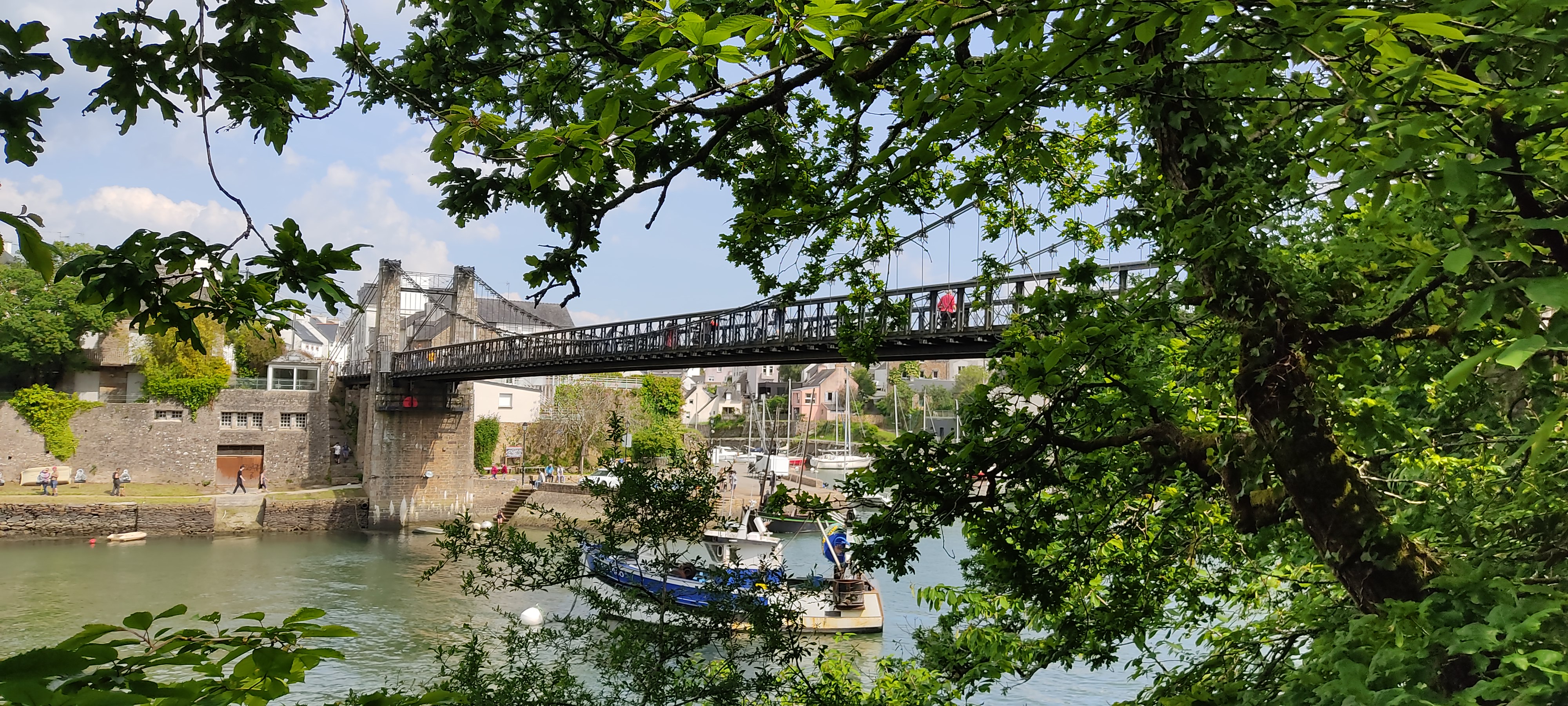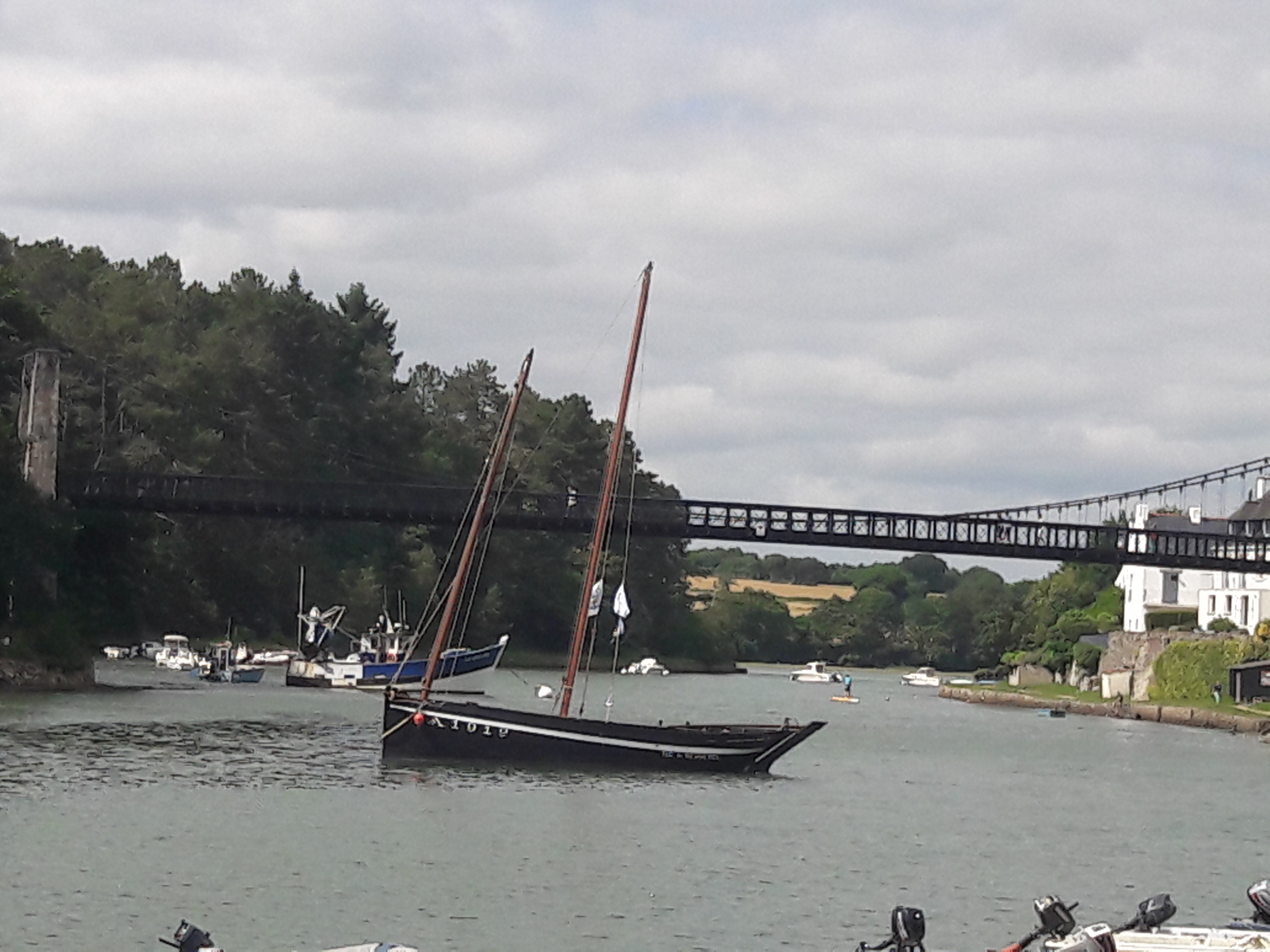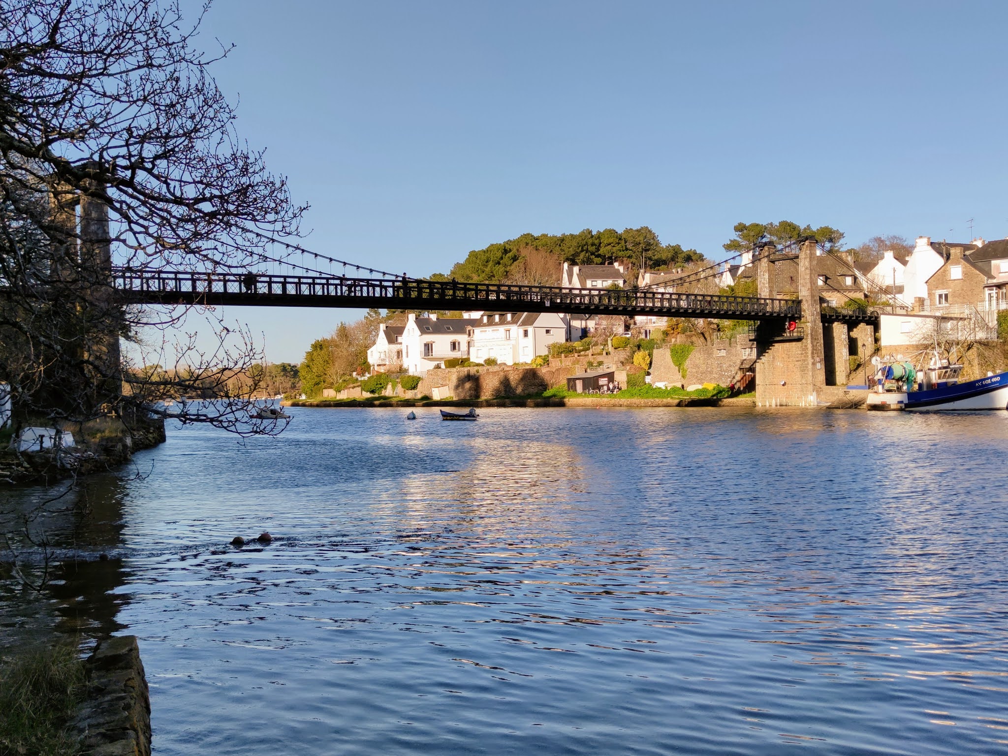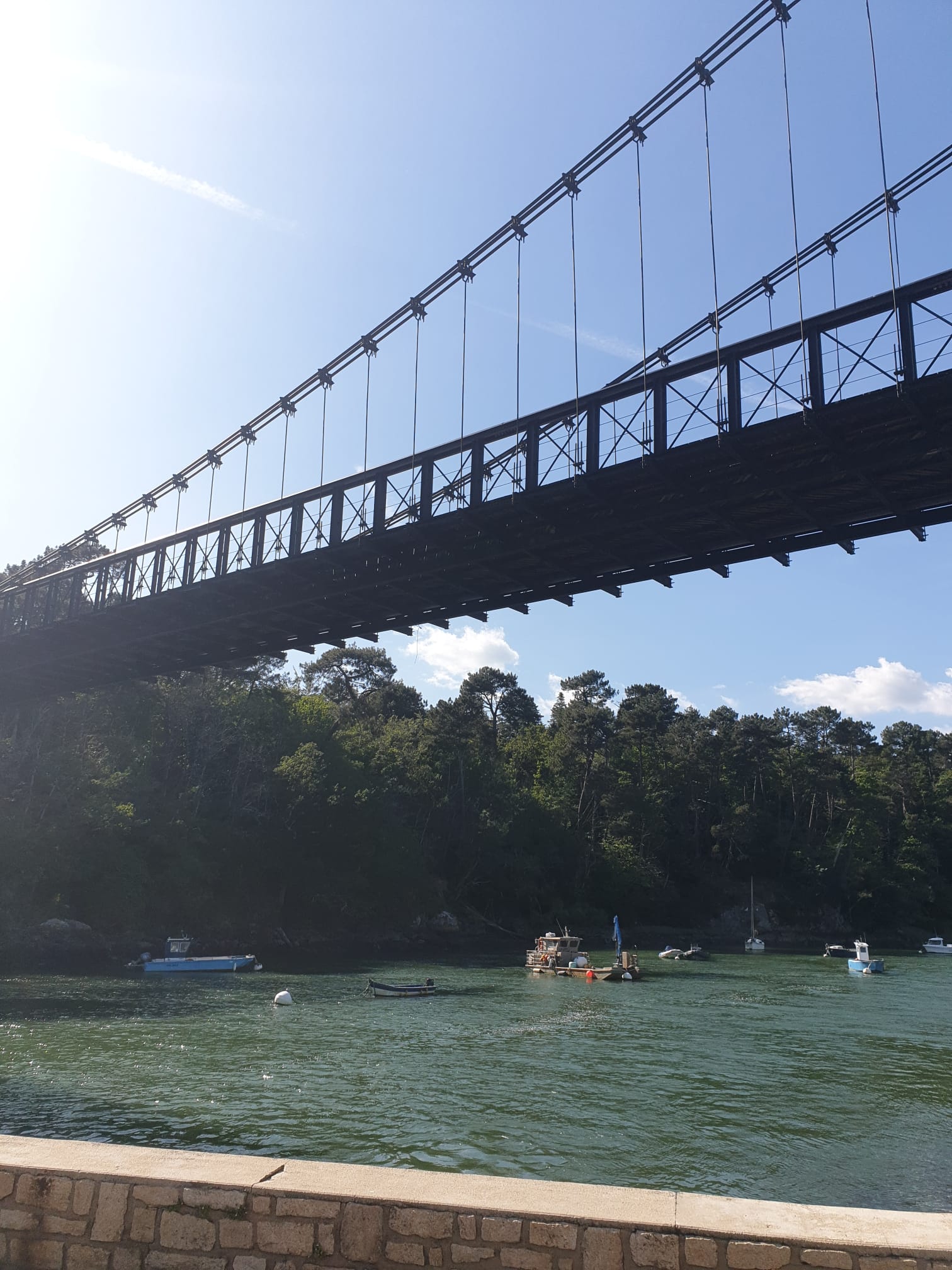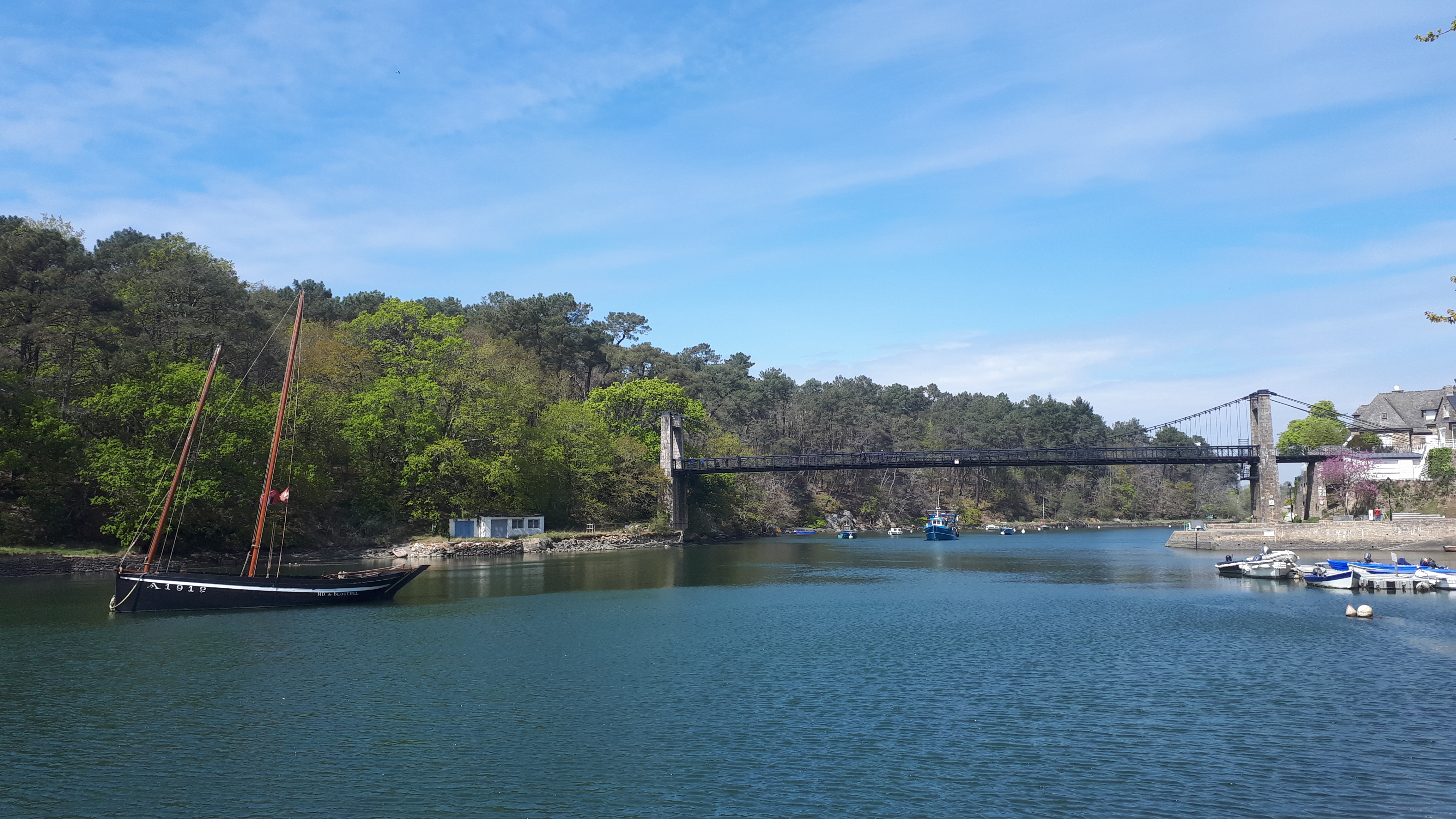 Le pont suspendu offre une très belle vue sur le port du Bono et sur la rivière L’ouvrage est intéressant dans sa conception