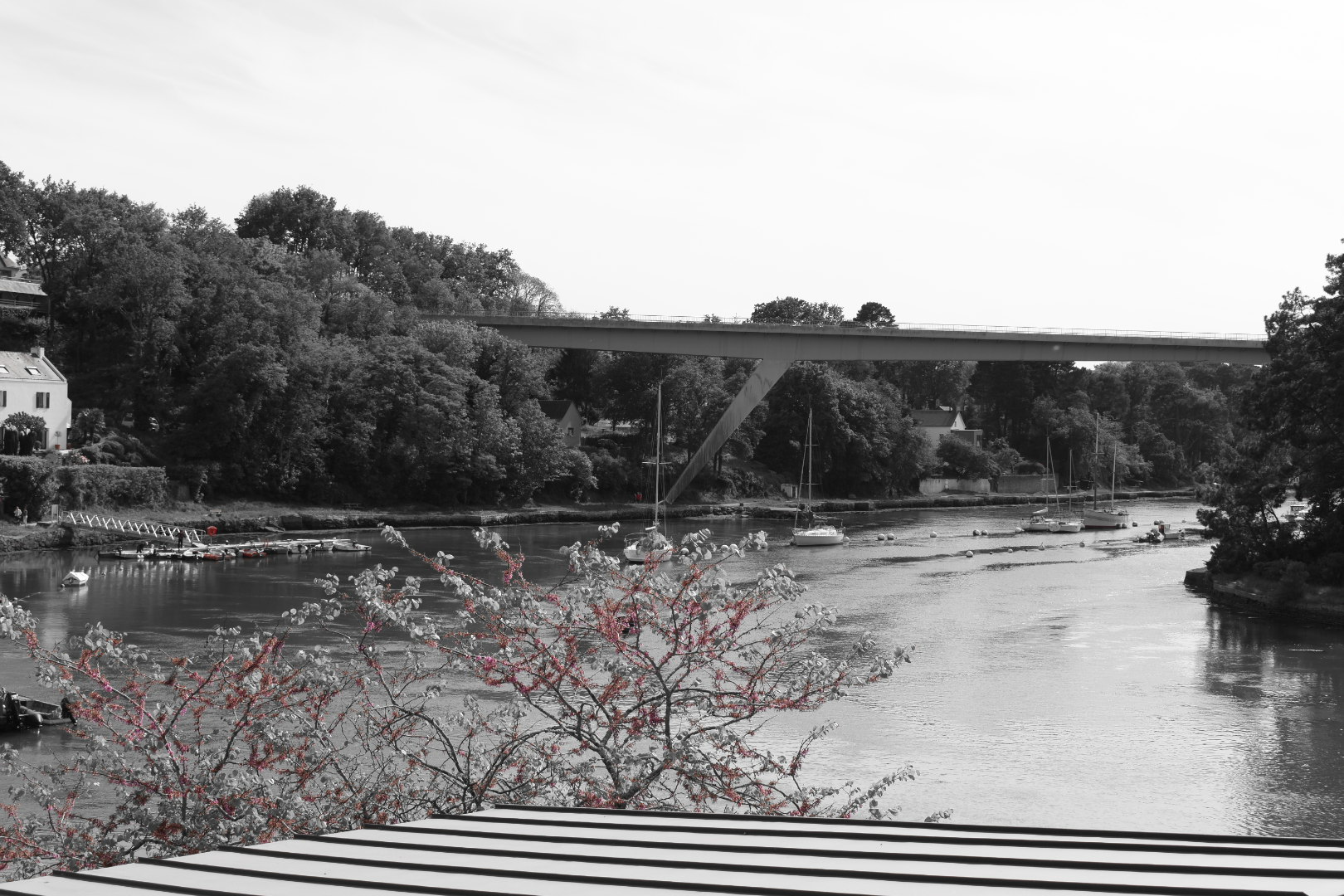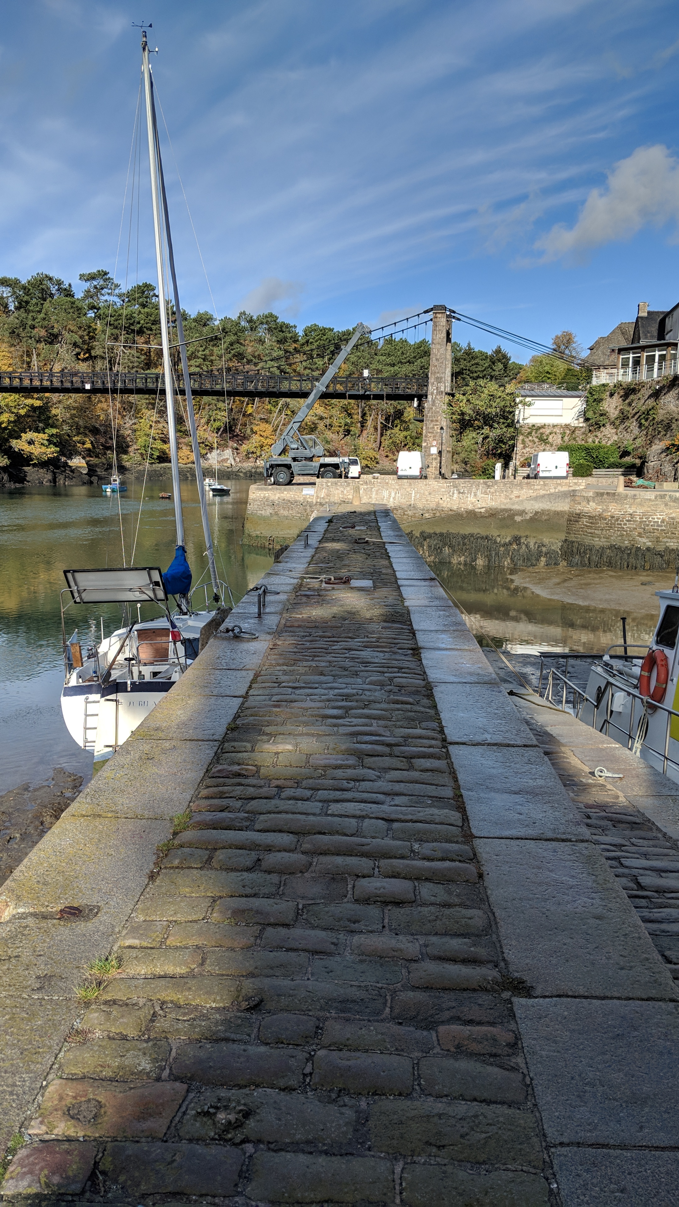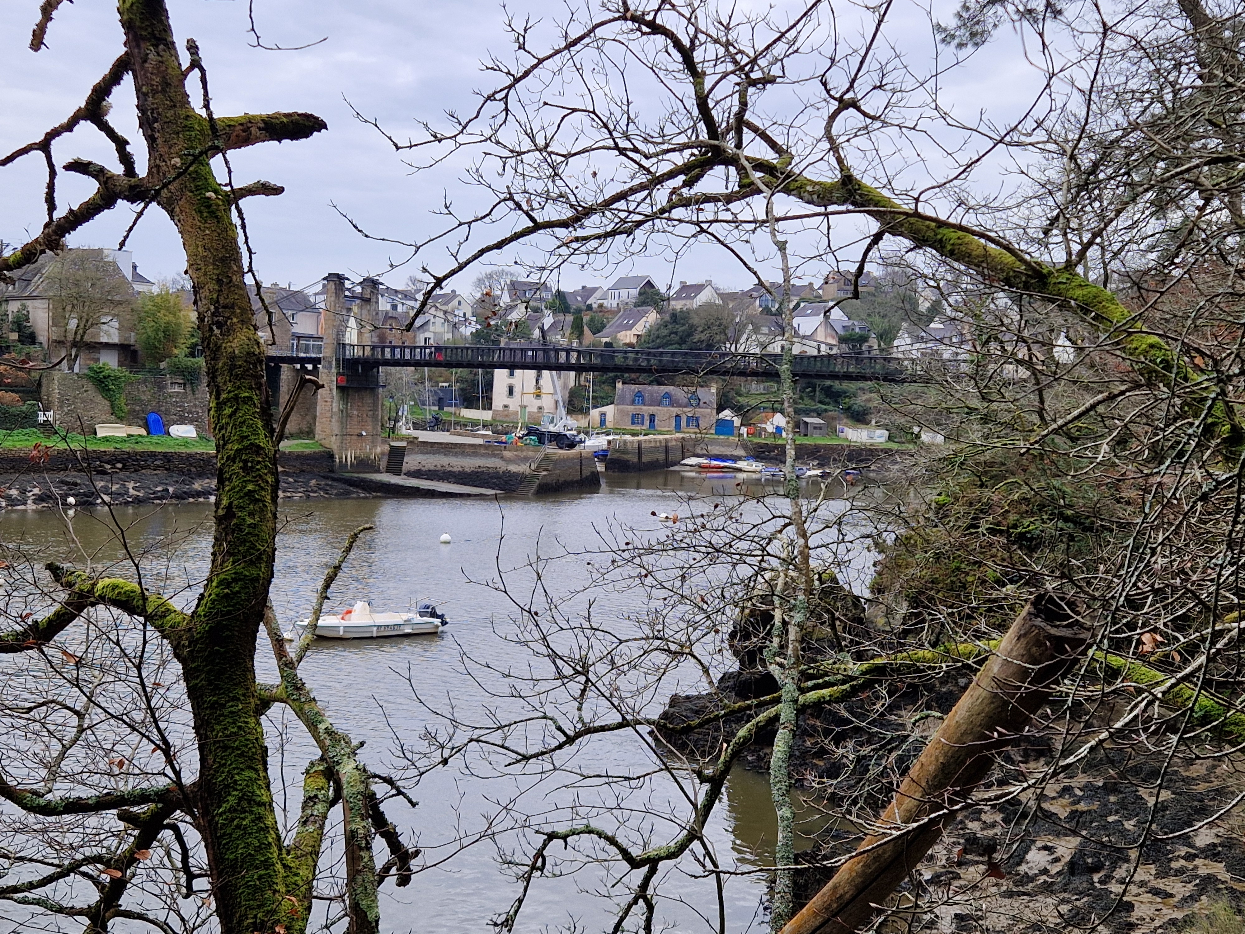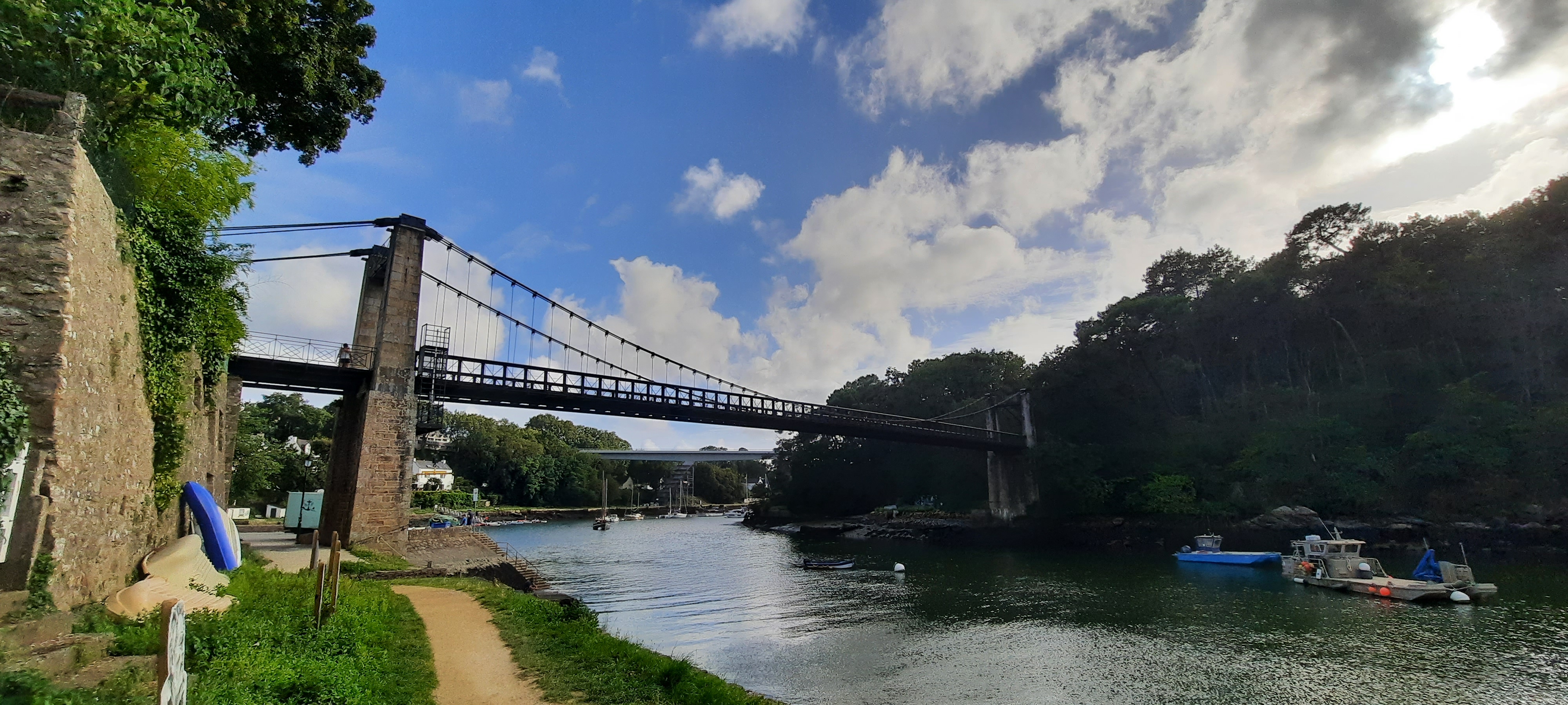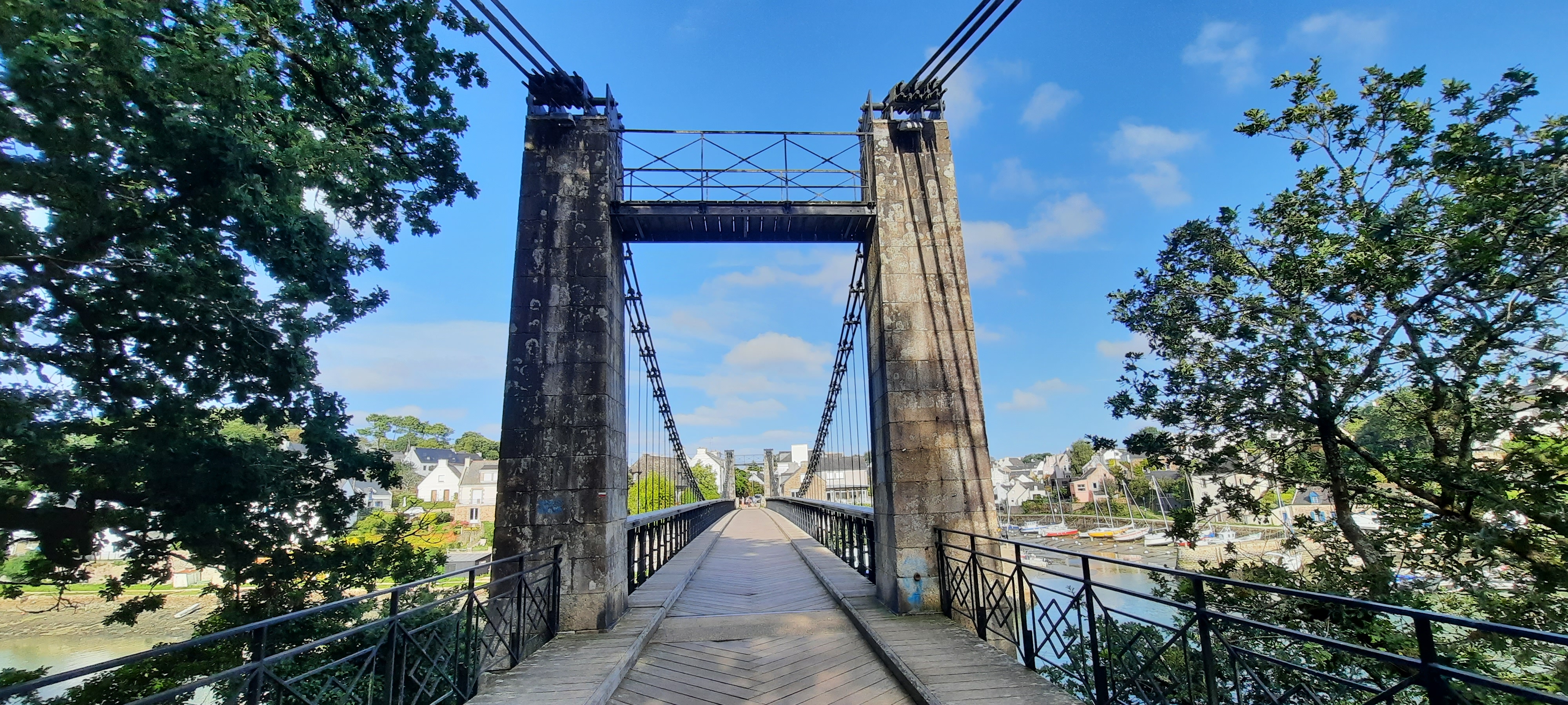 Le pont suspendu offre une très belle vue sur le port du Bono et sur la rivière L’ouvrage est intéressant dans sa conception