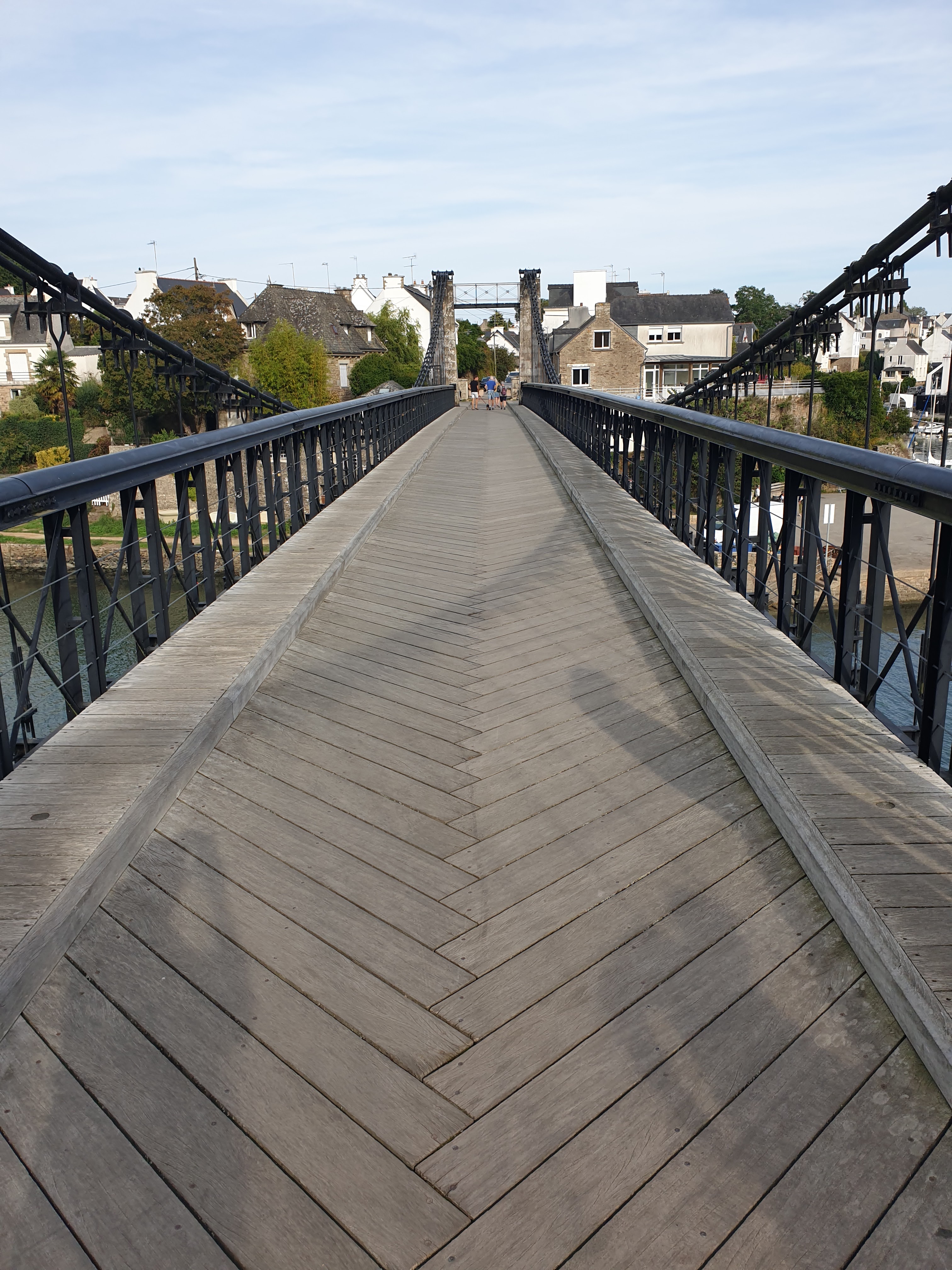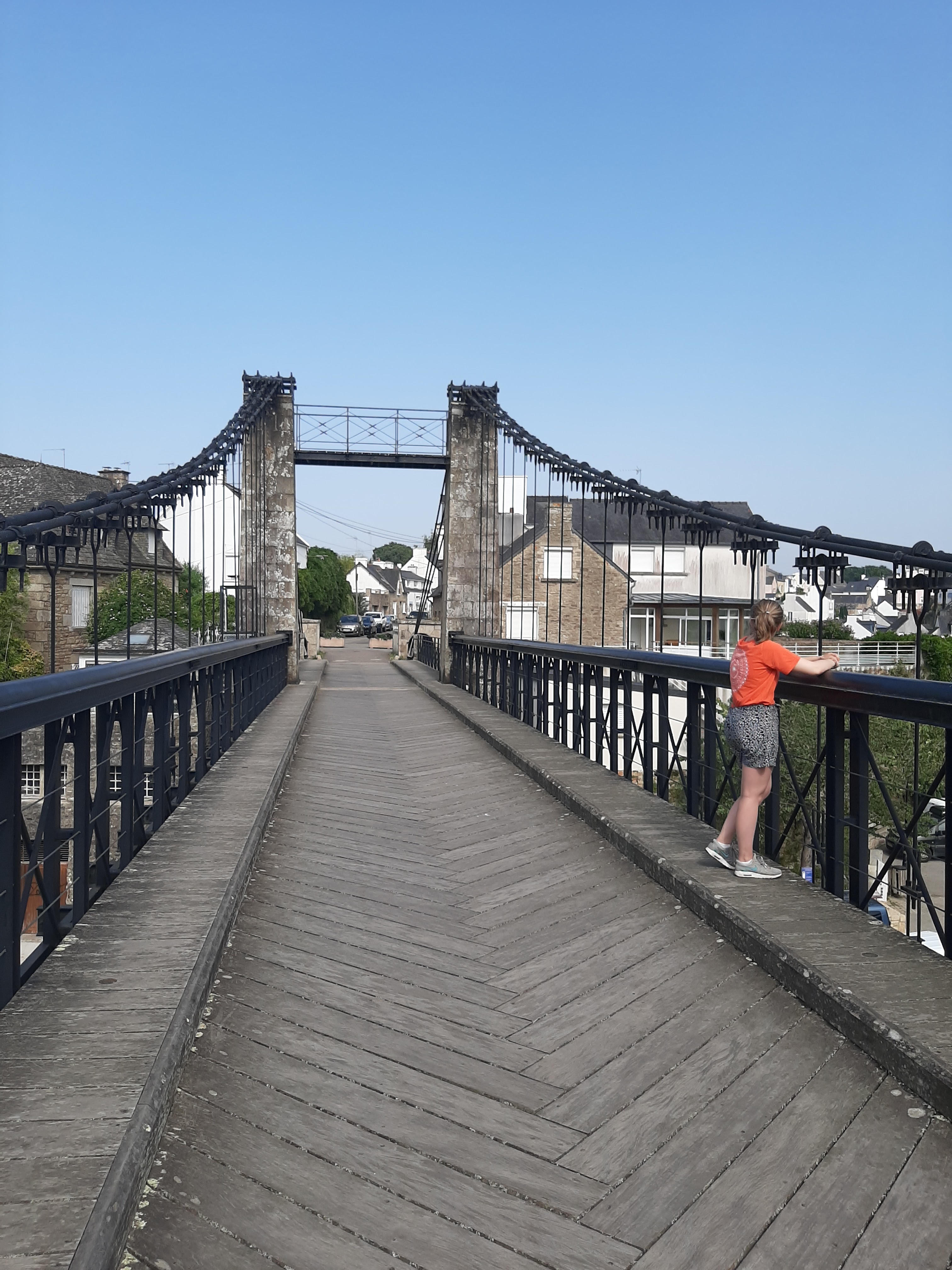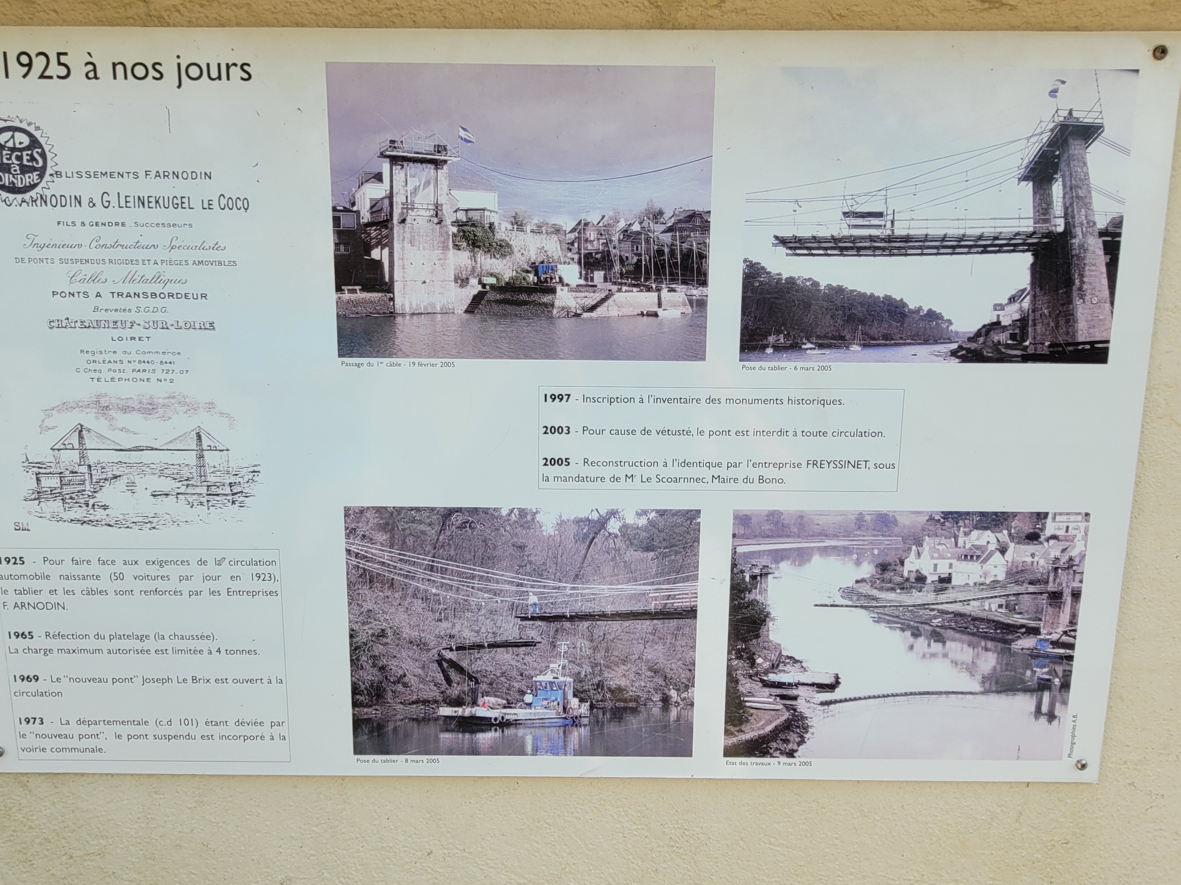 Je vous conseille de marcher sur le pont suspendu car le revêtement est en bois et vous offrant une belle vue sur la rivière du Bono et son port. Ne pas oublier de prendre l'escalier menant au port et au pied du pont avec vue sur le nouveau pont. Sur votre chemin existe des panneaux retraçant l'histoire maritime de ce bourg ainsi que celui du pont.