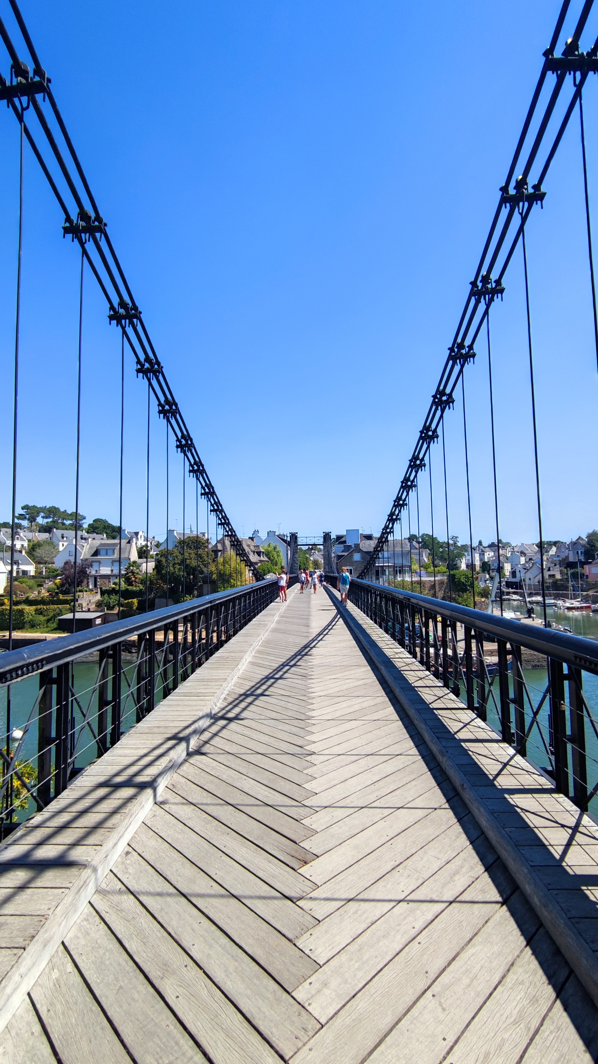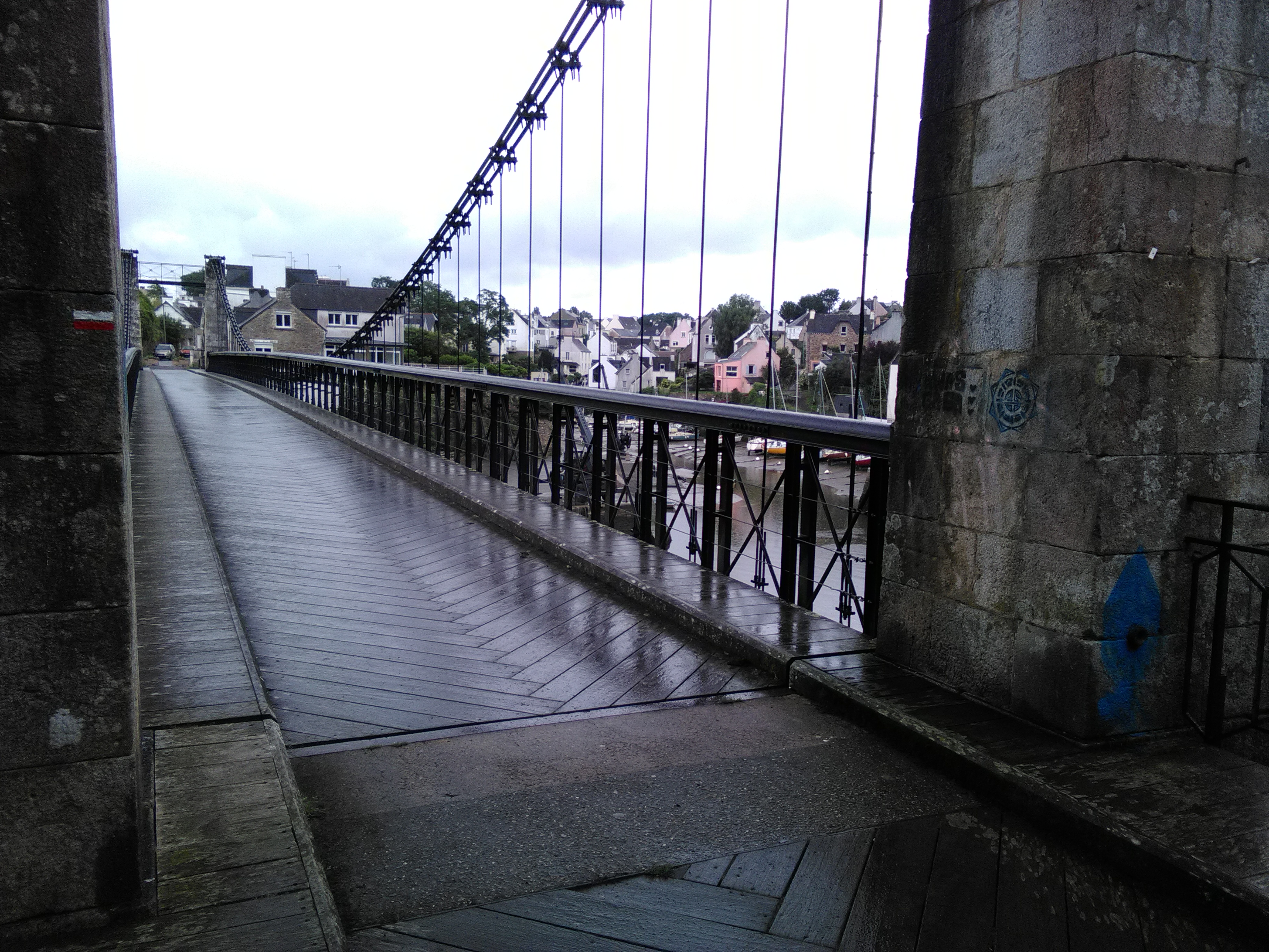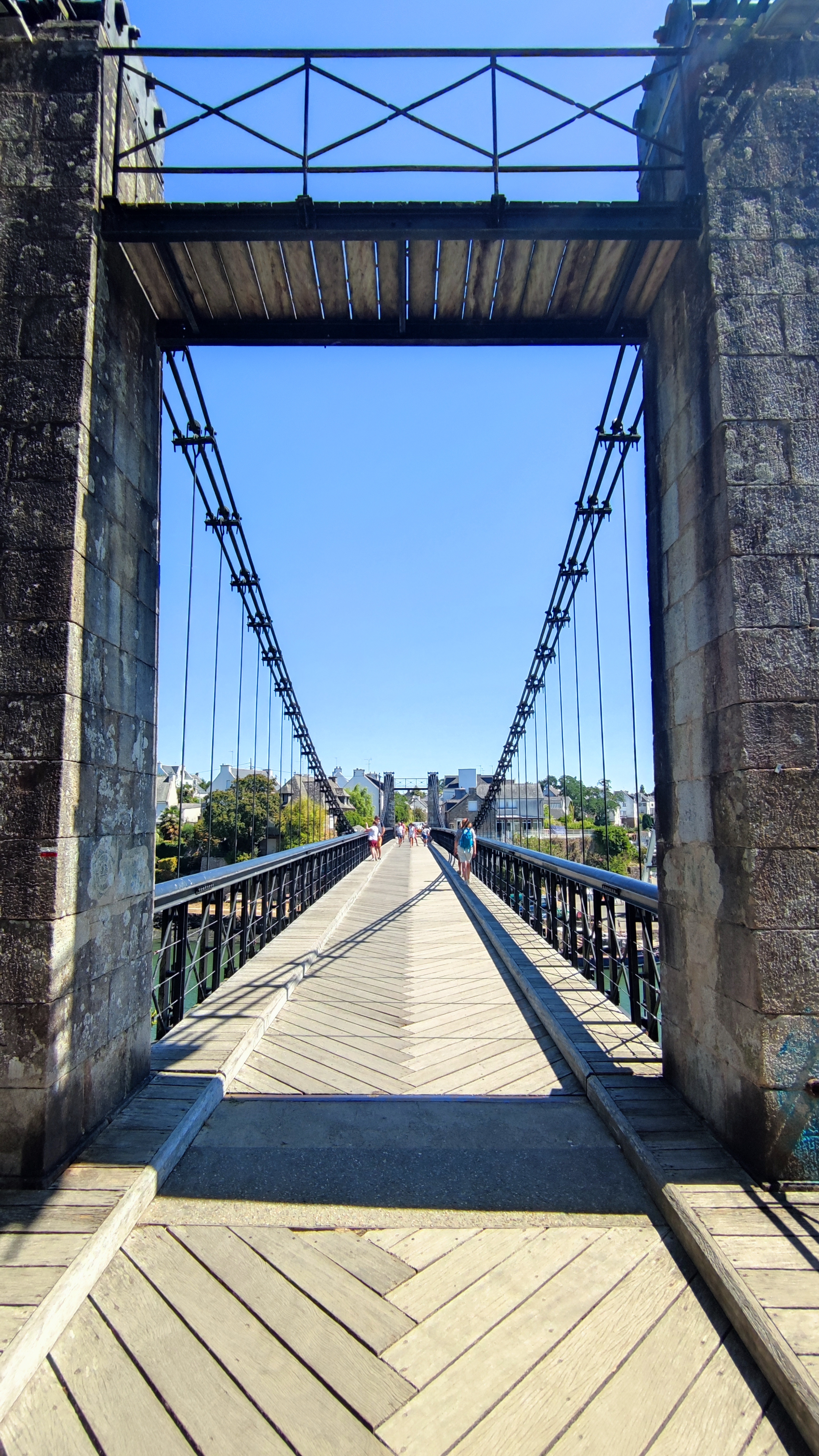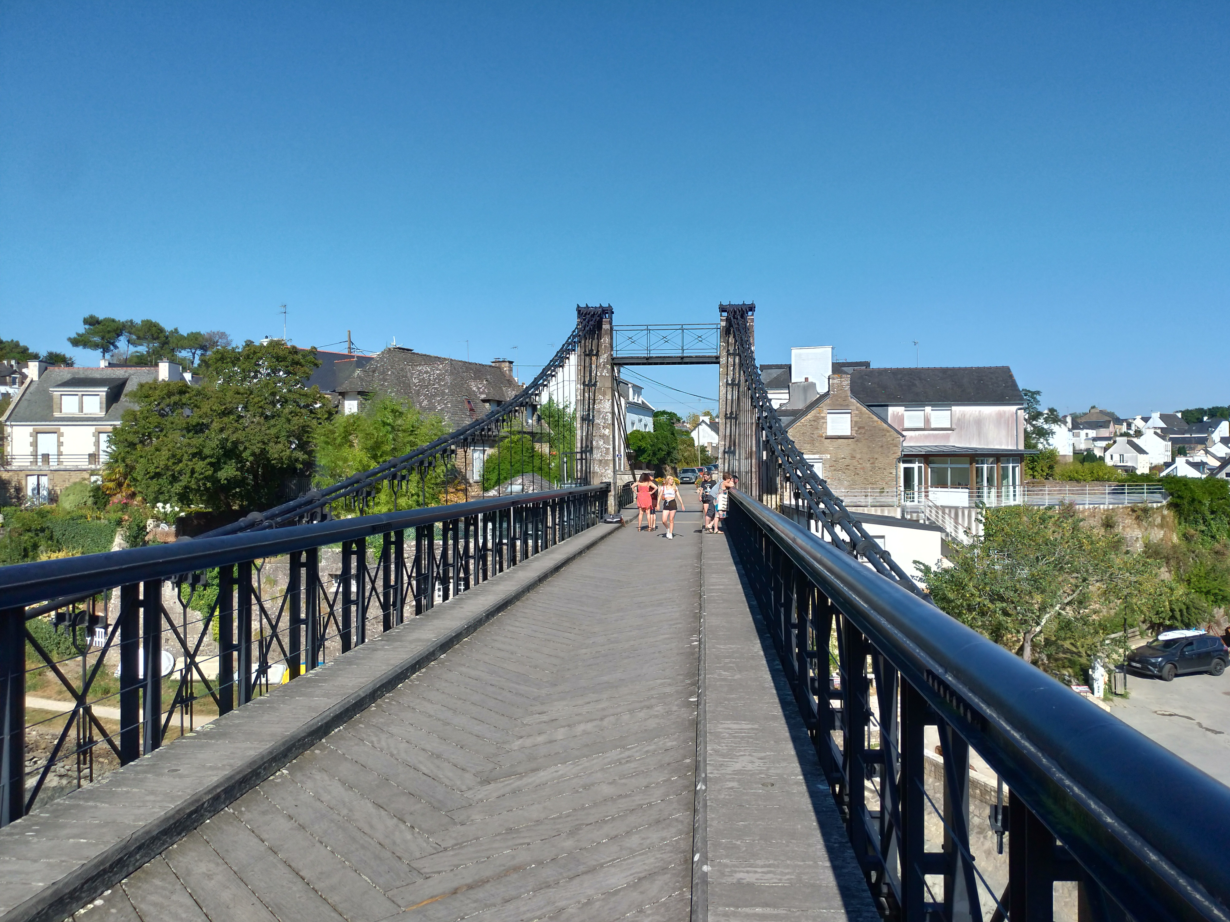 Je vous conseille de marcher sur le pont suspendu car le revêtement est en bois et vous offrant une belle vue sur la rivière du Bono et son port. Ne pas oublier de prendre l'escalier menant au port et au pied du pont avec vue sur le nouveau pont. Sur votre chemin existe des panneaux retraçant l'histoire maritime de ce bourg ainsi que celui du pont.