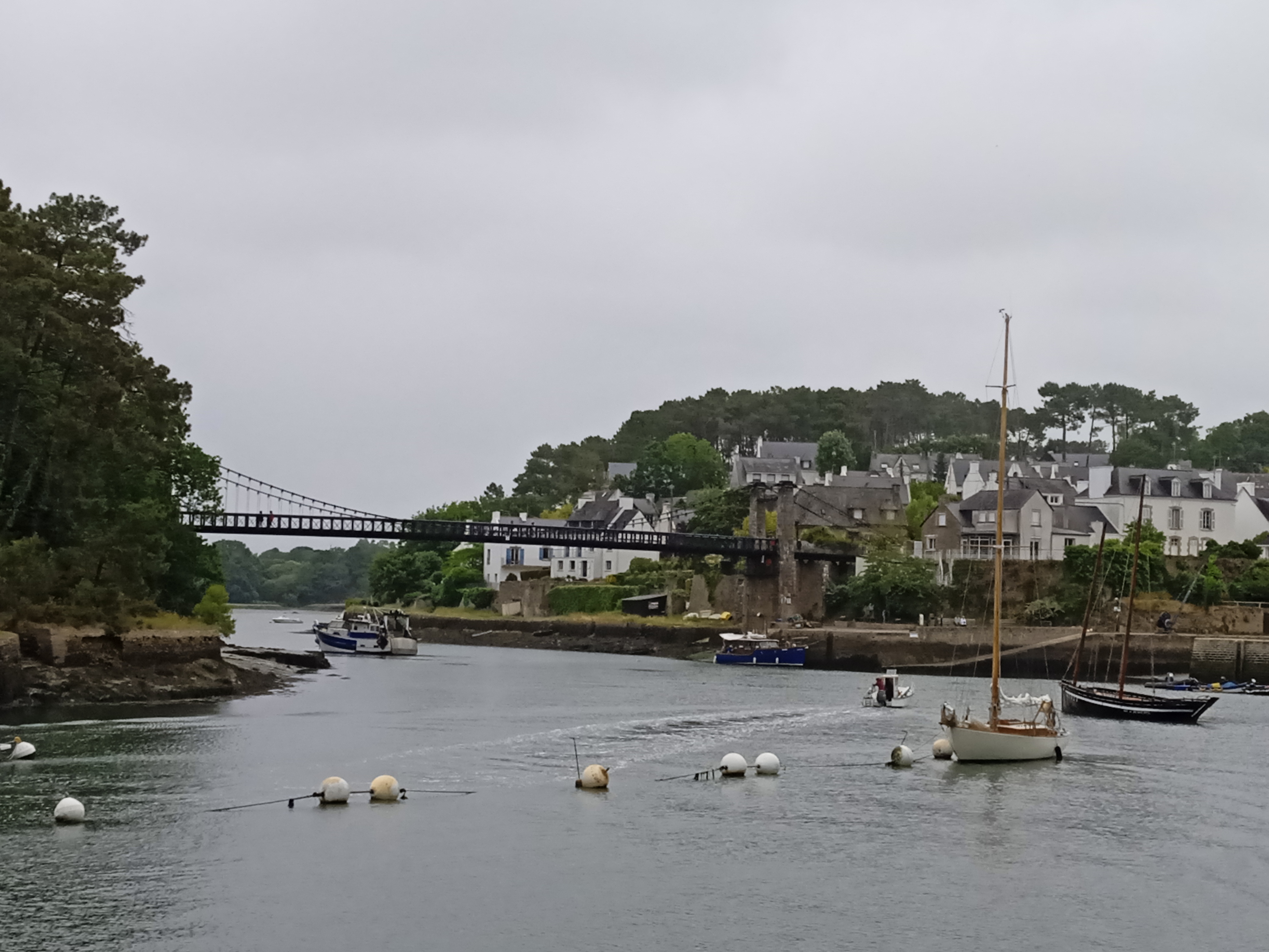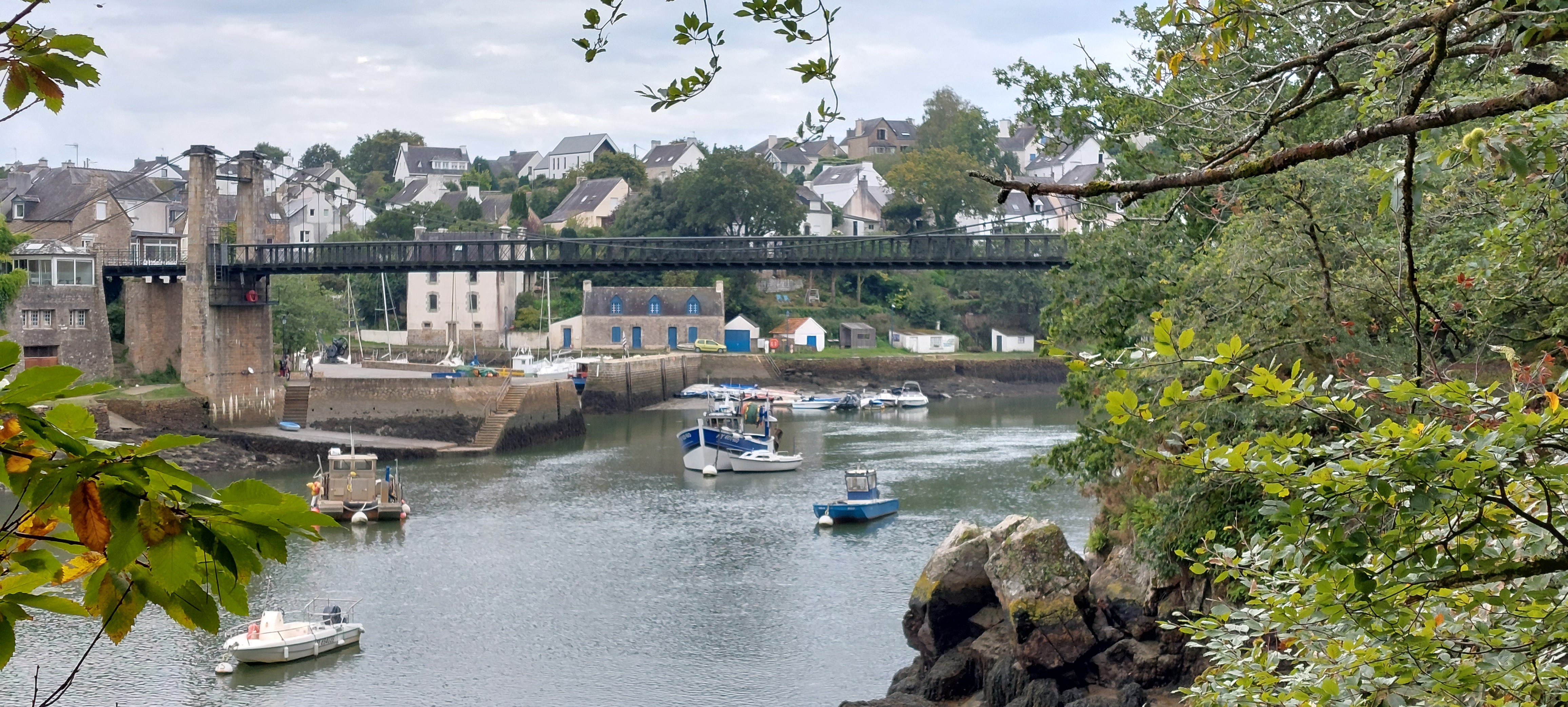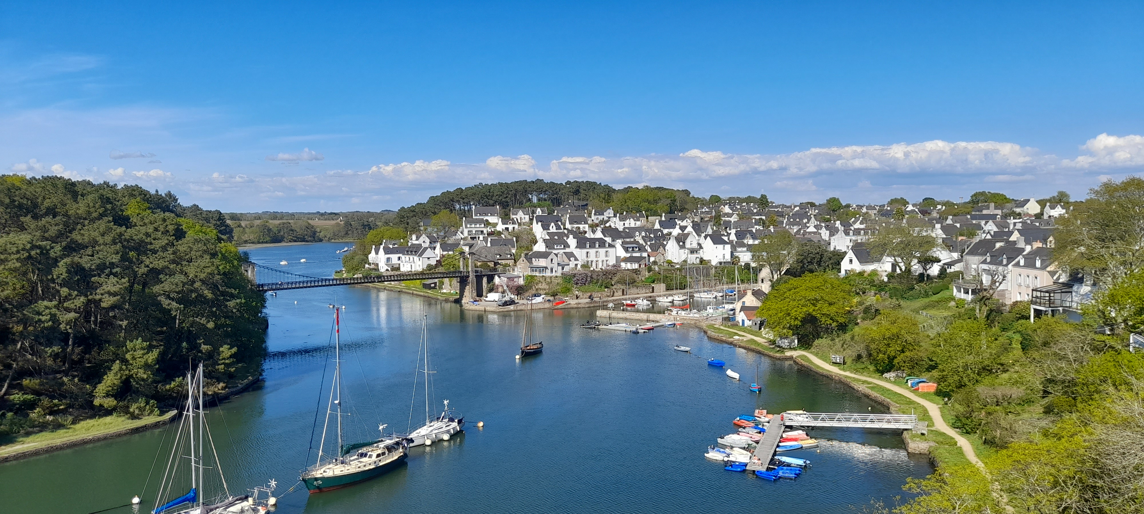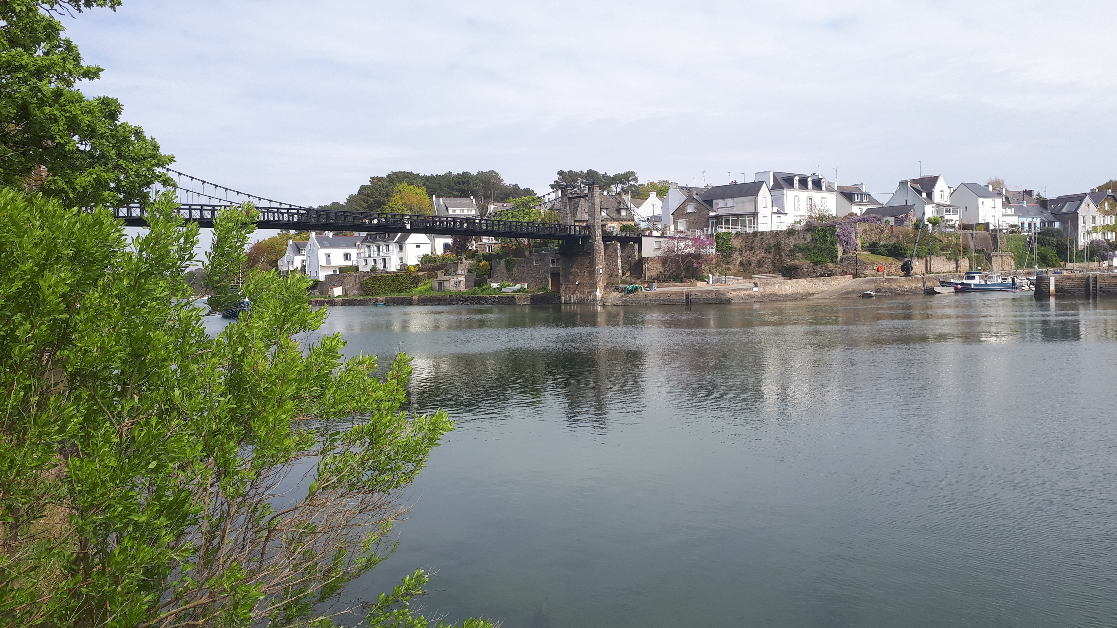 Joli port tout mignon que surplombe un magnifique pont suspendu refait à neuf. Très belle petite balade au fil des méandres des différentes rivières et petits ports du Morbihan.