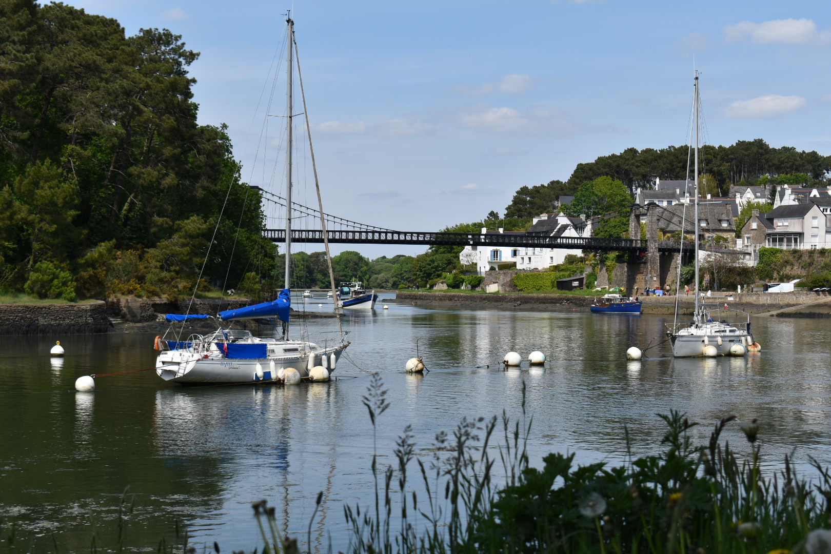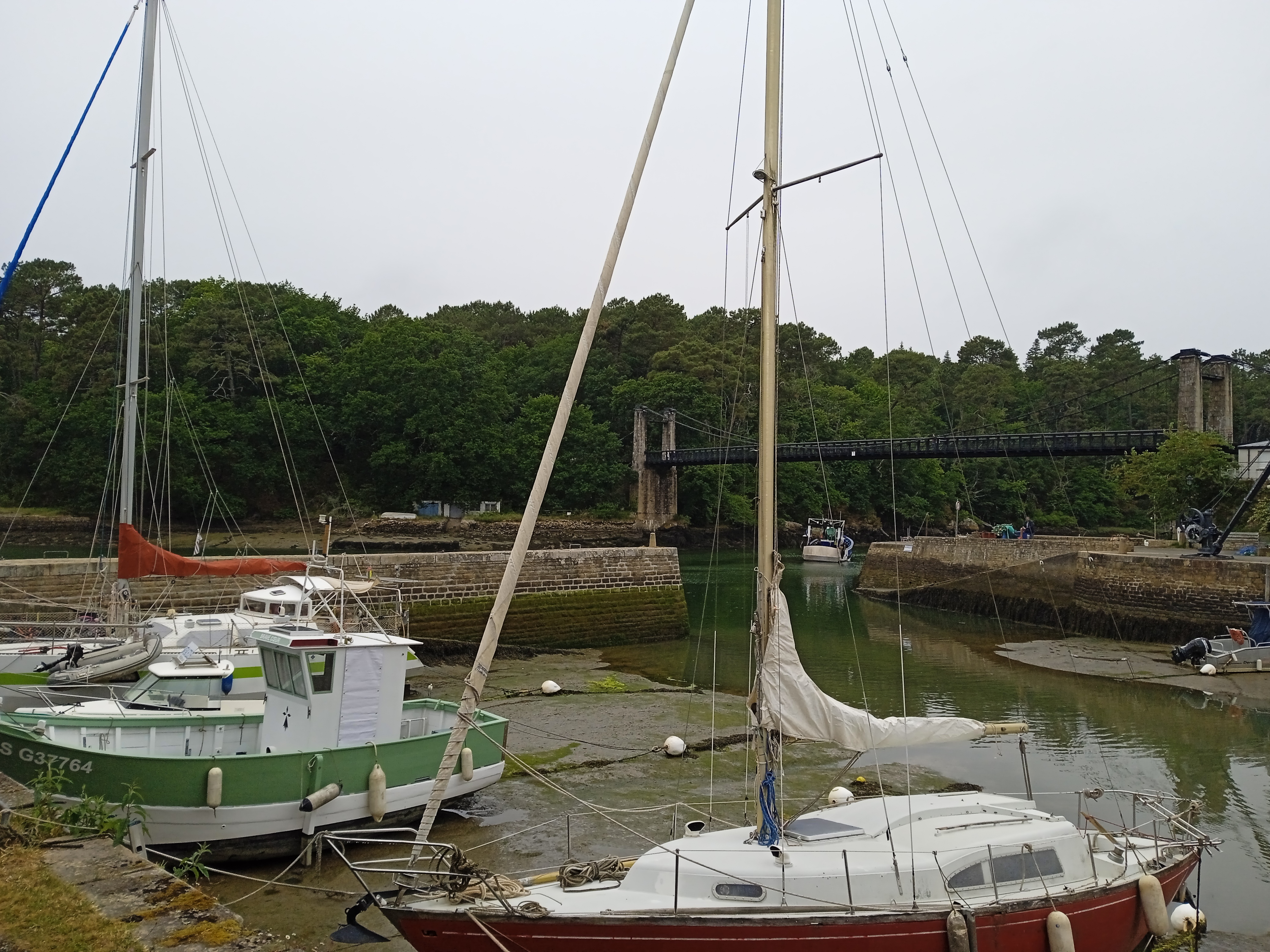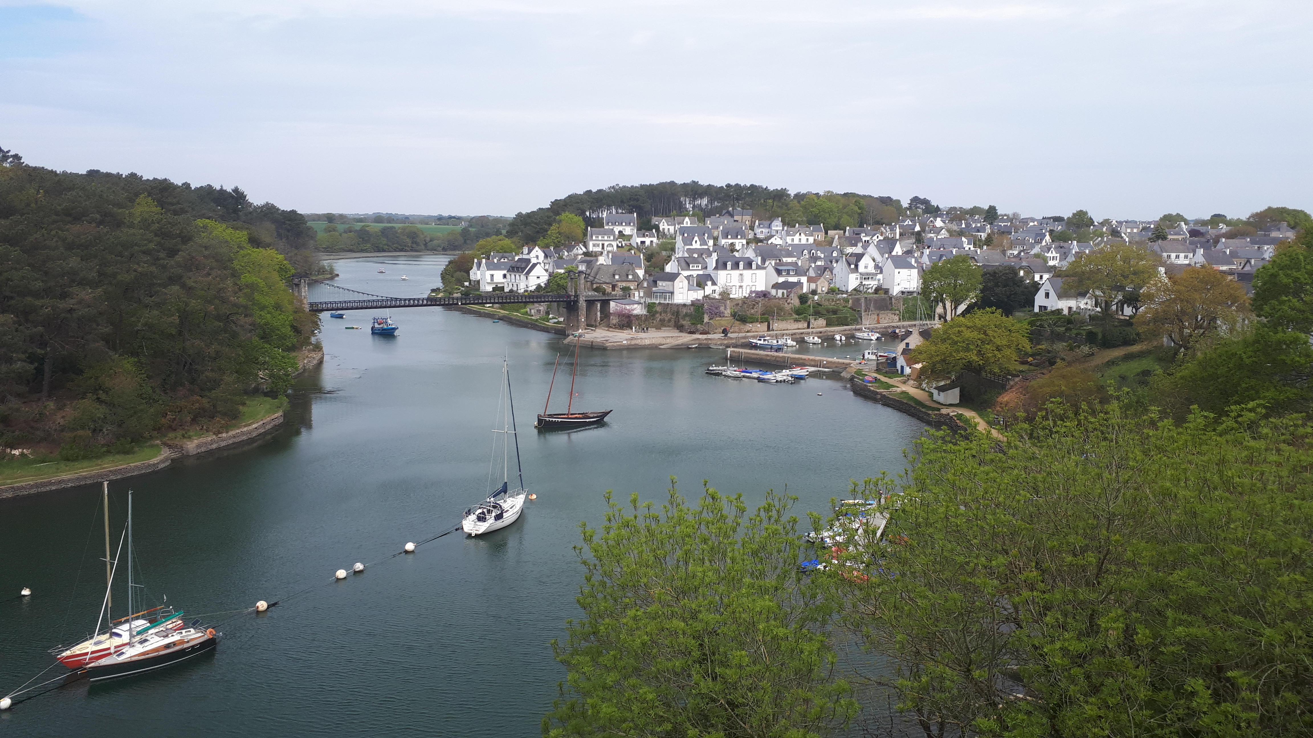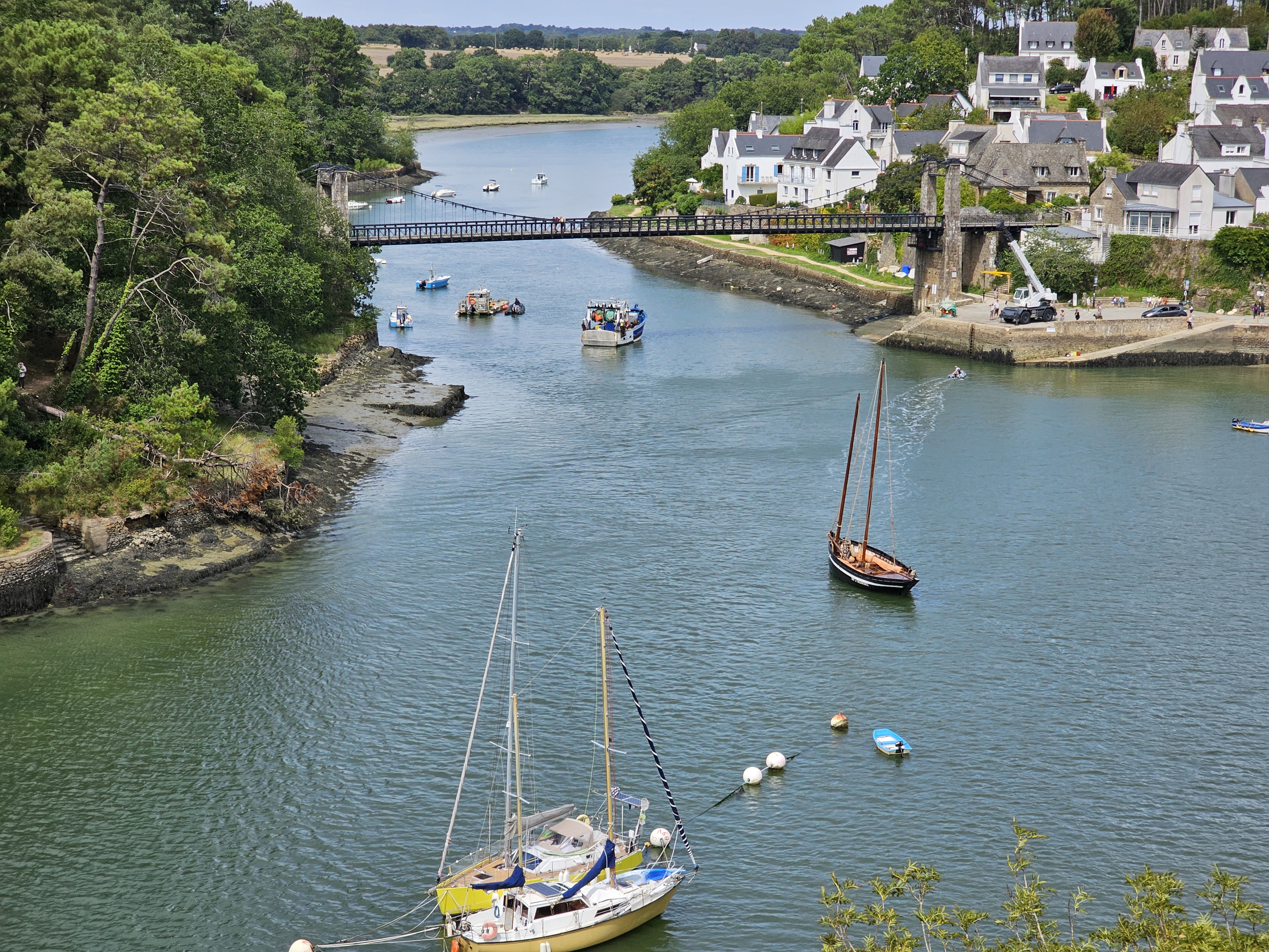 Joli port tout mignon que surplombe un magnifique pont suspendu refait à neuf. Très belle petite balade au fil des méandres des différentes rivières et petits ports du Morbihan.