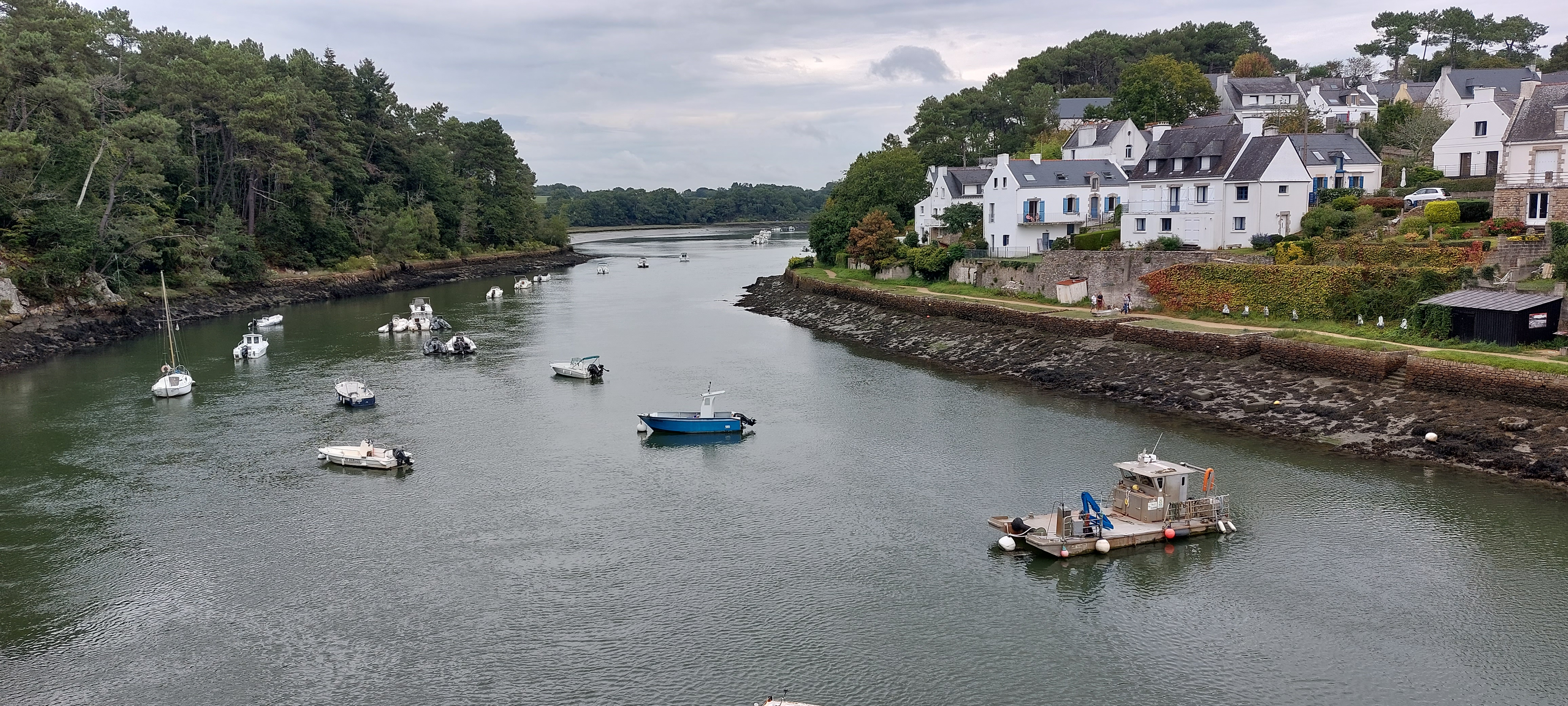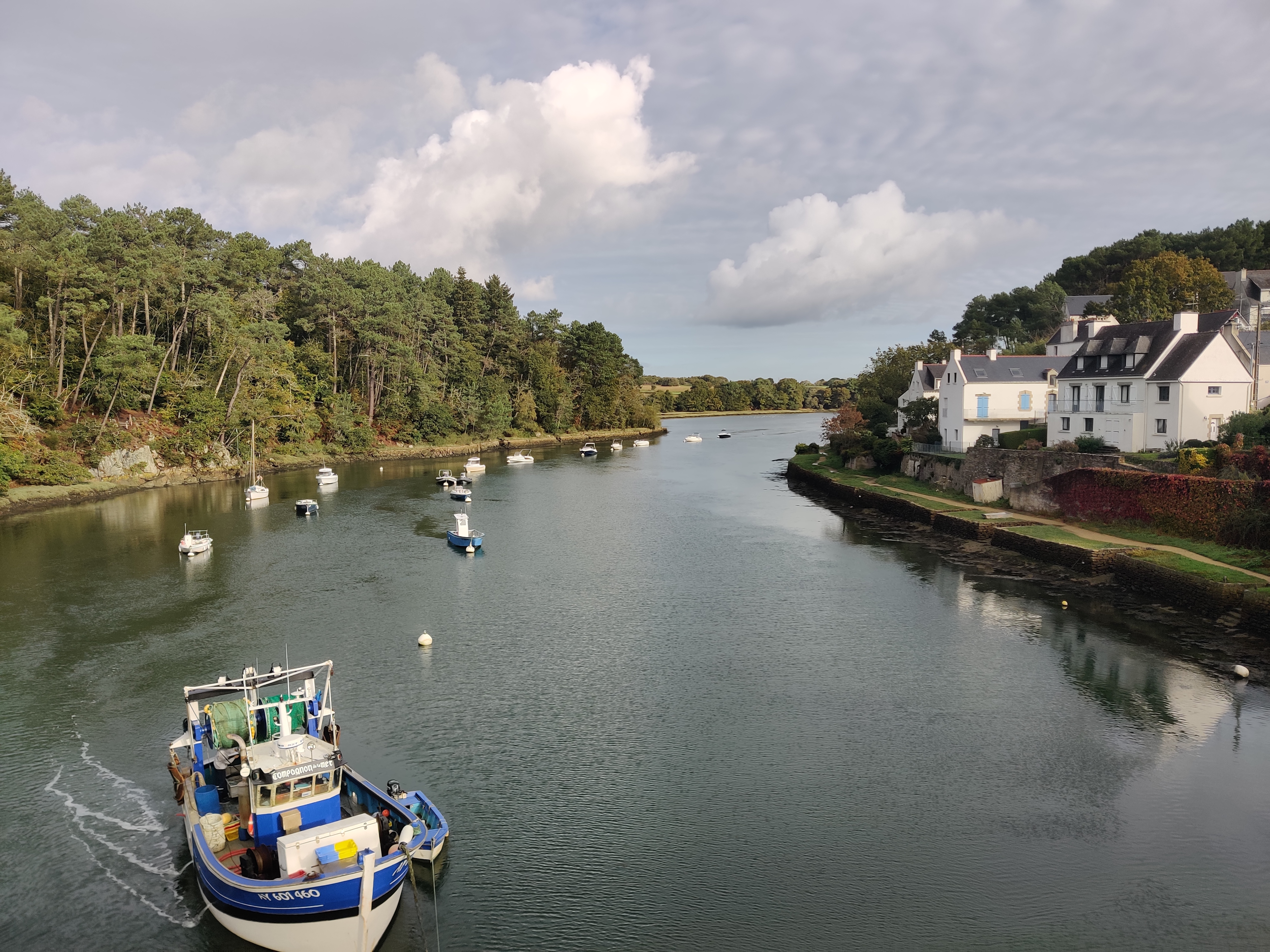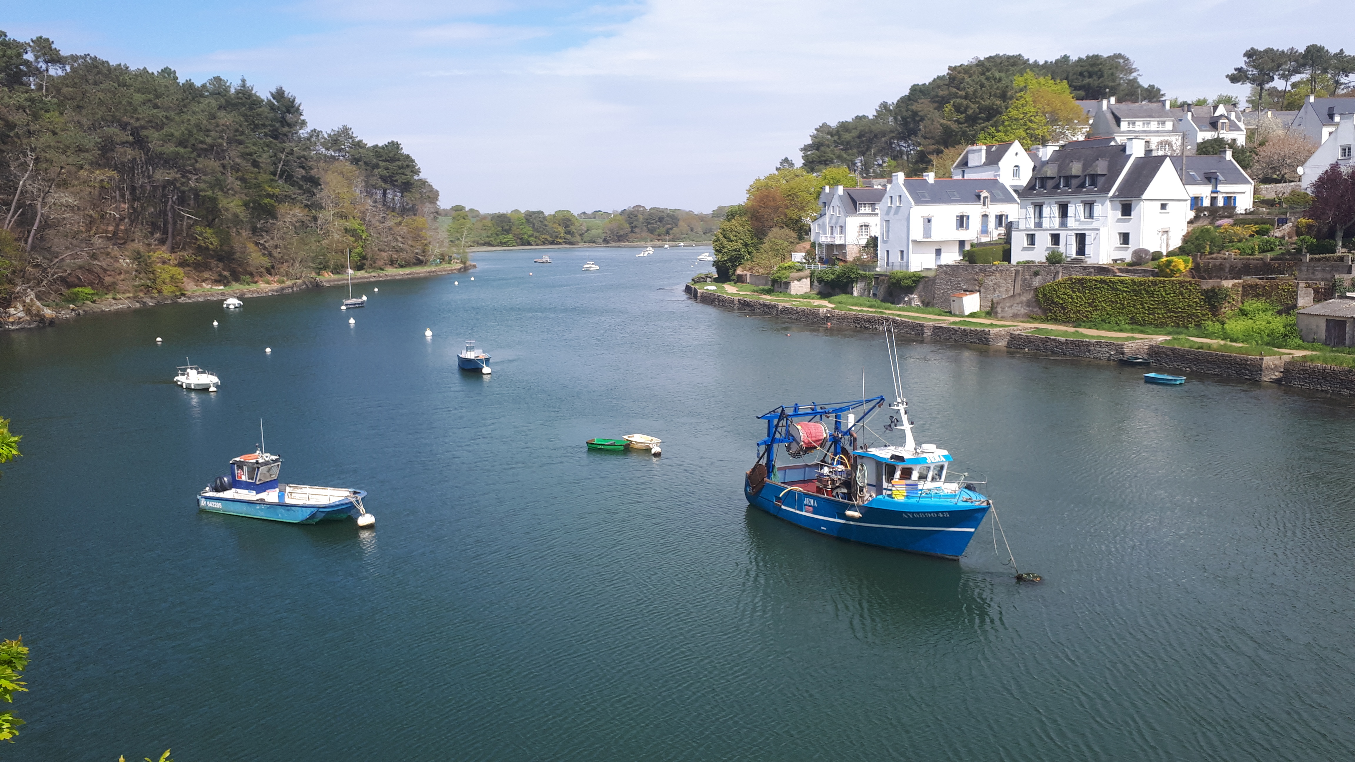 Endroit suerbe, petit port avec du charme et si le temps si prete une balade le long de la rivière est obligatoire