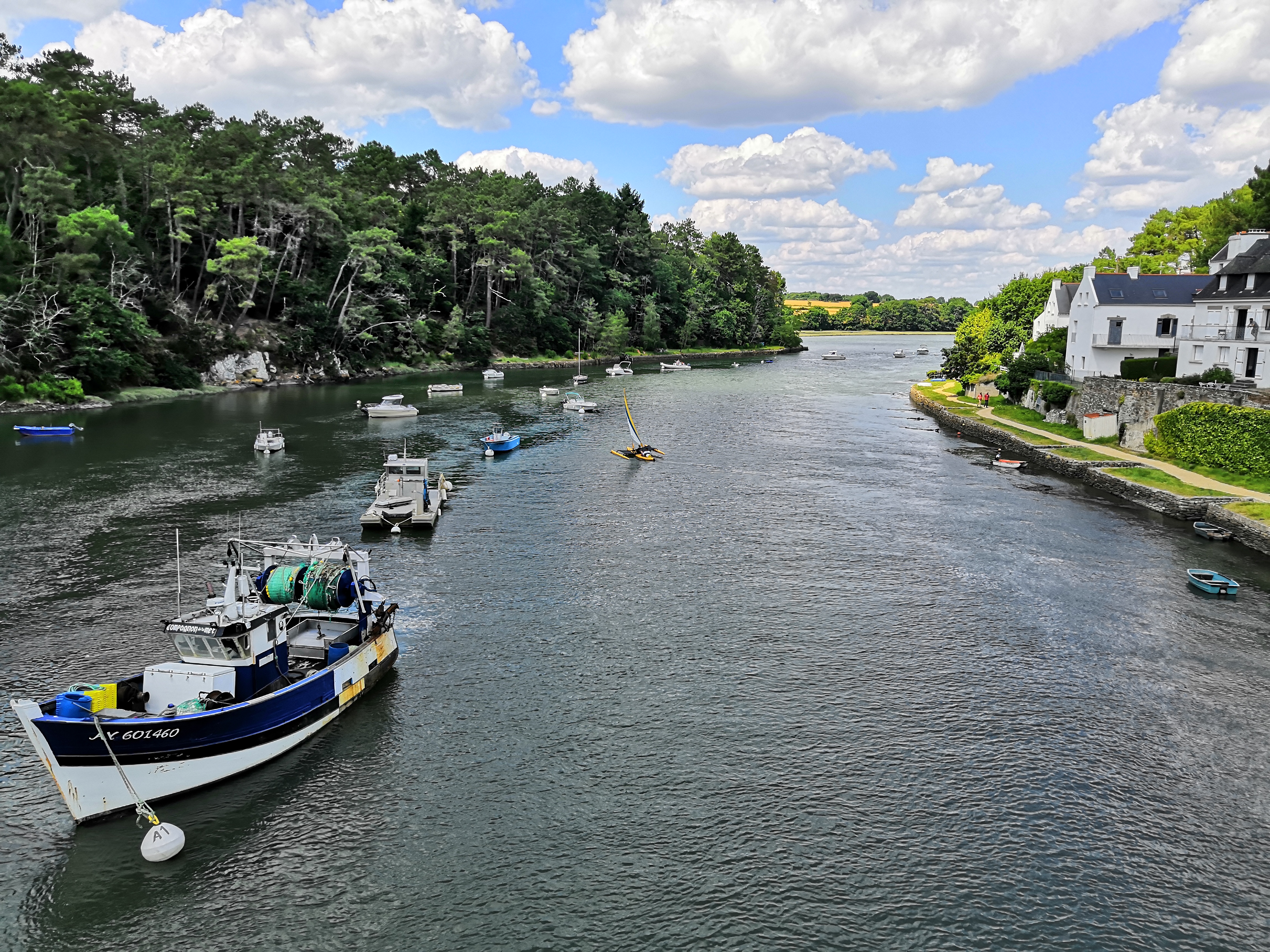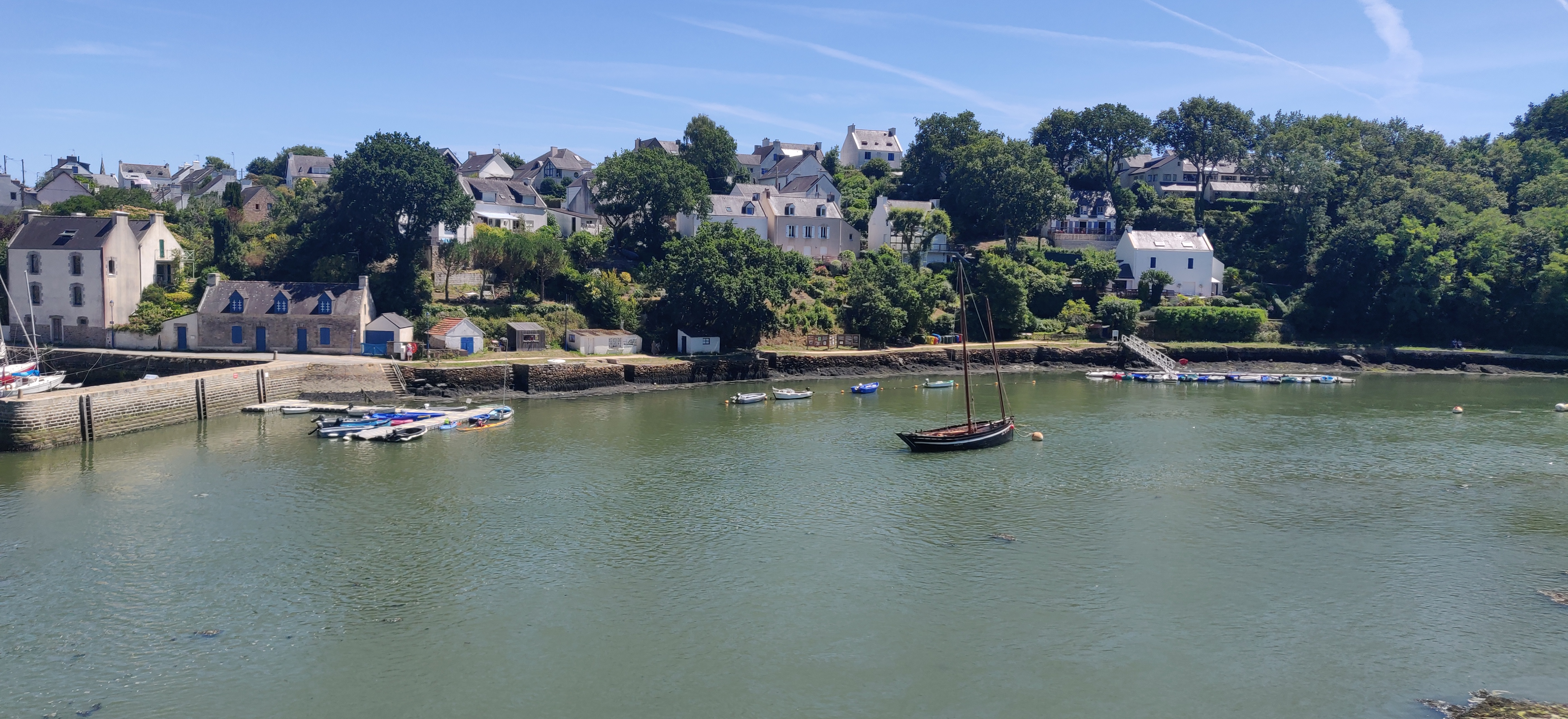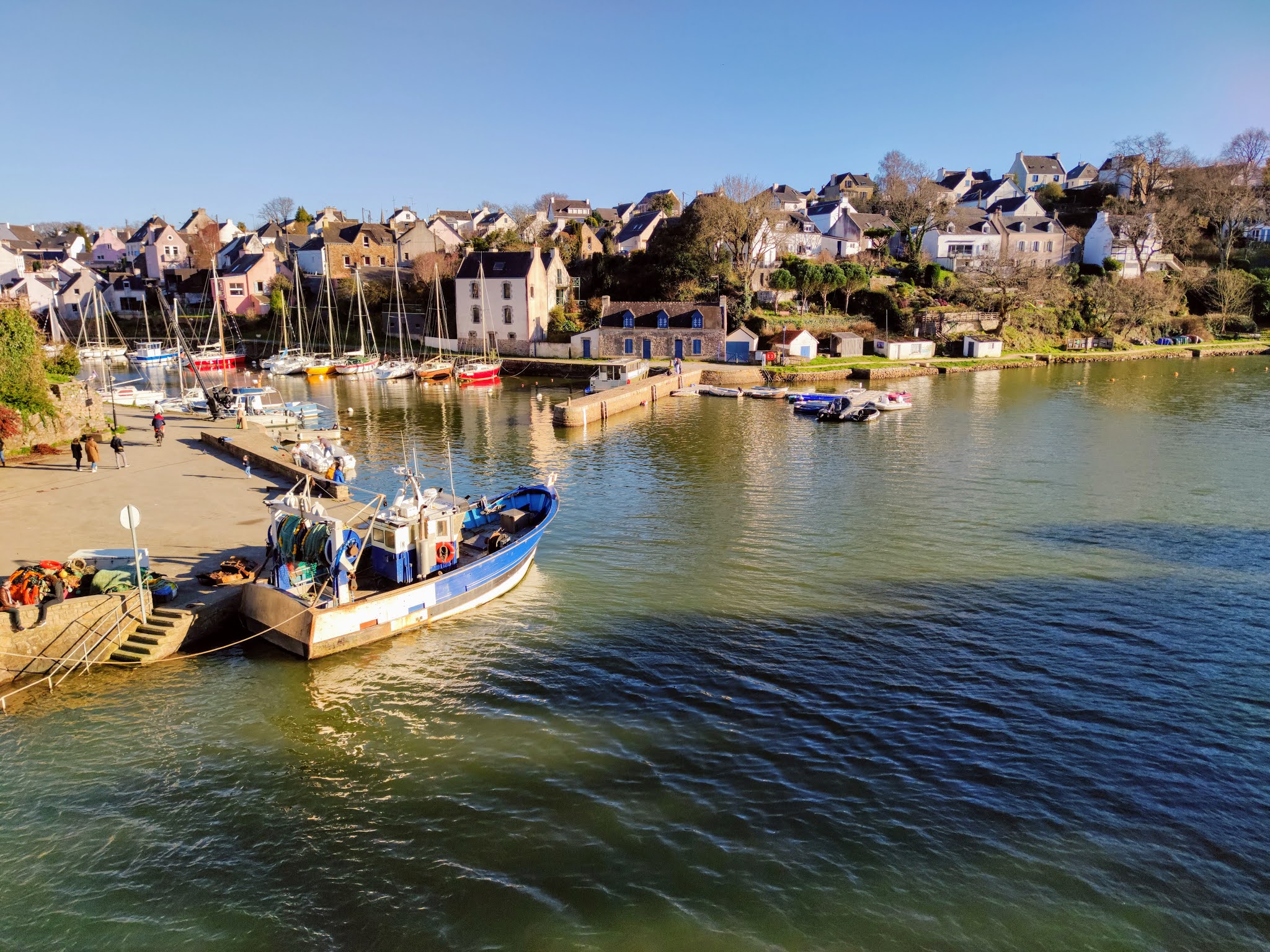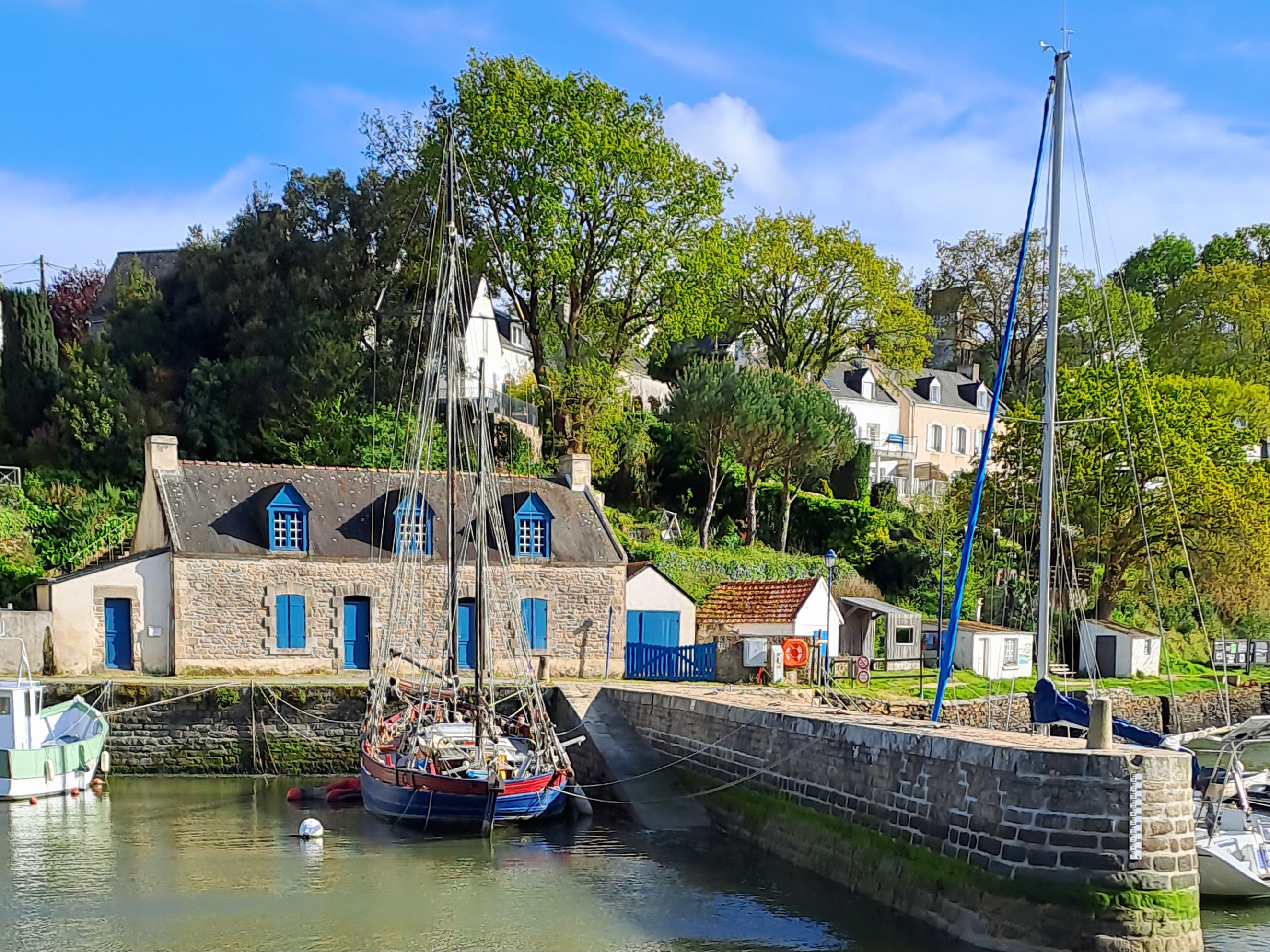 Endroit suerbe, petit port avec du charme et si le temps si prete une balade le long de la rivière est obligatoire